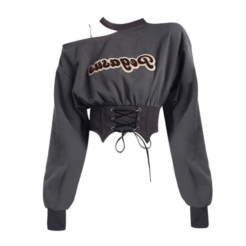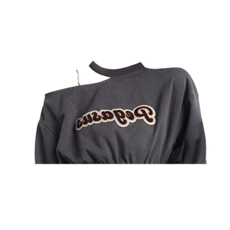 2022 New Korean Woman Hoodies Sweatshits Long Sleeve O-Neck Off Shoulder Vintage Letter Printed Irregular Pullover Casual Tops