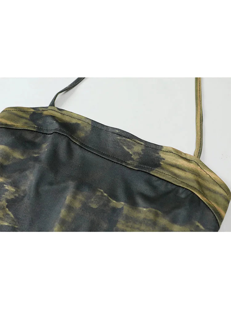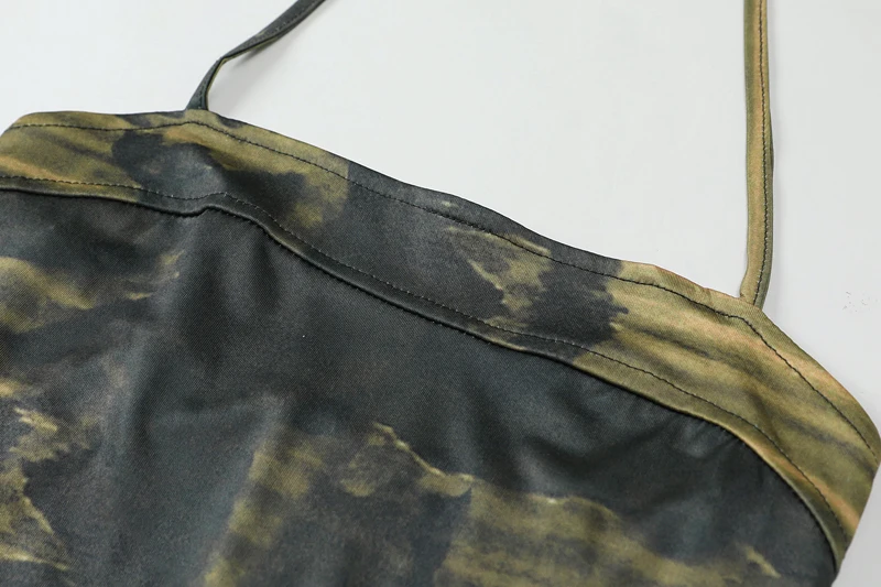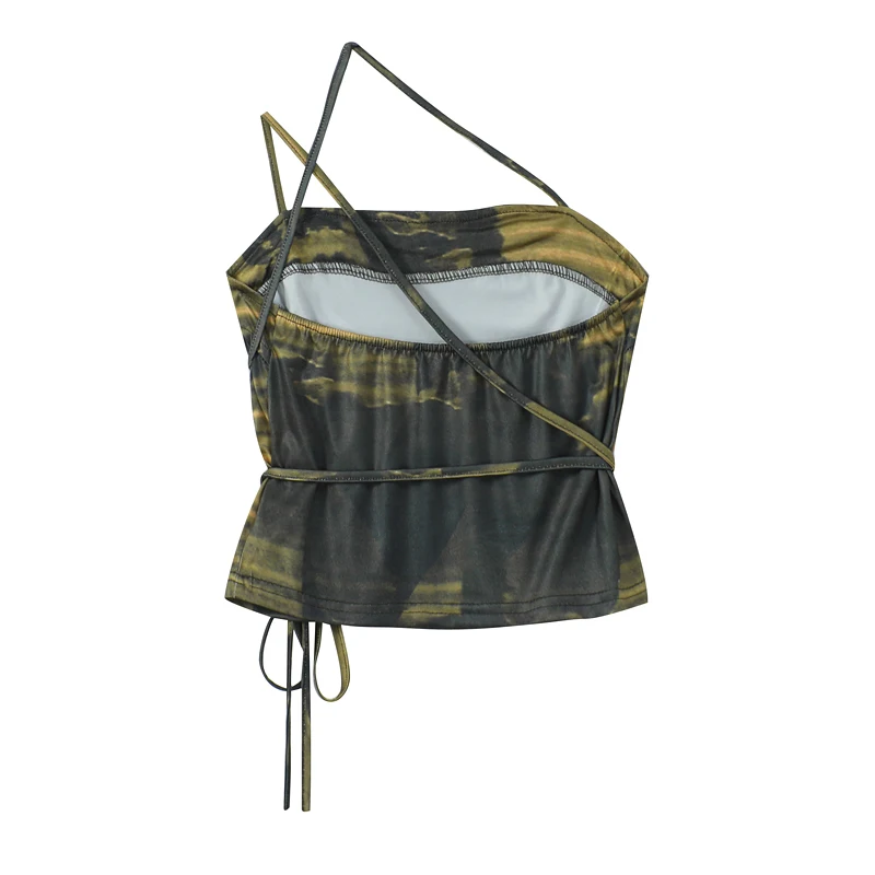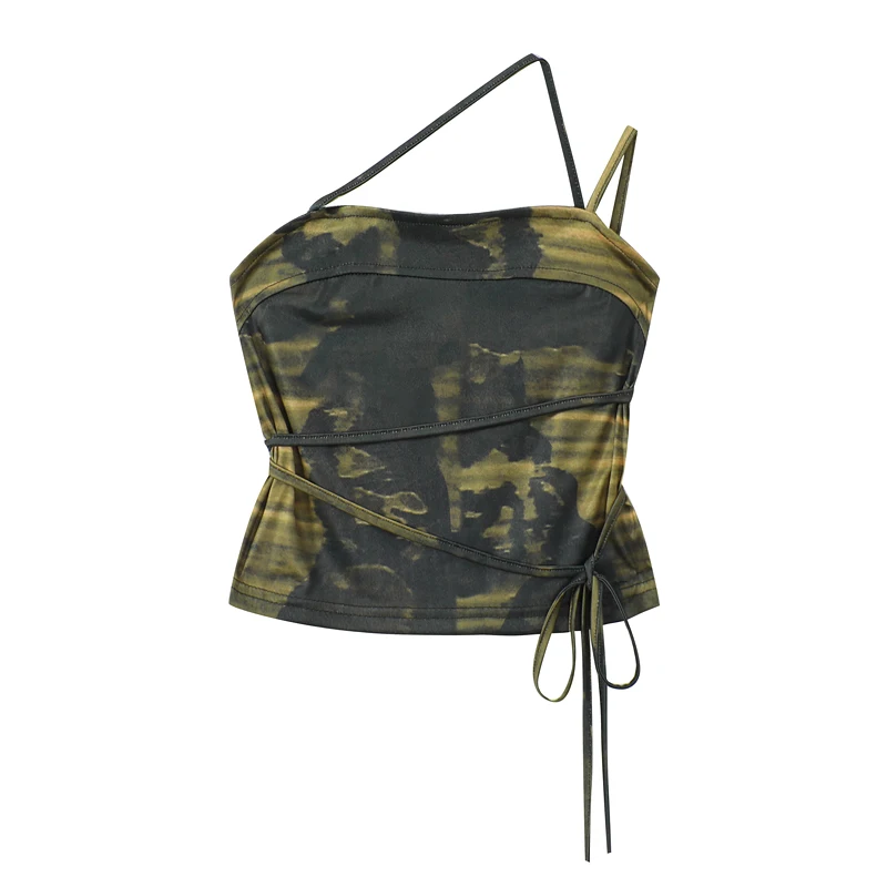 2022 Summer New Design Print Suspender Top Women's Sexy Bodycon Crop Tops Camouflage Bandage Female Retro Off Shoulder Camisole