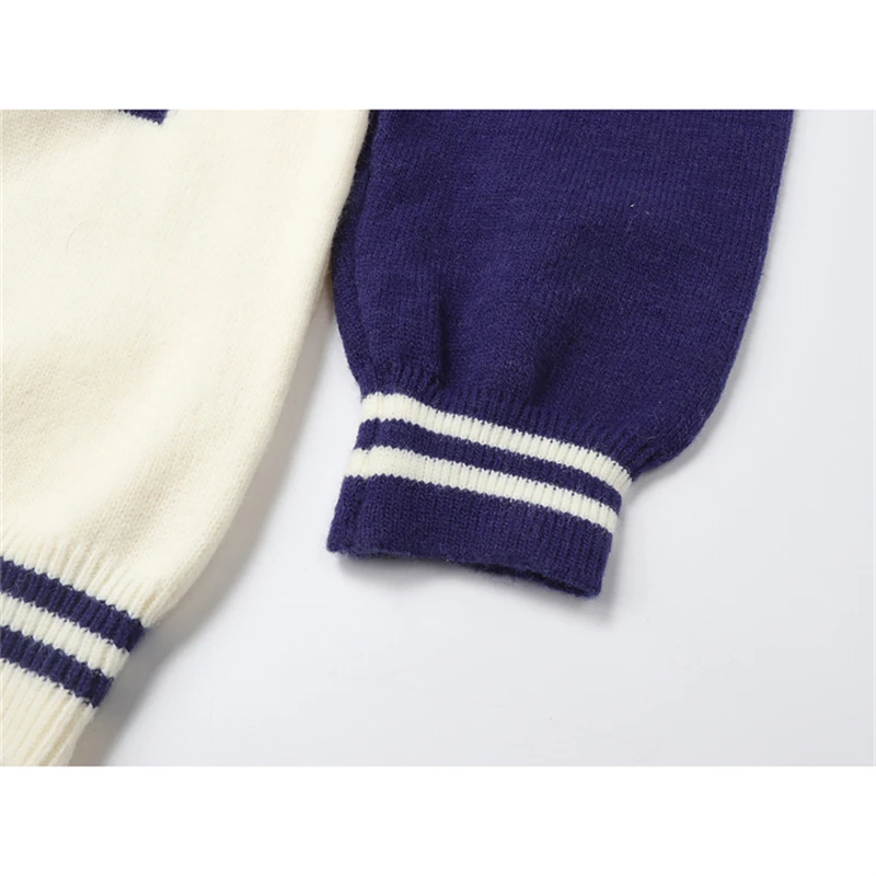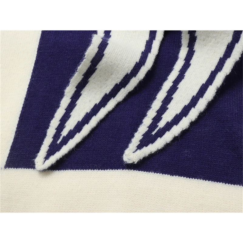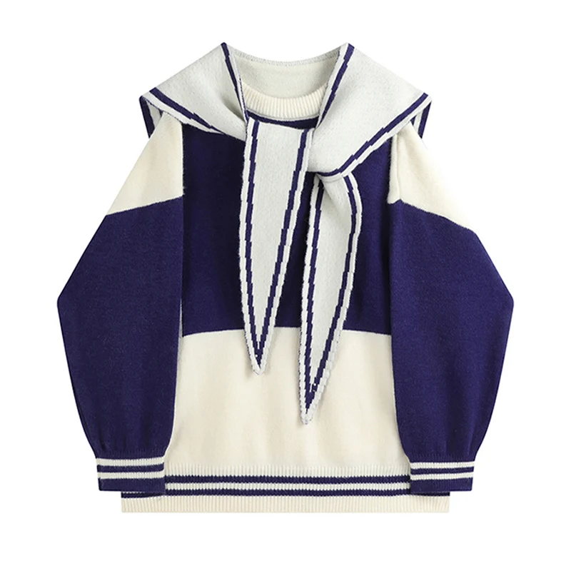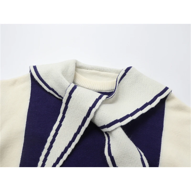2022 Women Sweater Oversized Preppy Style Patchwork Knitted Basic Pullovers Sailor Collar Loose Soft Female Knitwear Jumper Tops