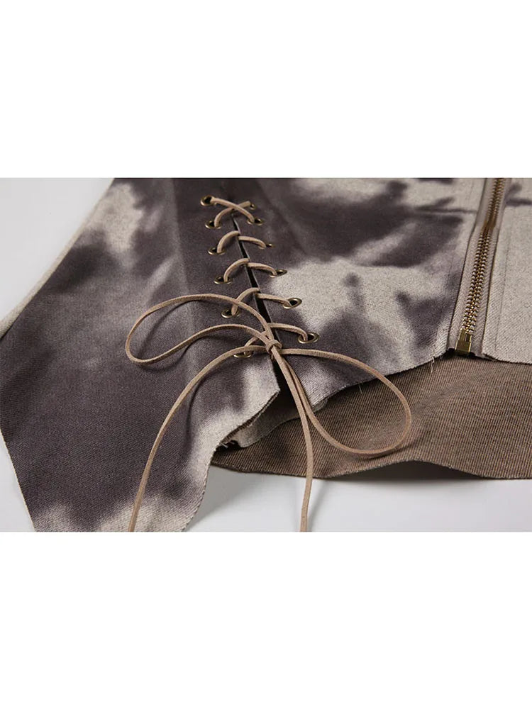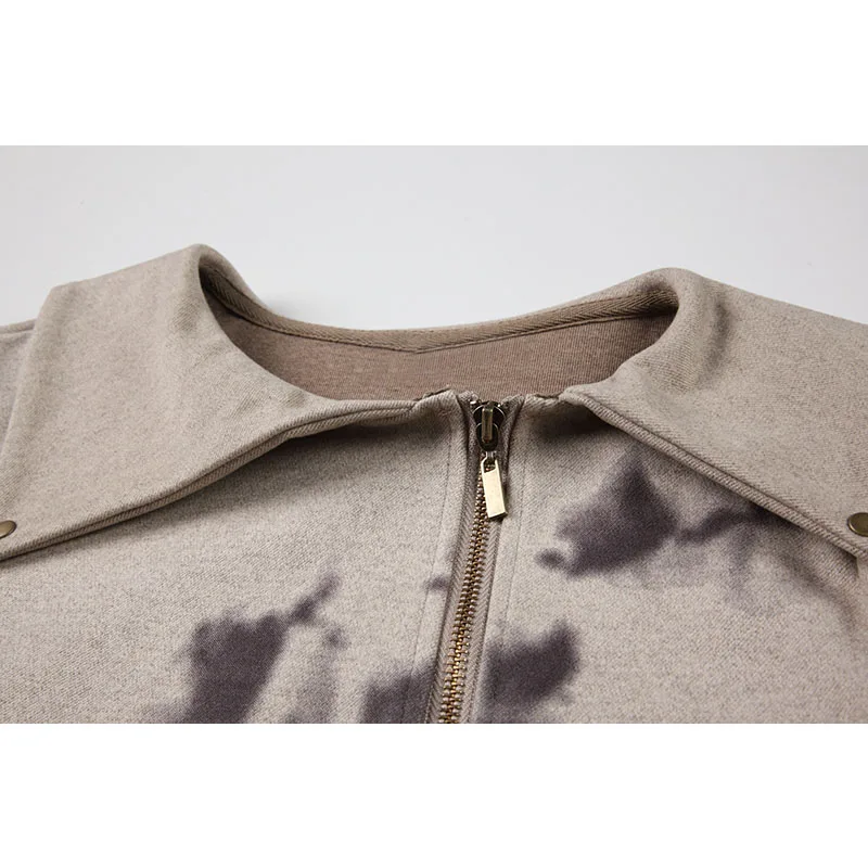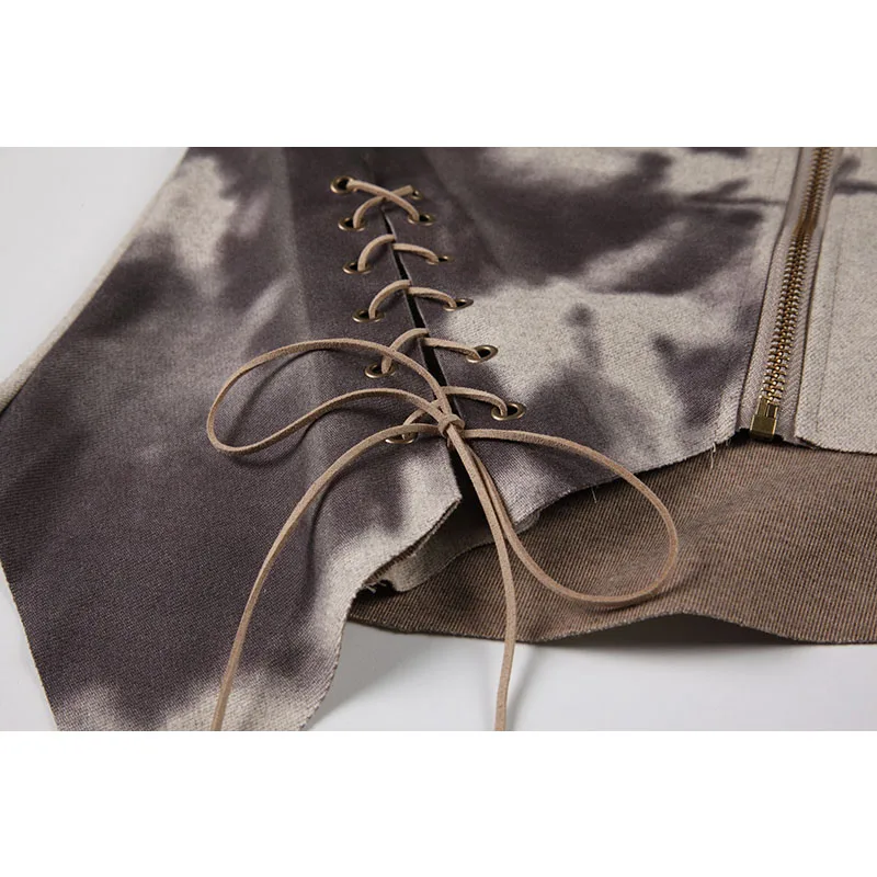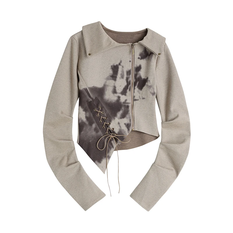 2022 Women Vintage Print Short Jacket Trendy Irregular Turn-down Collar Loose Casual Zippers Coats Harajuku Long Sleeve Outwear