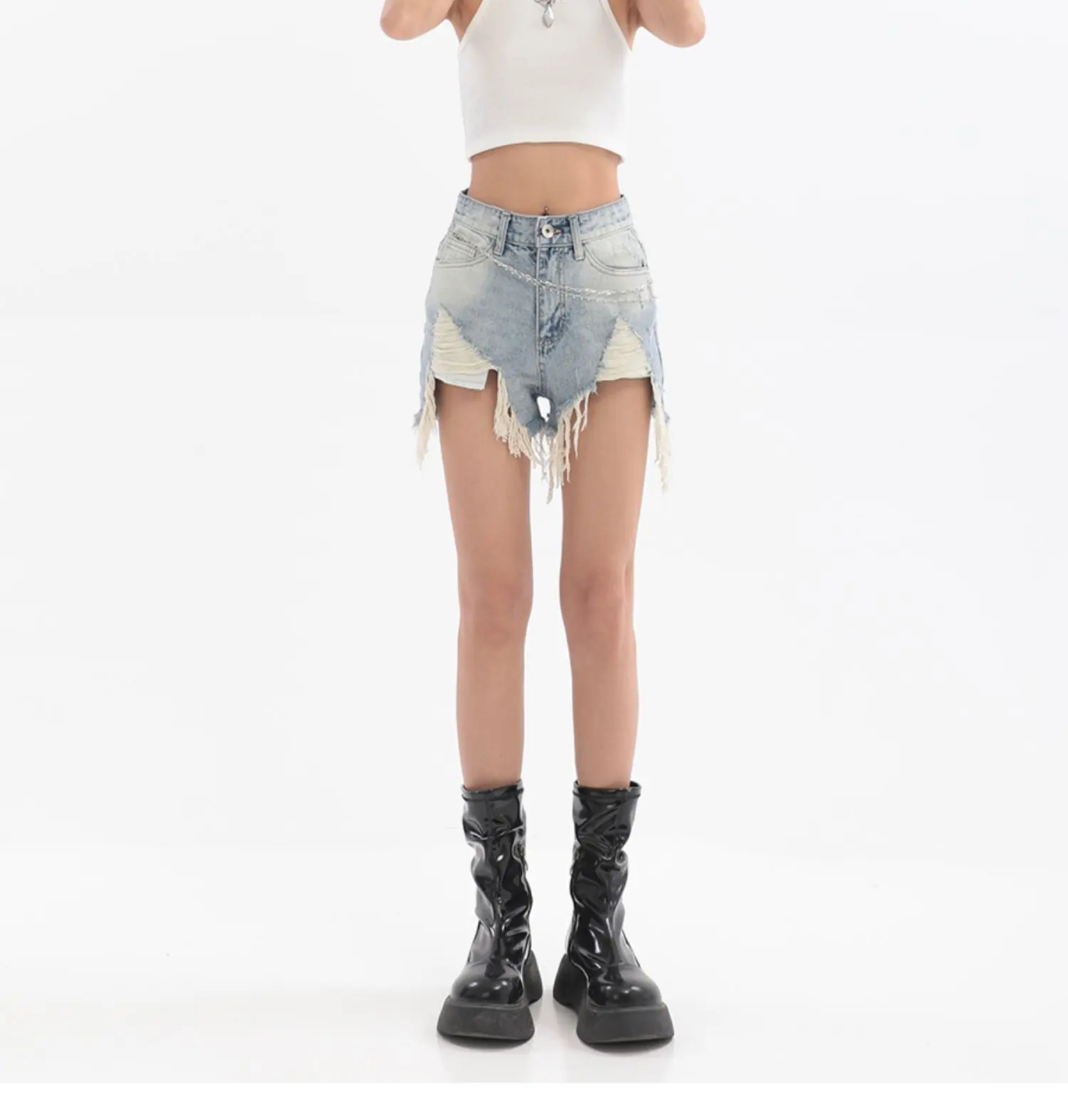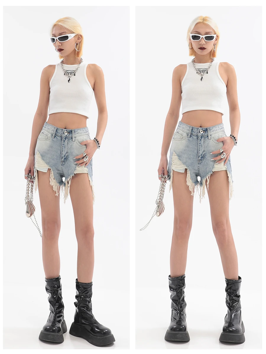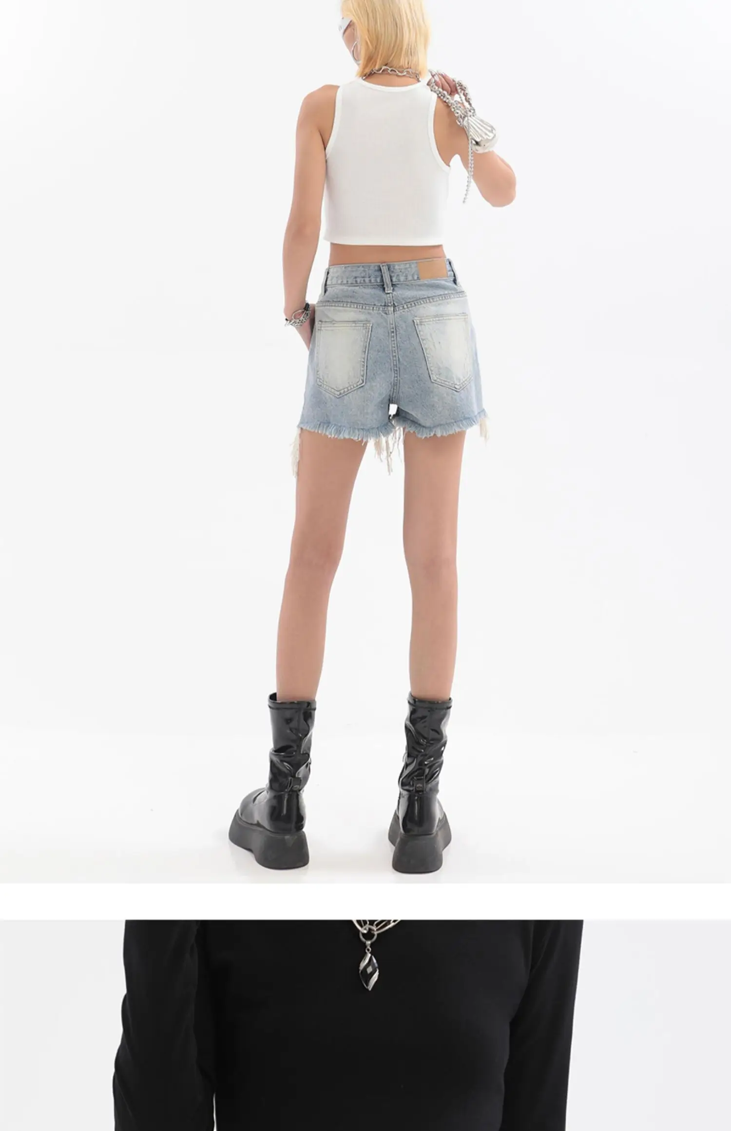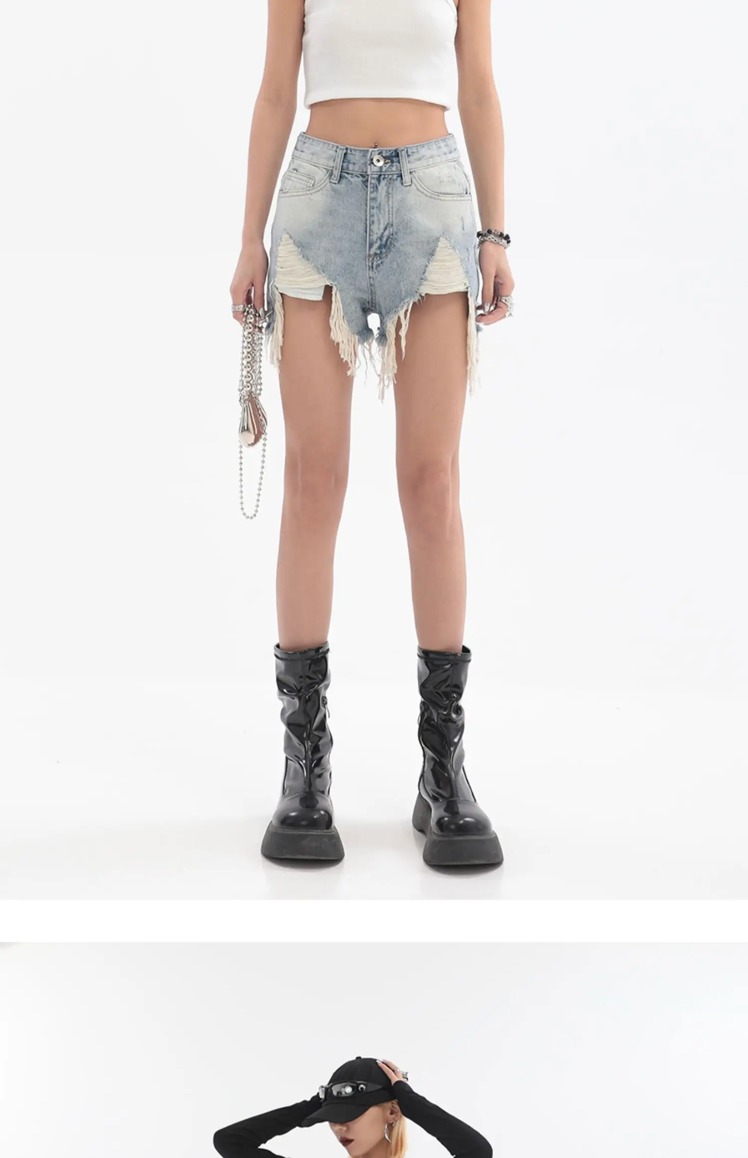 2025 Fashion Gyaru Jean Shorts Ripped Hole High Waist Cotton Denim Shorts Tassels Gyaru Sexy Hot Pants Streetwear Coquette Y2K
