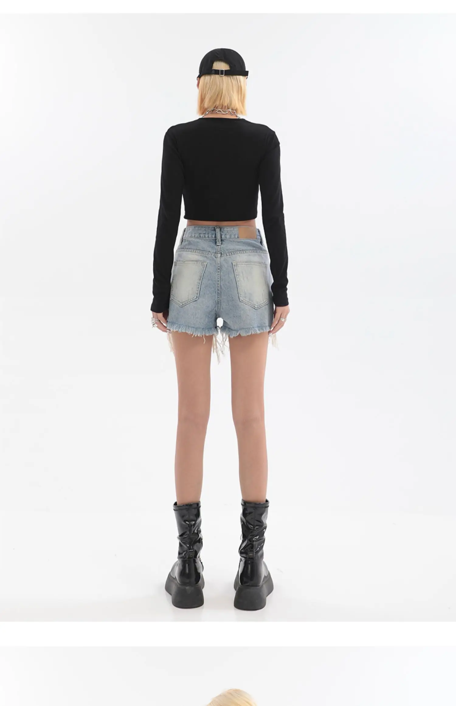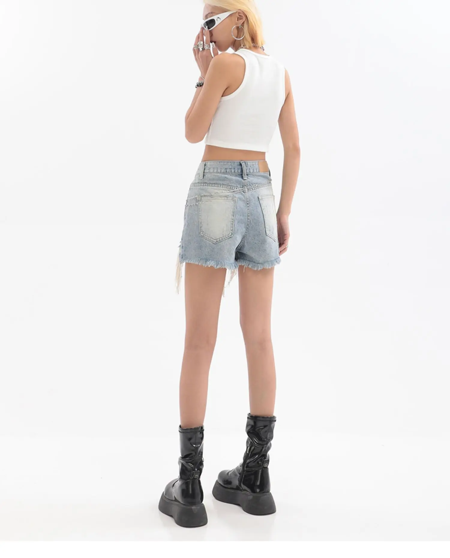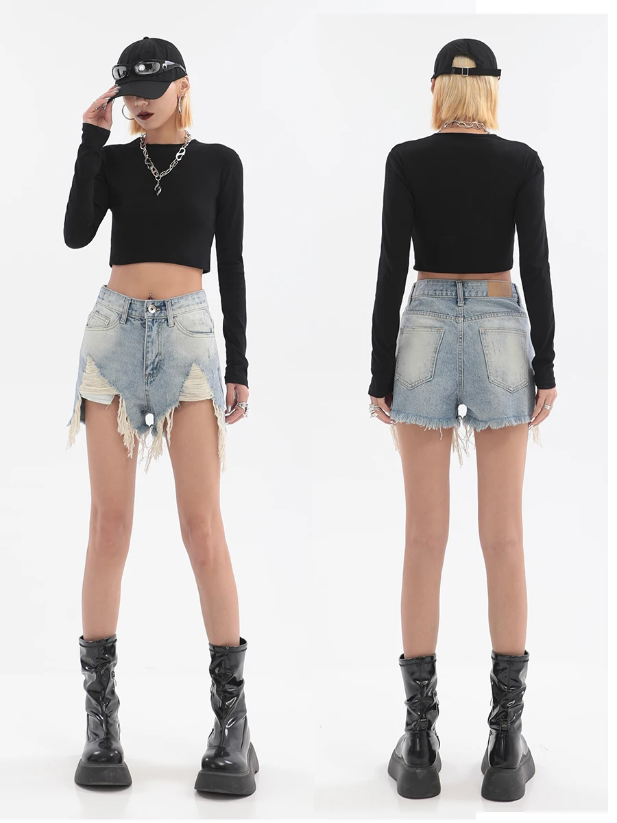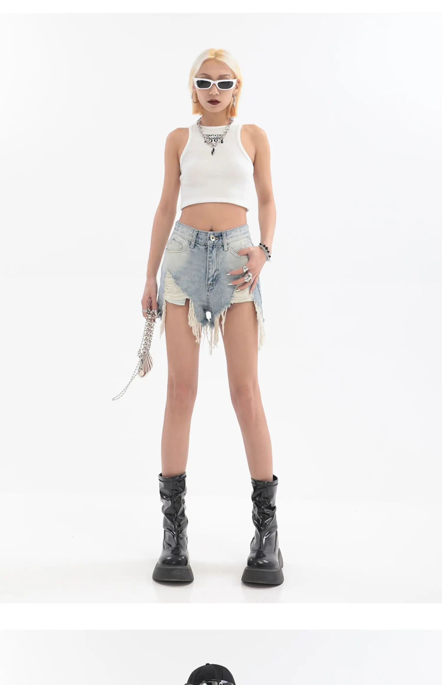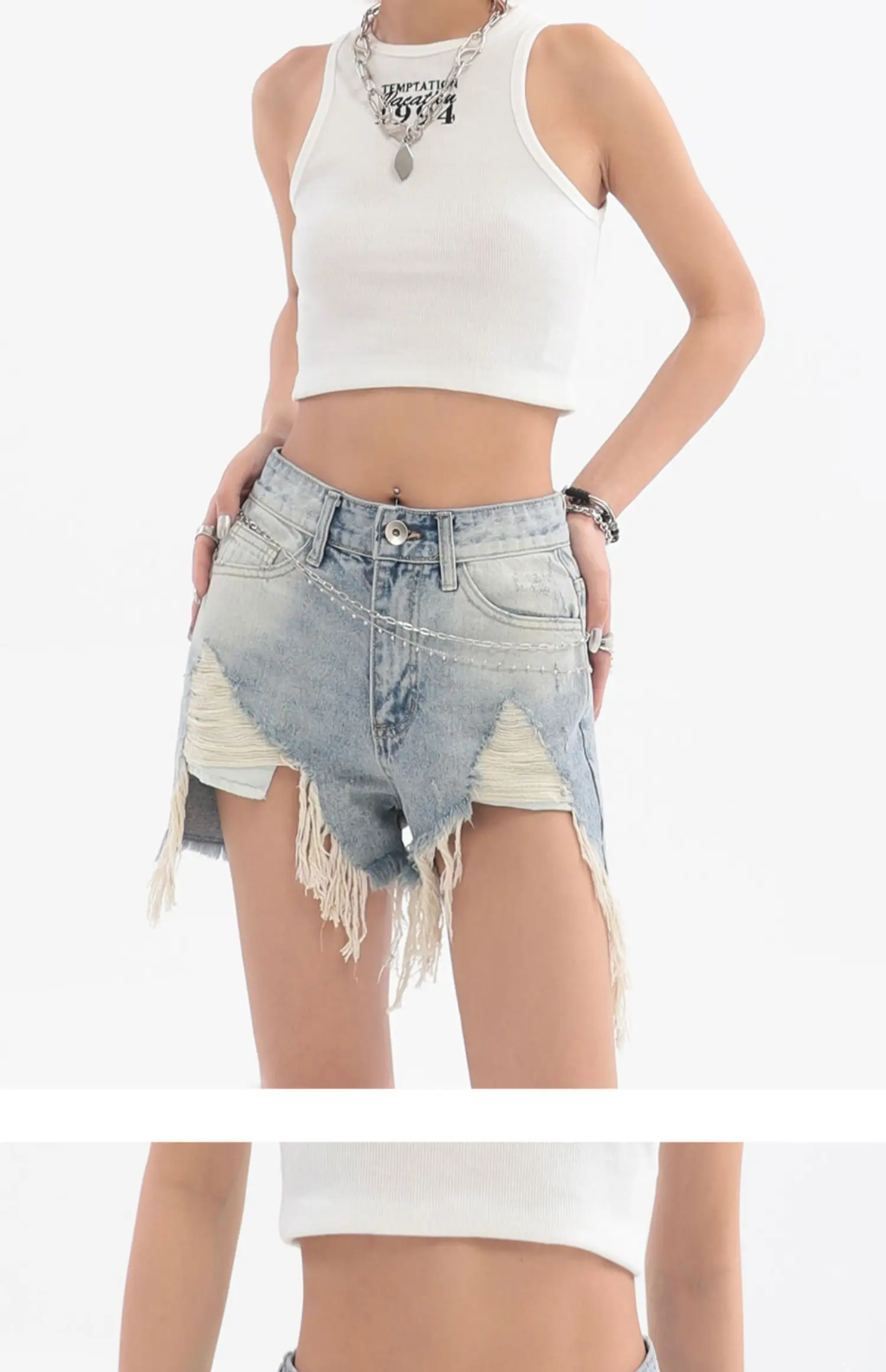 2025 Fashion Gyaru Jean Shorts Ripped Hole High Waist Cotton Denim Shorts Tassels Gyaru Sexy Hot Pants Streetwear Coquette Y2K