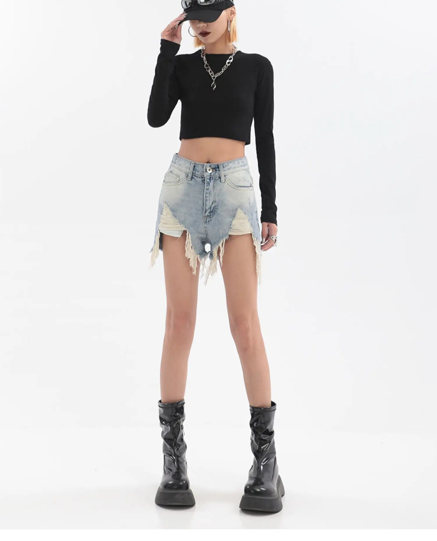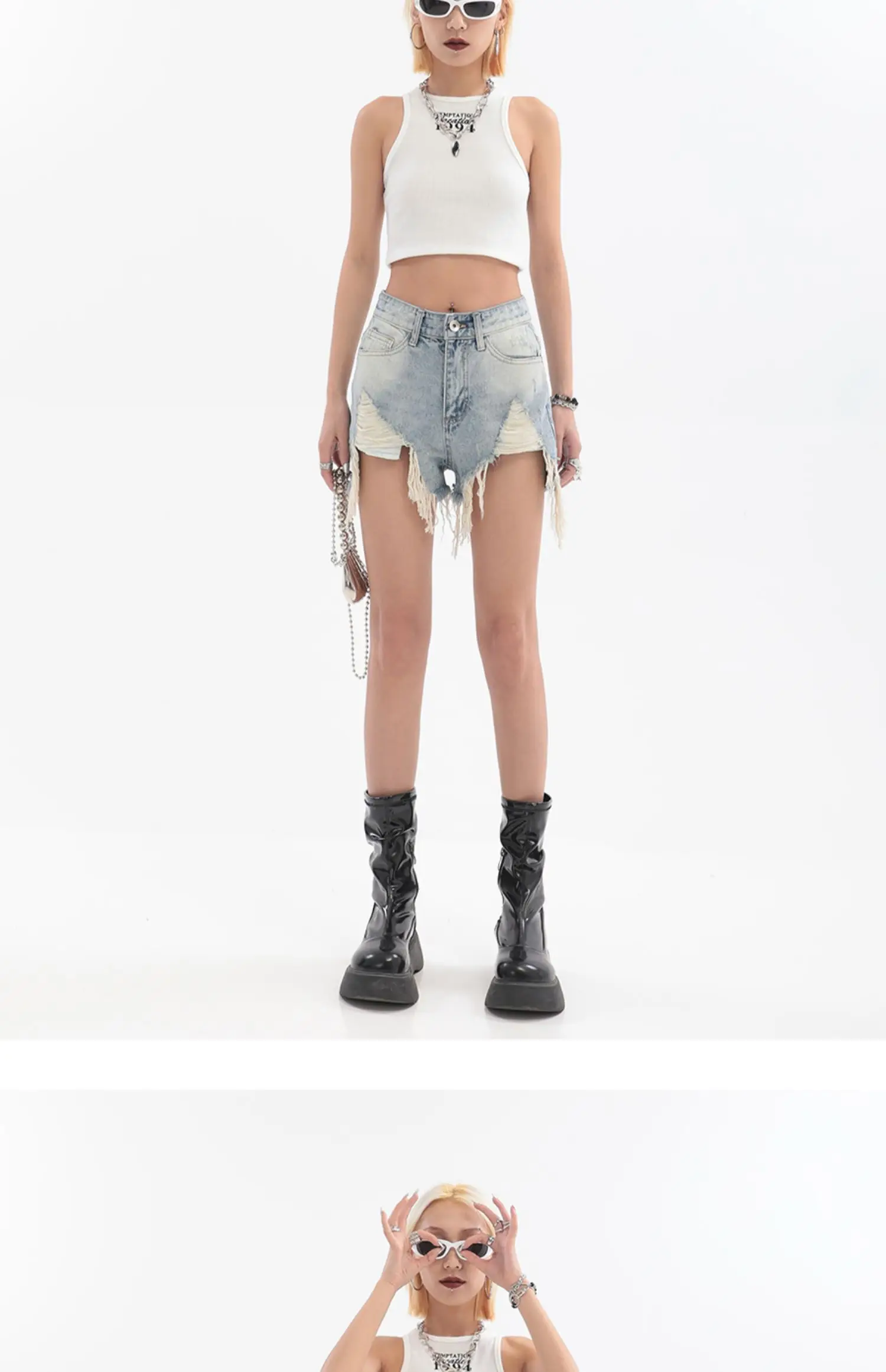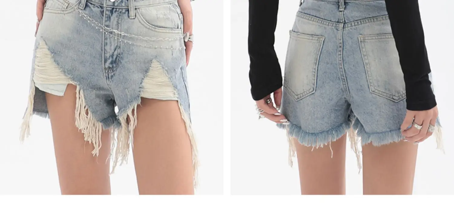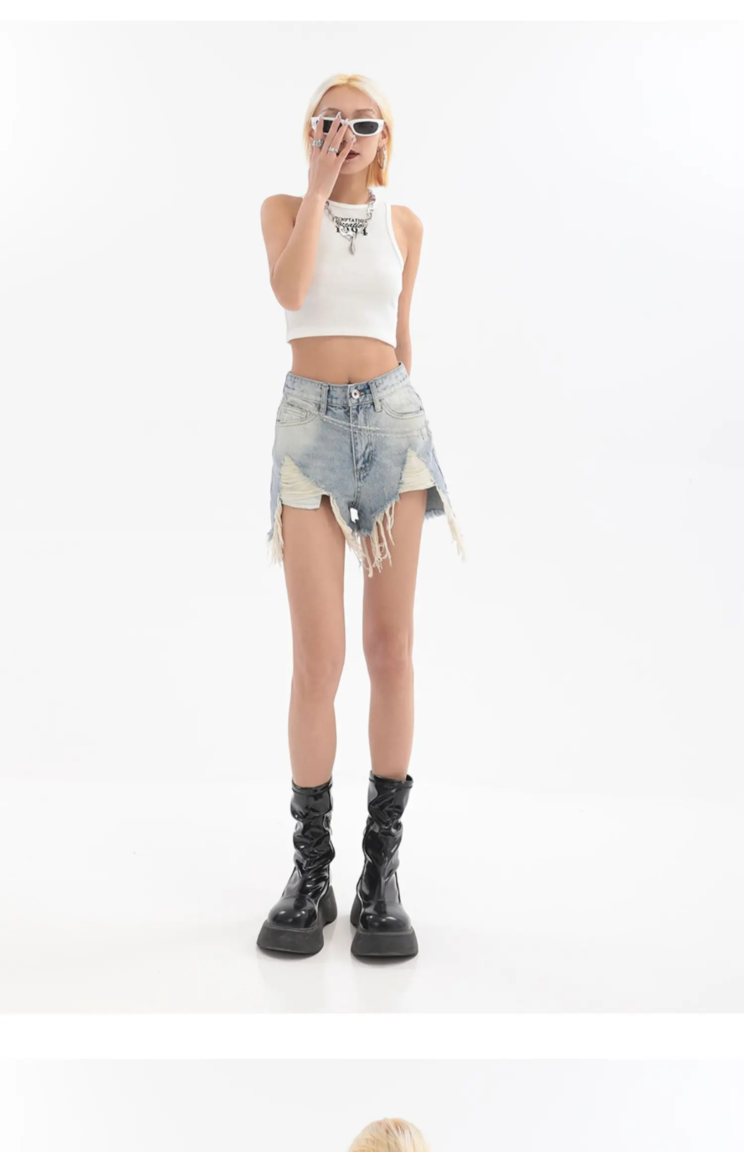 2025 Fashion Gyaru Jean Shorts Ripped Hole High Waist Cotton Denim Shorts Tassels Gyaru Sexy Hot Pants Streetwear Coquette Y2K