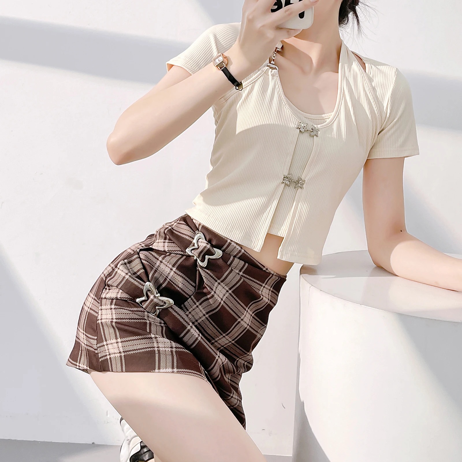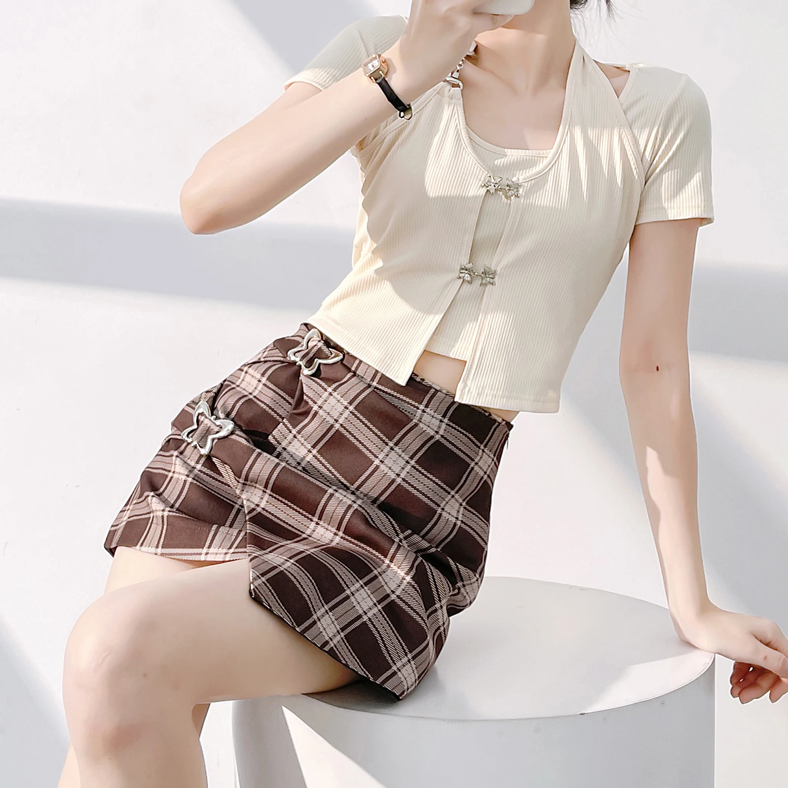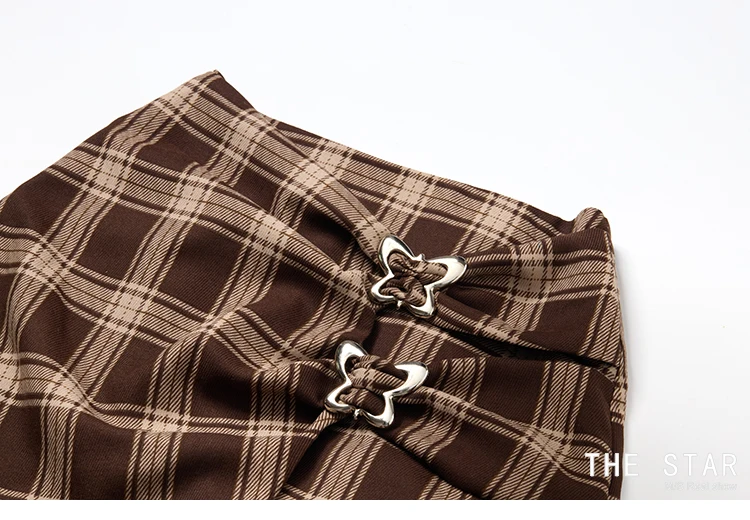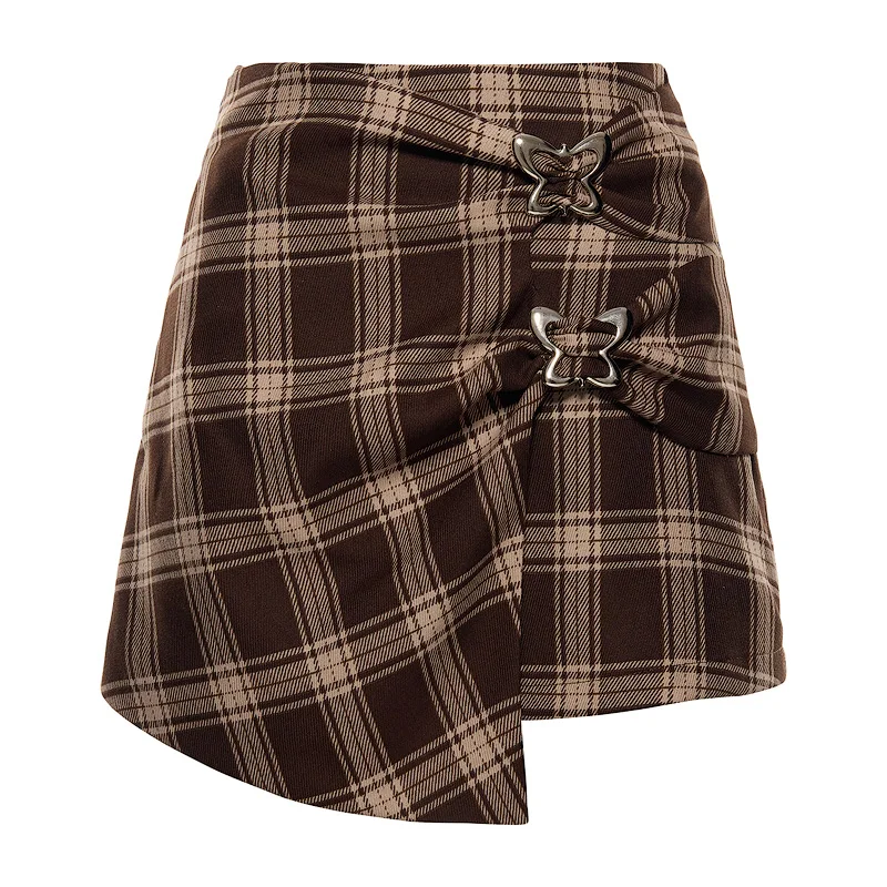 2025 New Checkered Skirt for Women's Summer New Irregular Pleated Half skirt A-line Denim Skirt Vintage Aesthetic Y2k Skirt