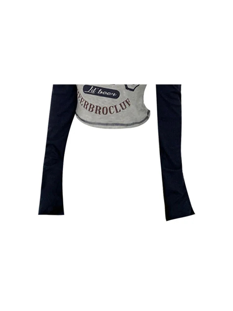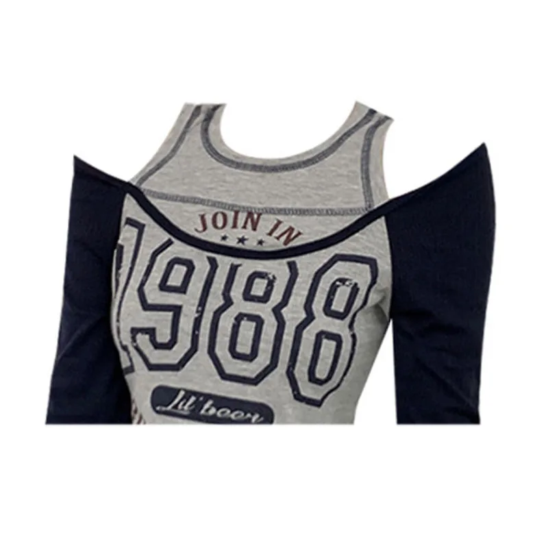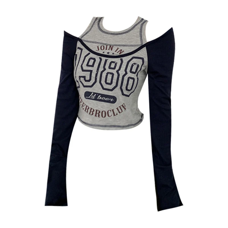 American College Style Women Y2k Off Shoulder O-neck Long Sleeve Tops Women Letter Print Contrast Color Tees Women 2022 Autumn
