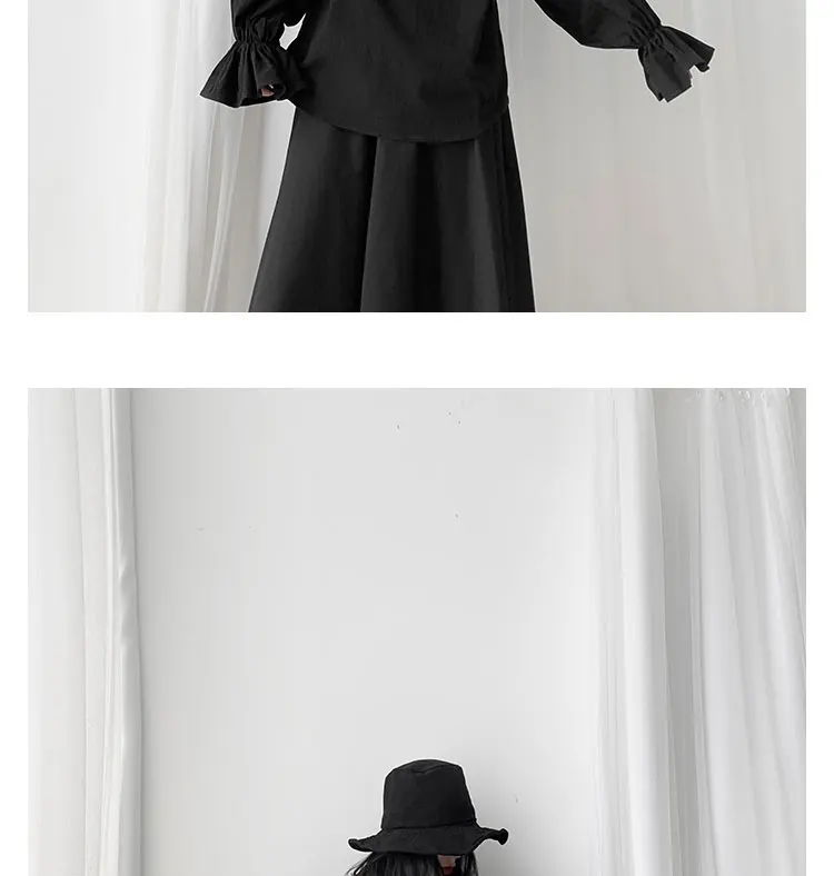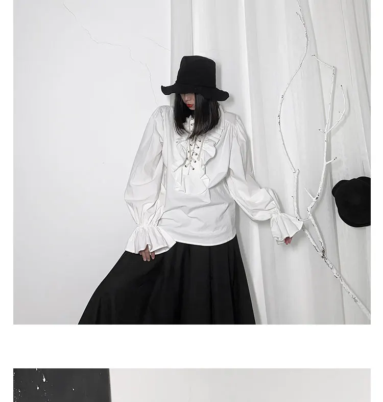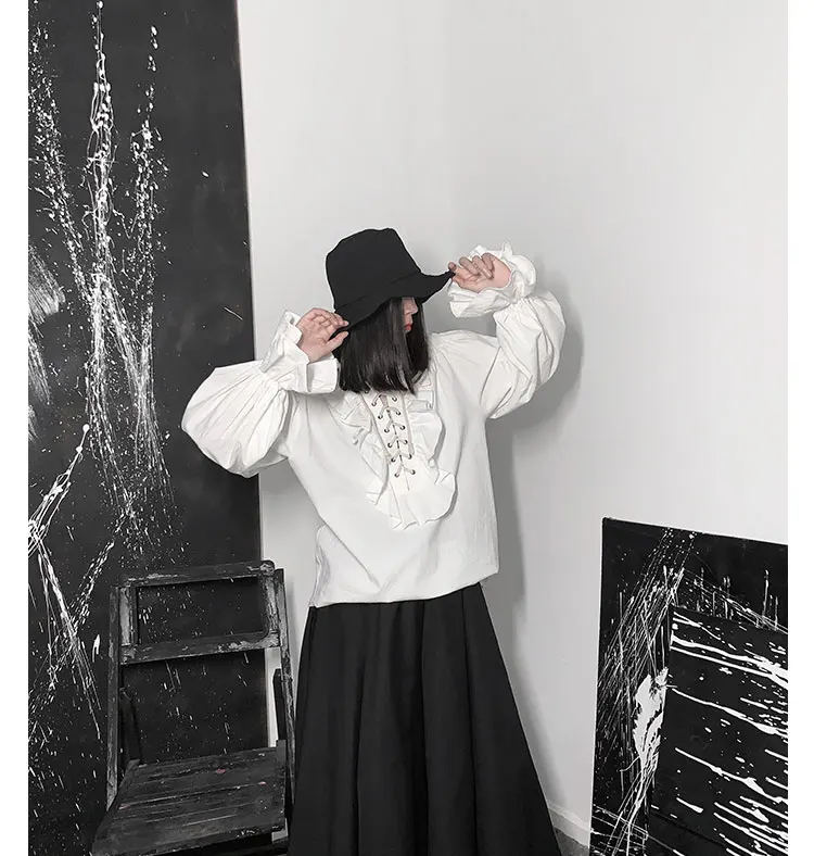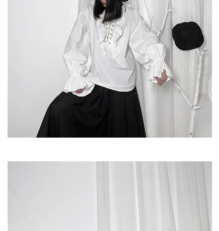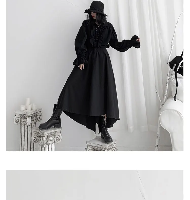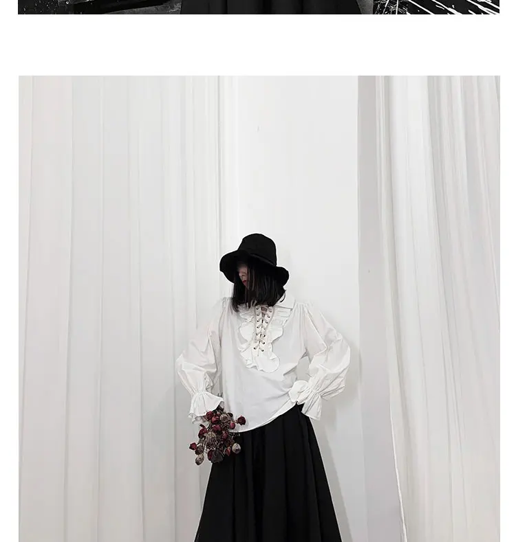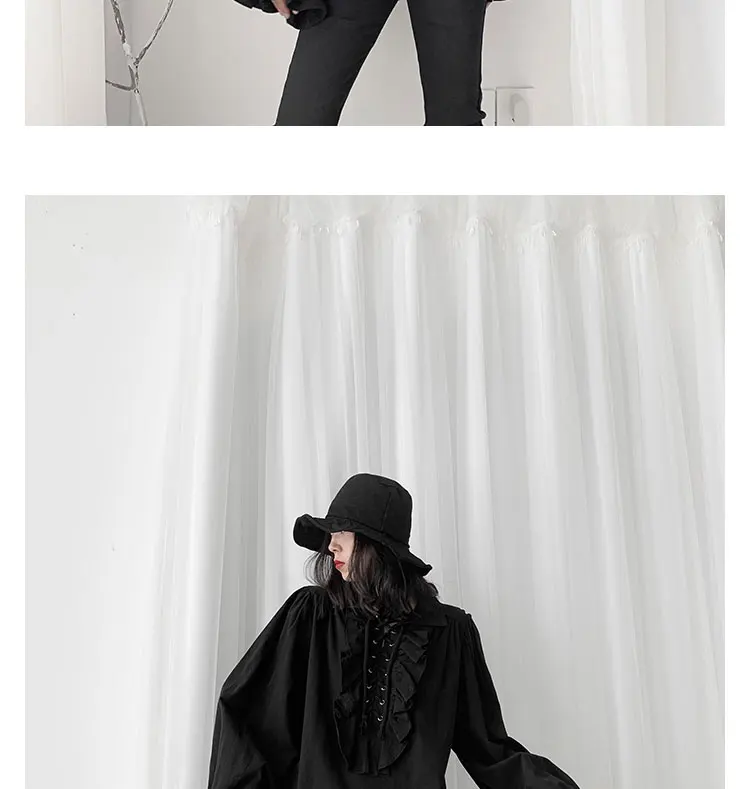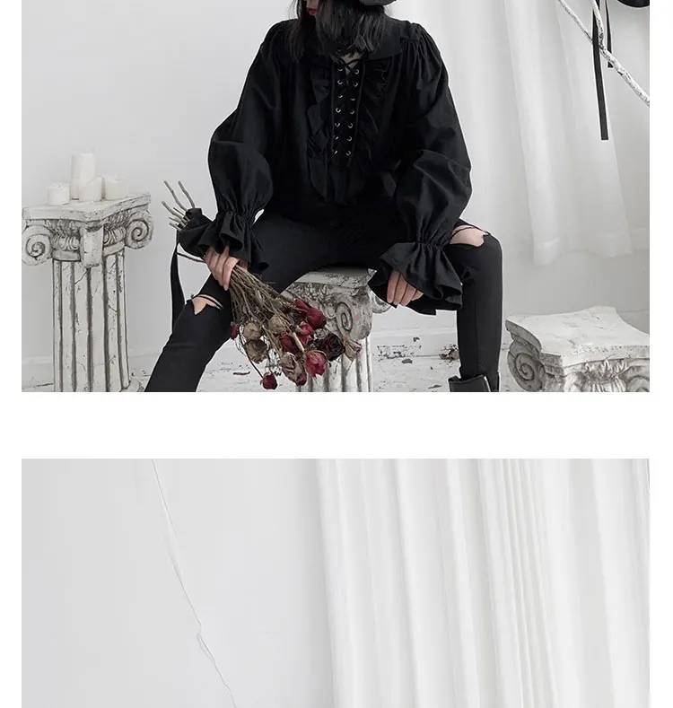 Fall Fashion Vintage Gothic Shirt Women Flare Sleeves Ruffles Oversize Club Party Evening Girl Lolita Black Blouse V-neck Tops