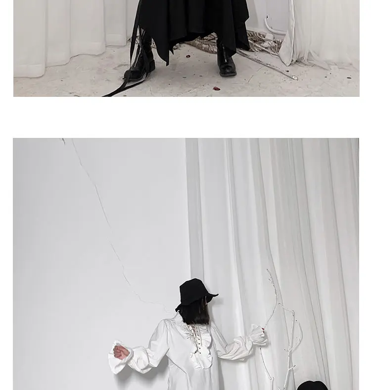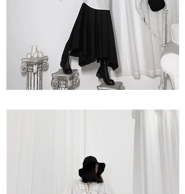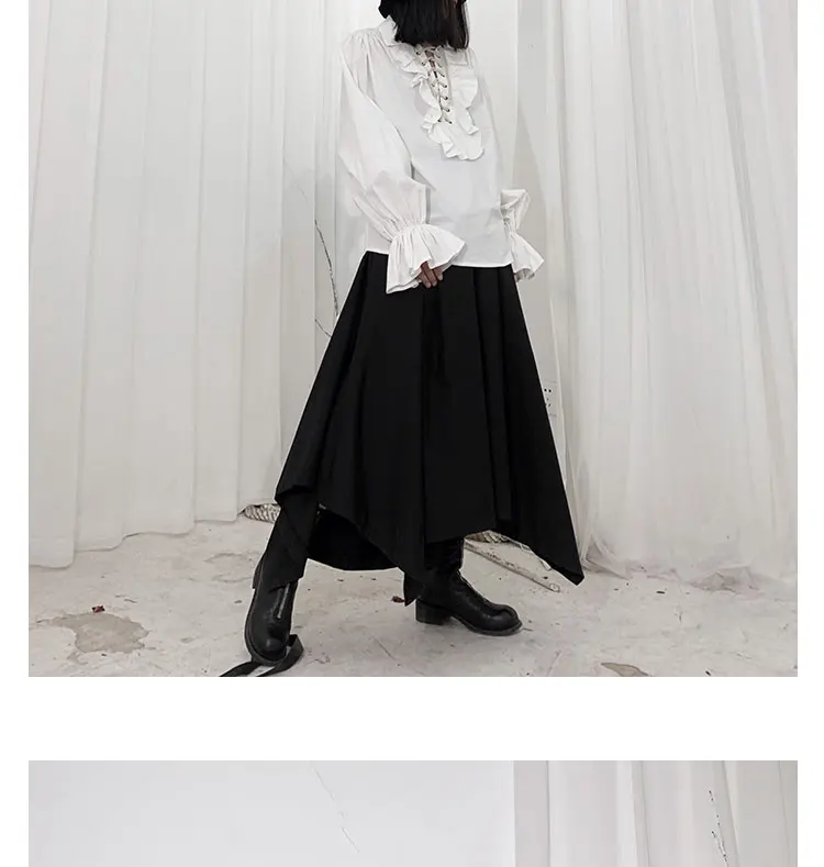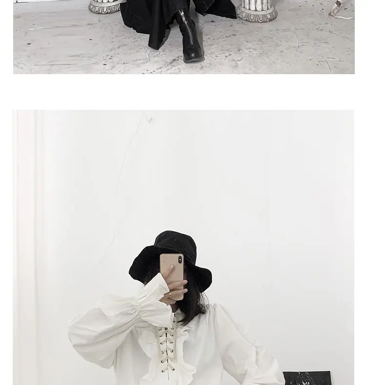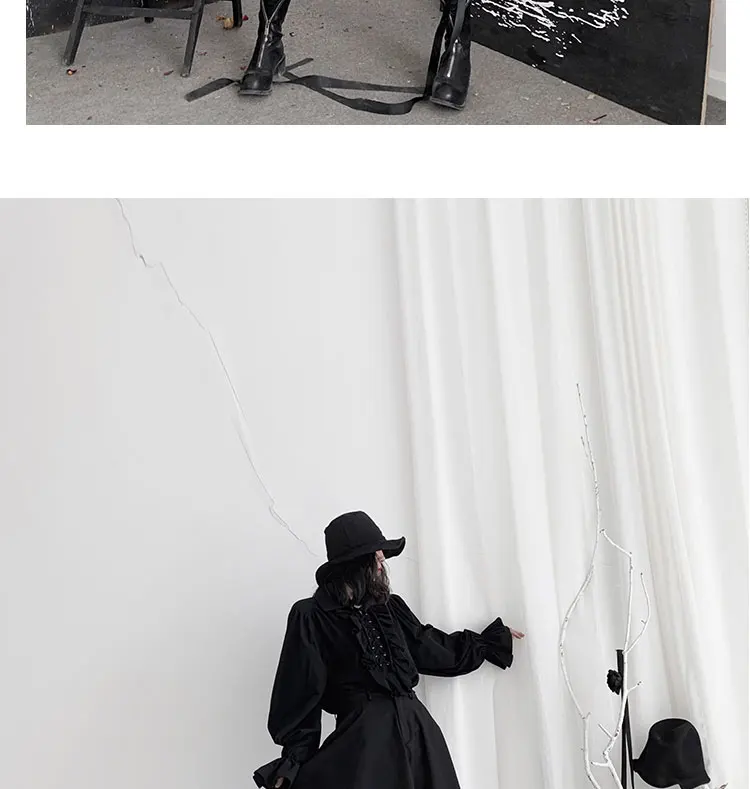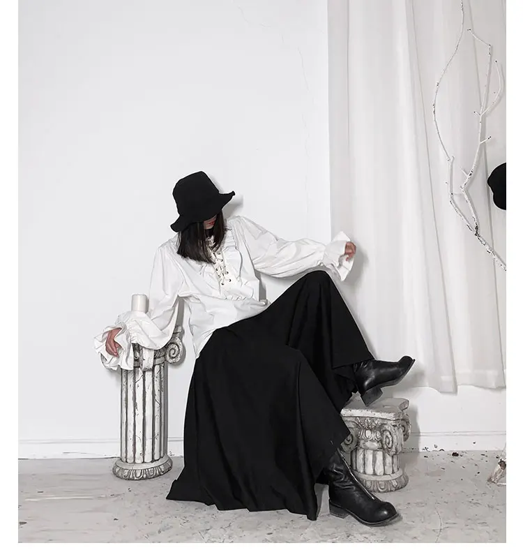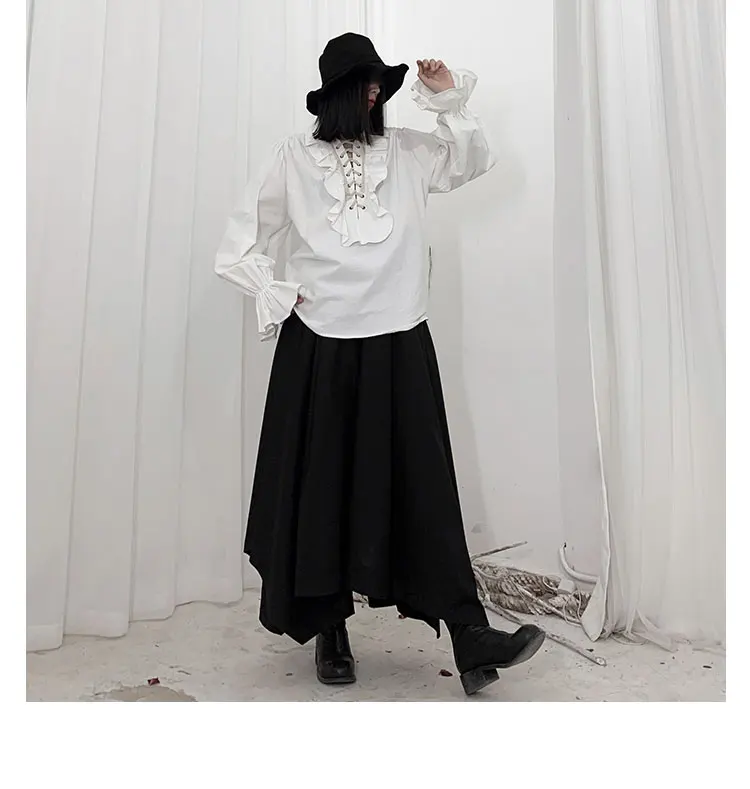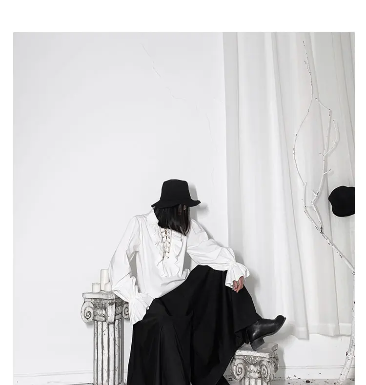 Fall Fashion Vintage Gothic Shirt Women Flare Sleeves Ruffles Oversize Club Party Evening Girl Lolita Black Blouse V-neck Tops