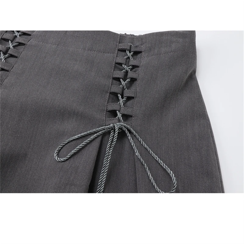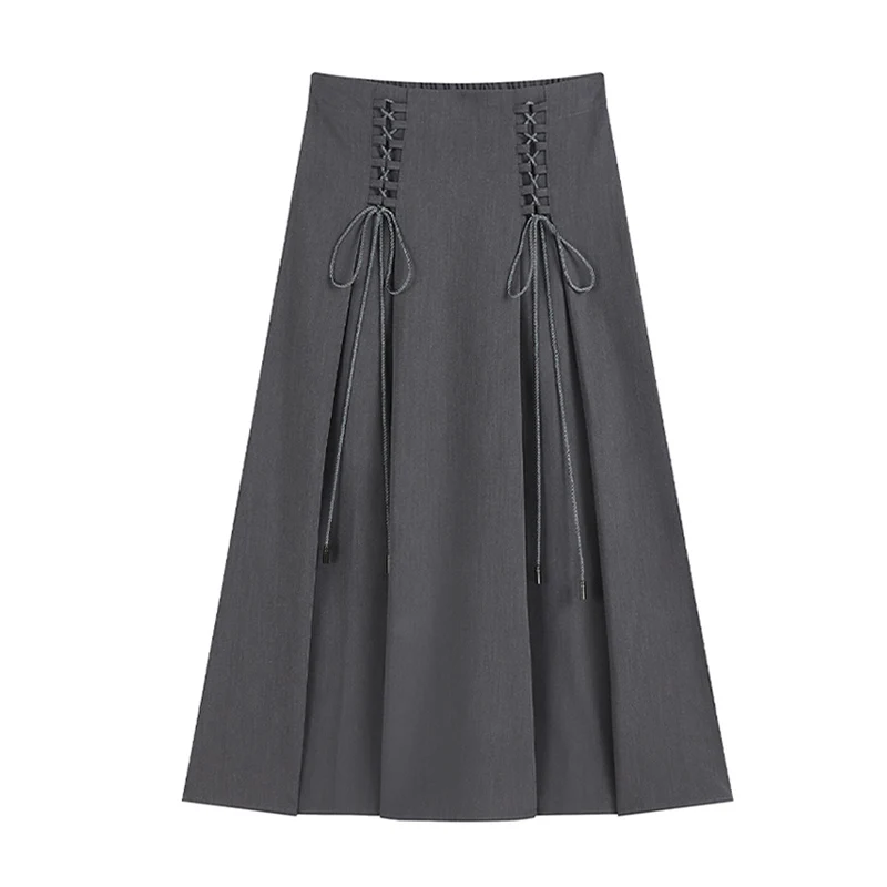 Female Vintage y2k Long Skirts Lace Up High Waisted Straight Skirts Autumn Women All-match Korean Style Elegant Party Trendy