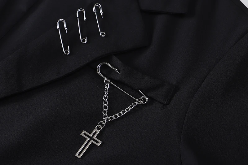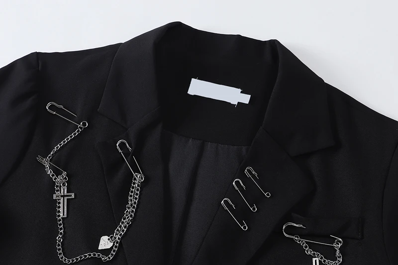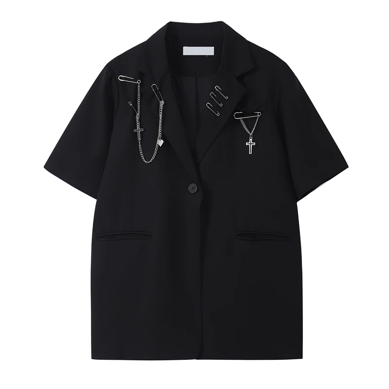 Gothic Punk Cardigan Black Blazer Jacket Coat Women 2022 Summer Short Sleeve High Street Fashion Outerwear Loose Chain Goth Tops