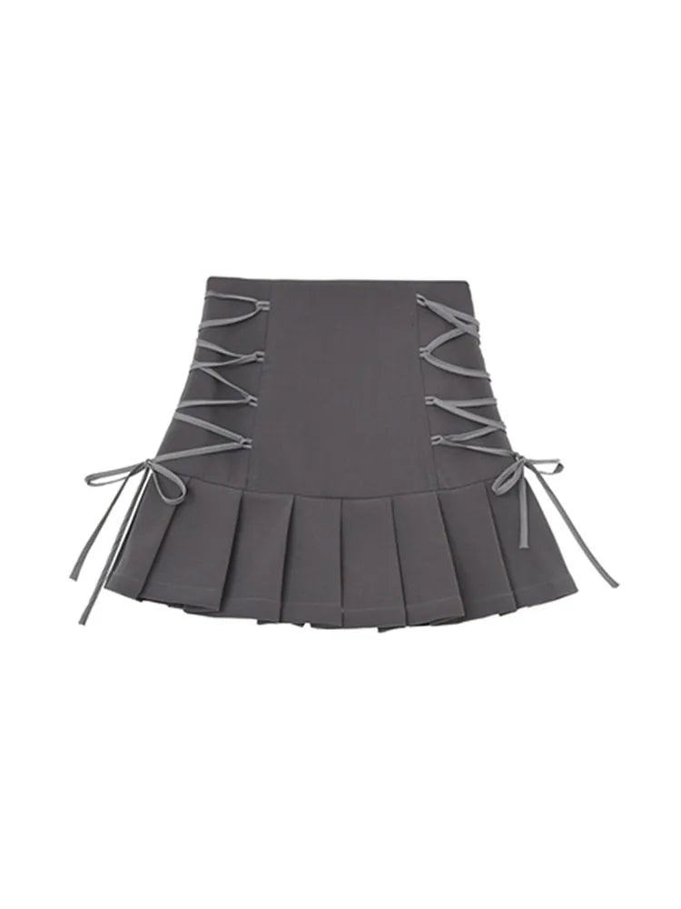 High Waist Pleated Skirts For Women Bandage Short Grey Skirts Gothic Sexy Club Streetwear Casual Harajuku Mini Skirts Female