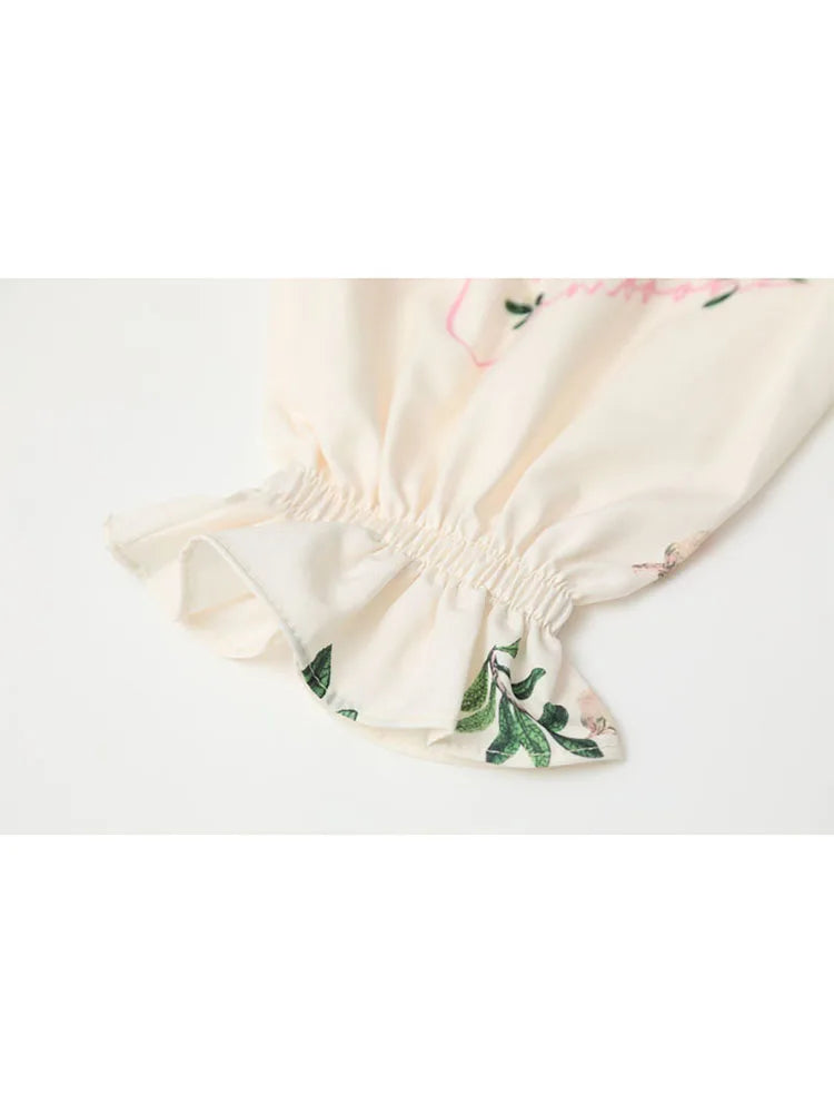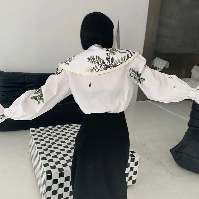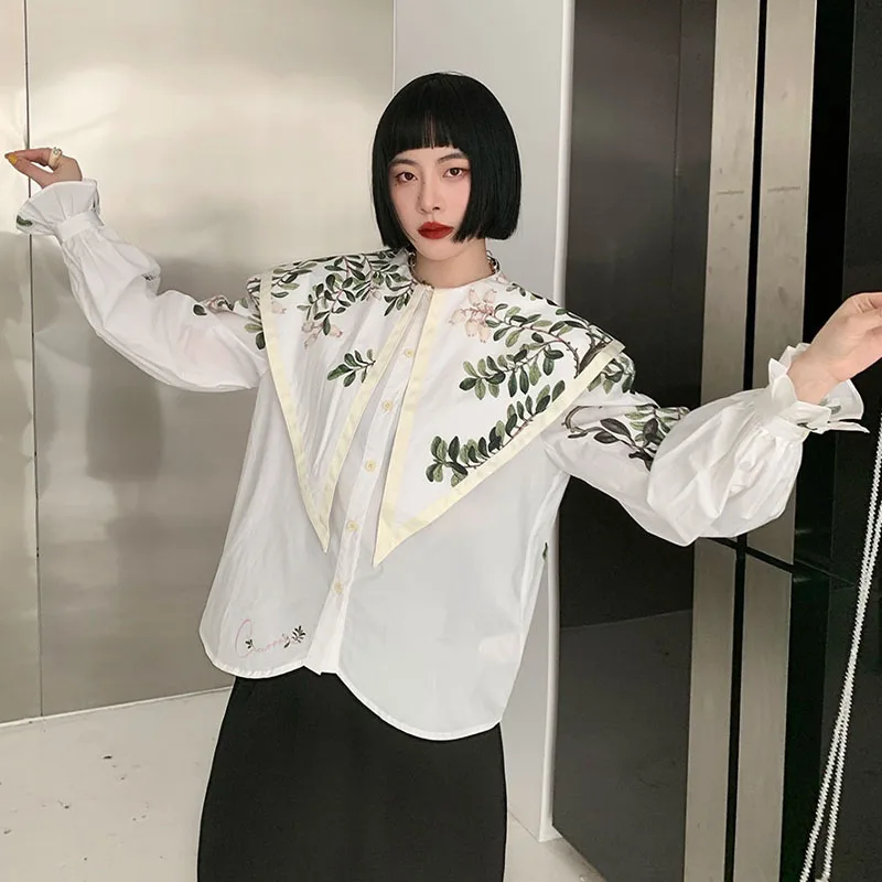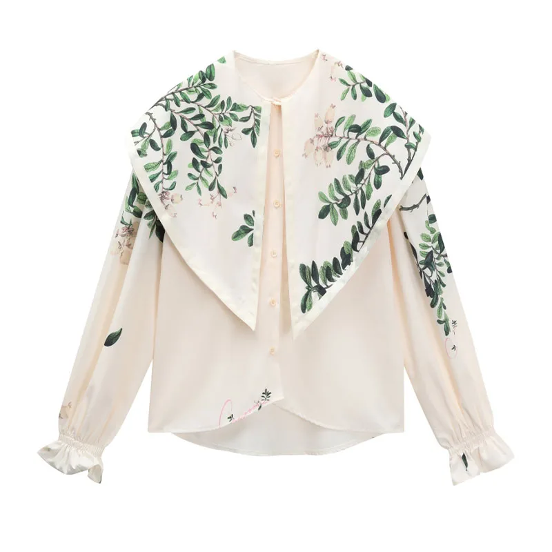 Korean Style Fashion Women Botany Print Shirt Doll Collar Casual Long-Sleeved Women 2022 Autumn New Blouses Chiffon Shirt