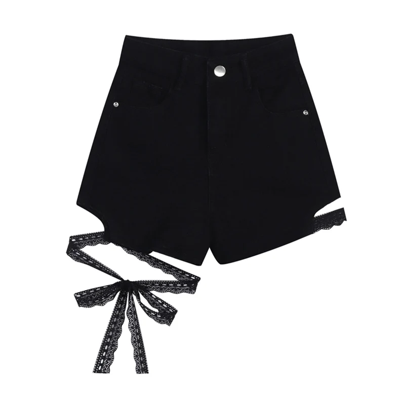 Sexy Slim Summer Women Denim Shorts 2022 New Gothic Black High Waist Short Jeans Y2K Streetwear Female Lace Up Bandage Hot Pants