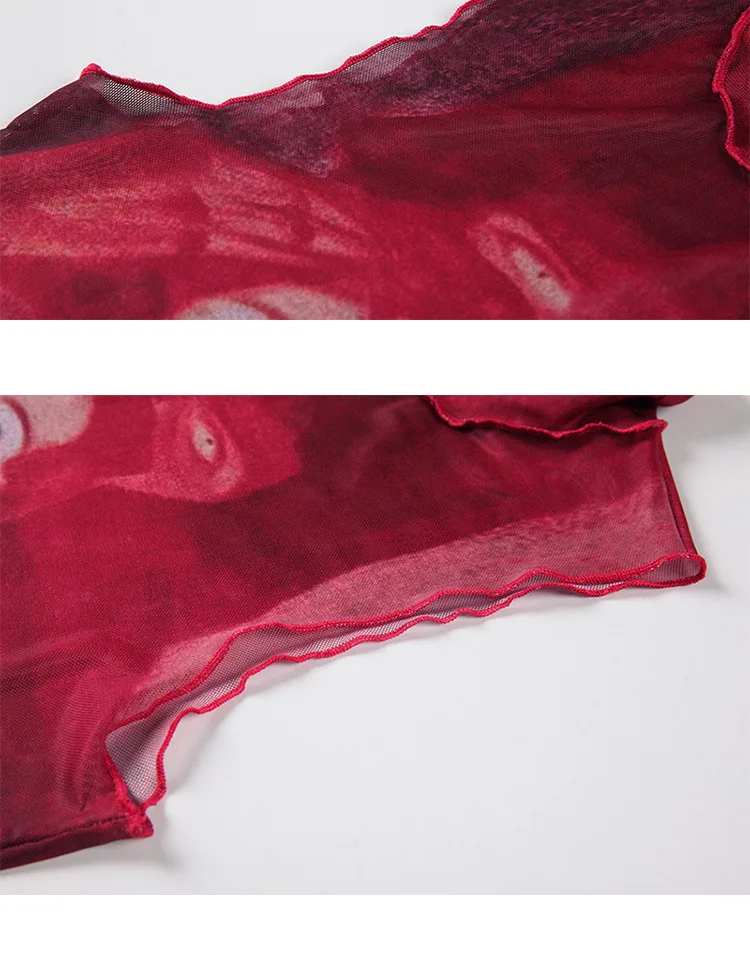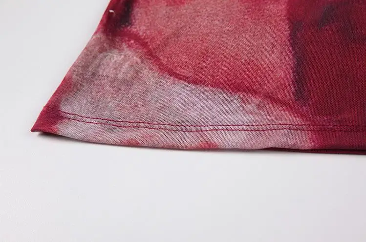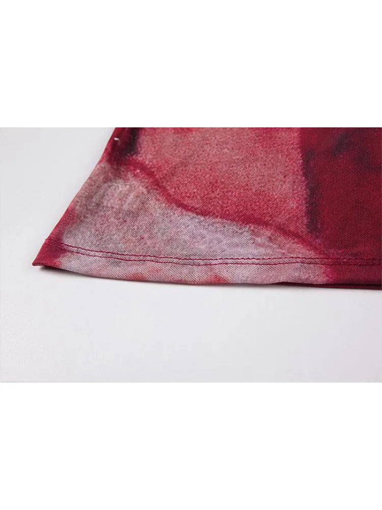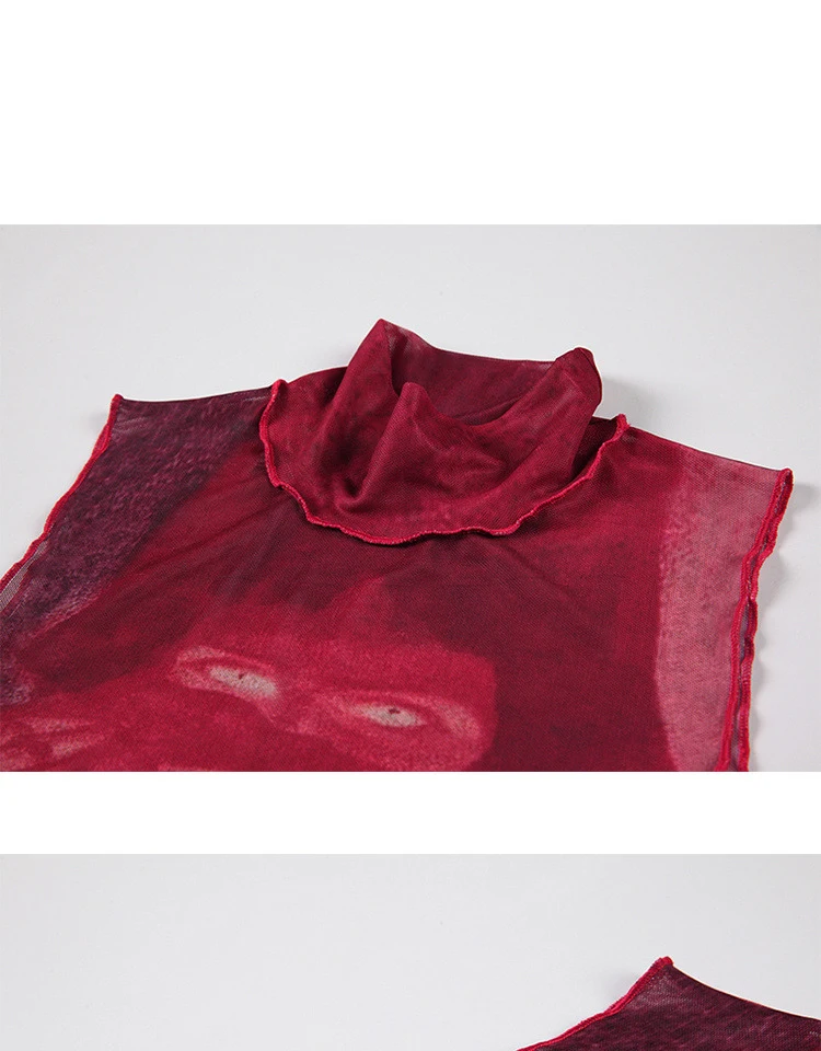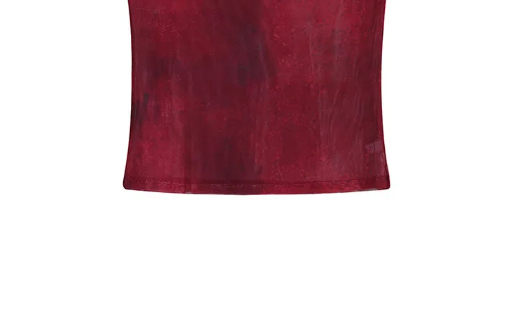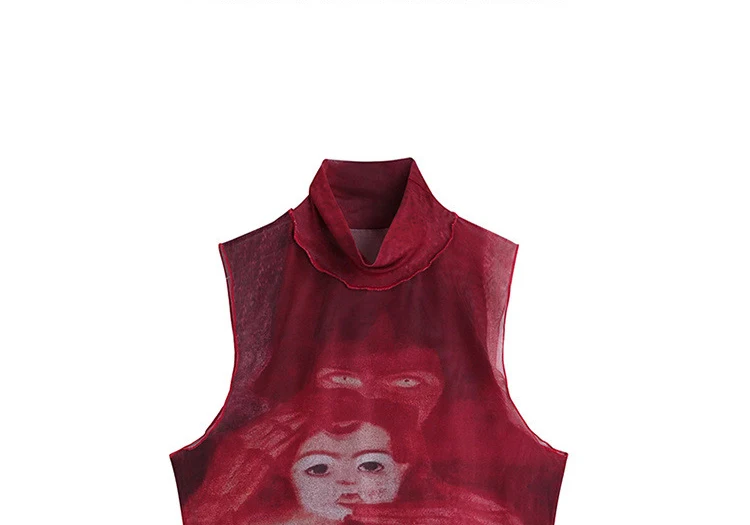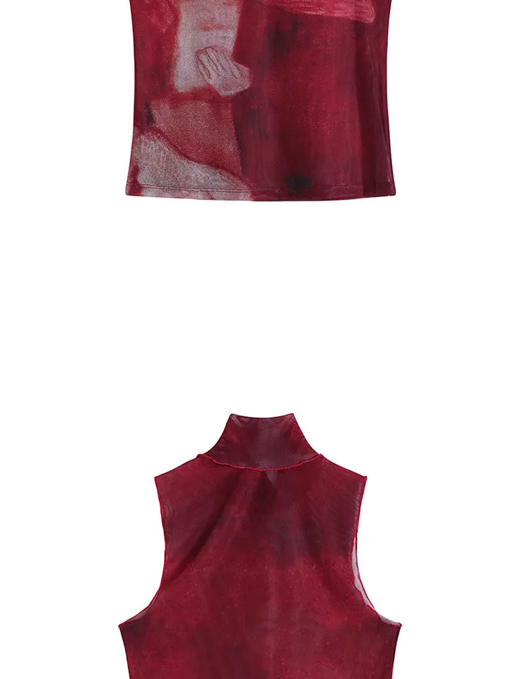 Tie Dye Mesh High Neck Hand Painted Printed Women Top 2022 Summer Fashion Sleeveless Slim T Shirt Lady Holiday Beach Style Tops