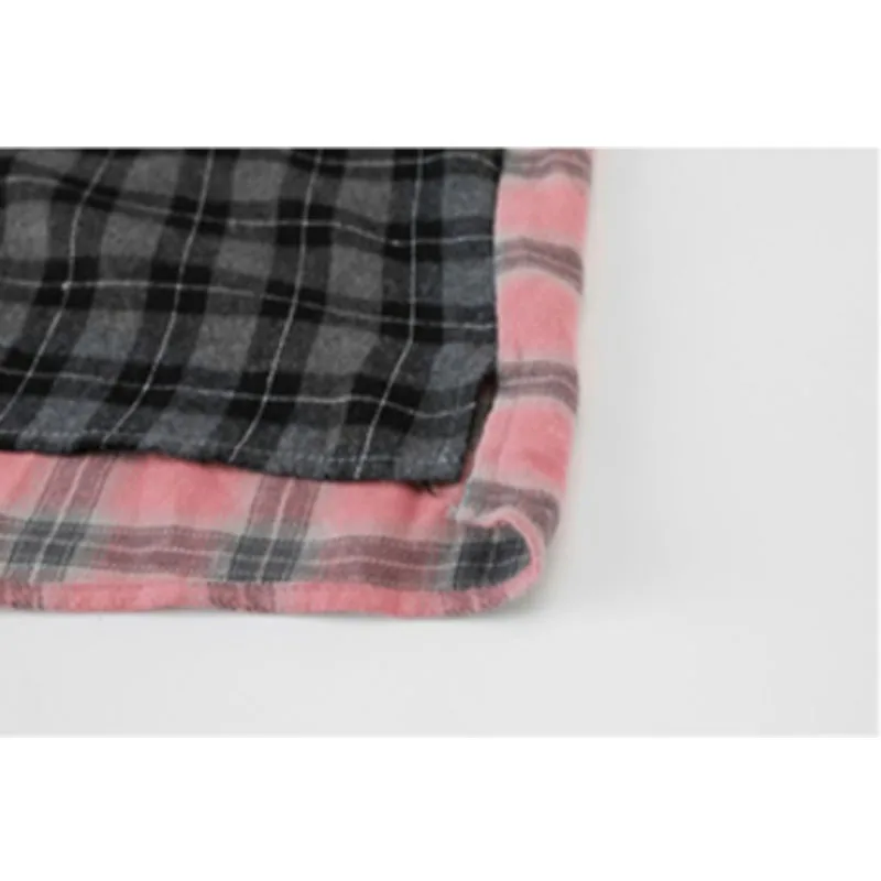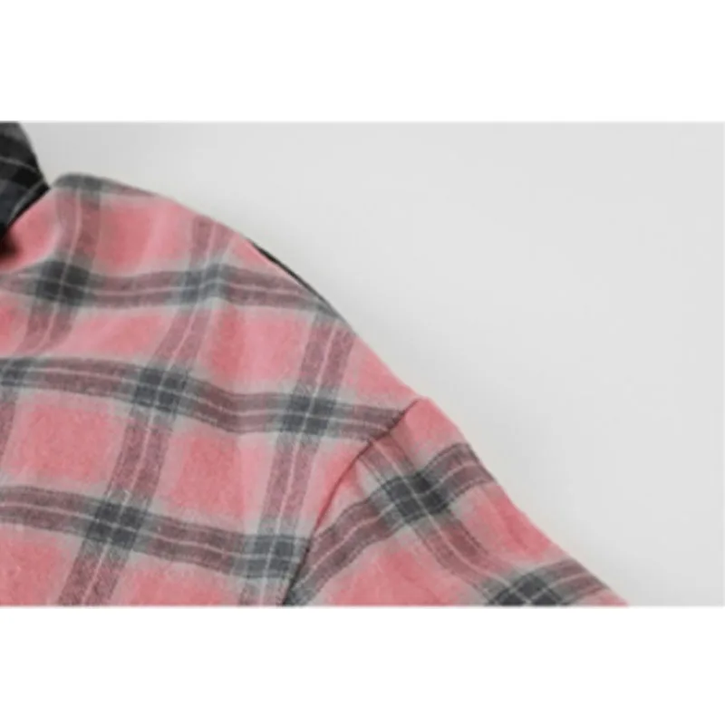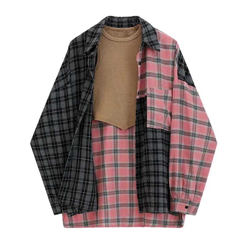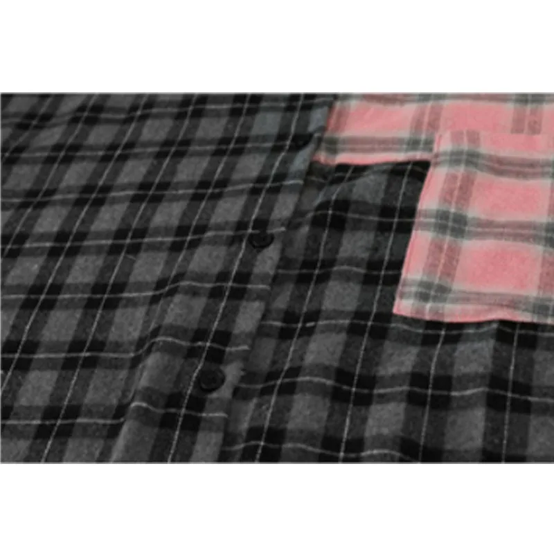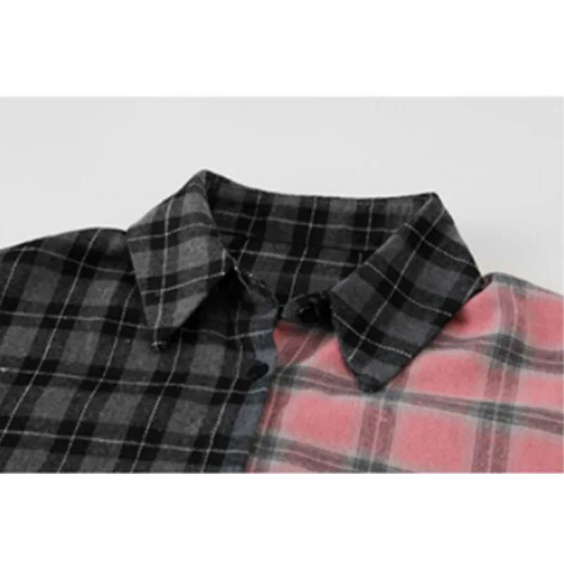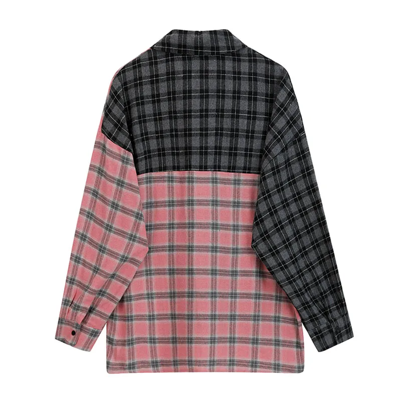 Turn-Down Neck Long Sleeve Patchwork Plaid Shirts Women Autumn Oversize Button Up Shirt Korean Fashion Casual Outwear Tops