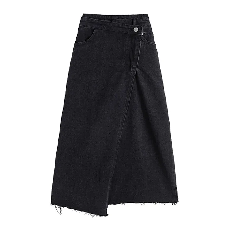 Woman Fashion Loose Sexy Lrregular Denim Skirt Women 2022 Long Jean Skirt High Waist Pencil Skirt Ladies Black Casual Elegant