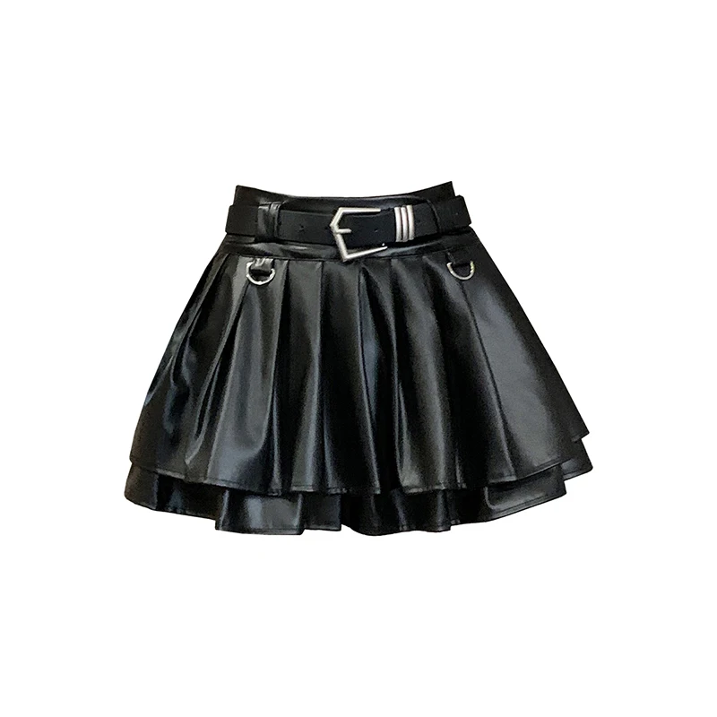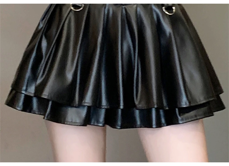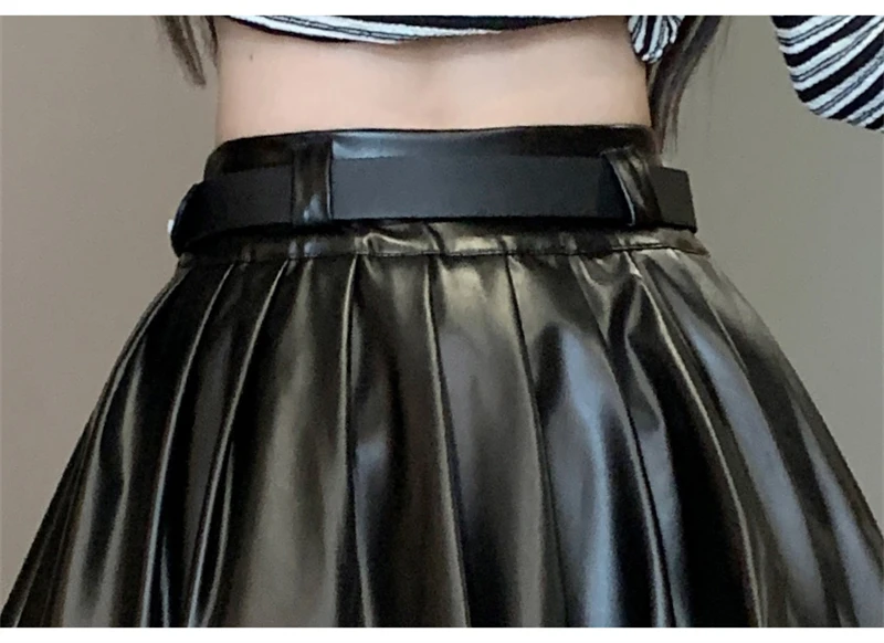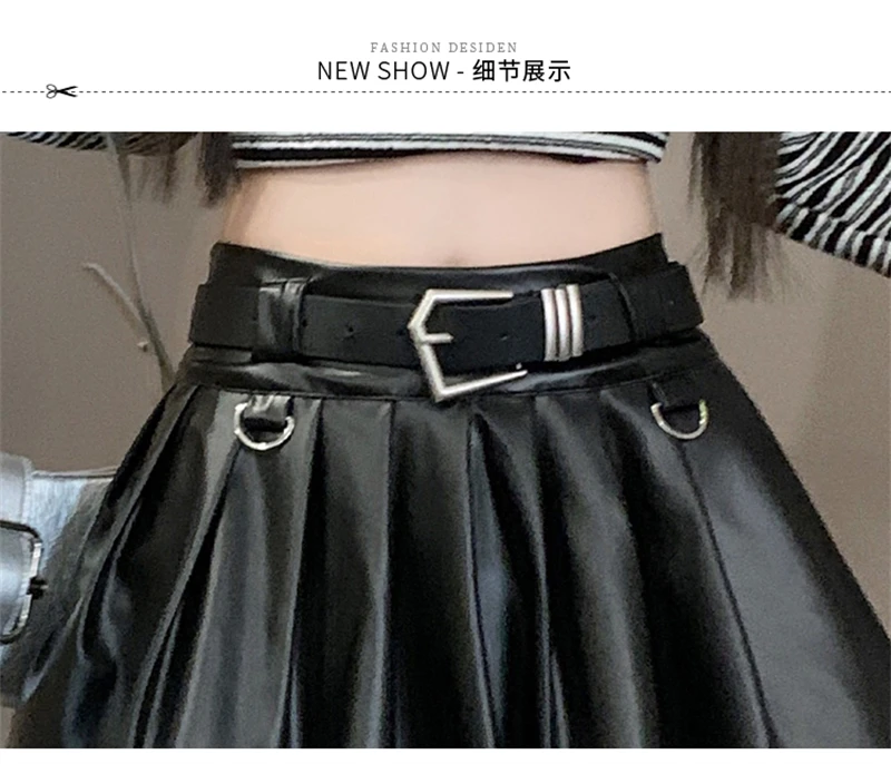 Women Black A-line Leather Skirt Vintage Aesthetic Y2k Pleated Skirt Harajuku Korean Gothic Mini Skirt Emo 2000s Clothes Summer