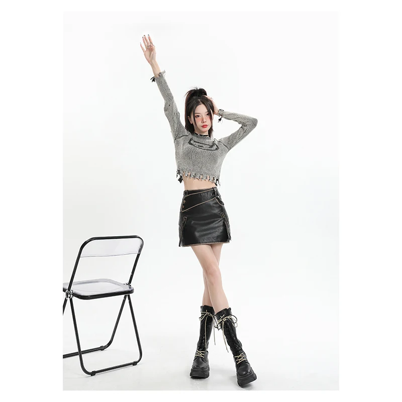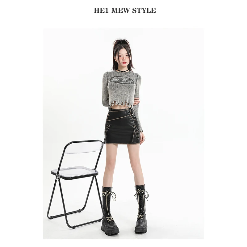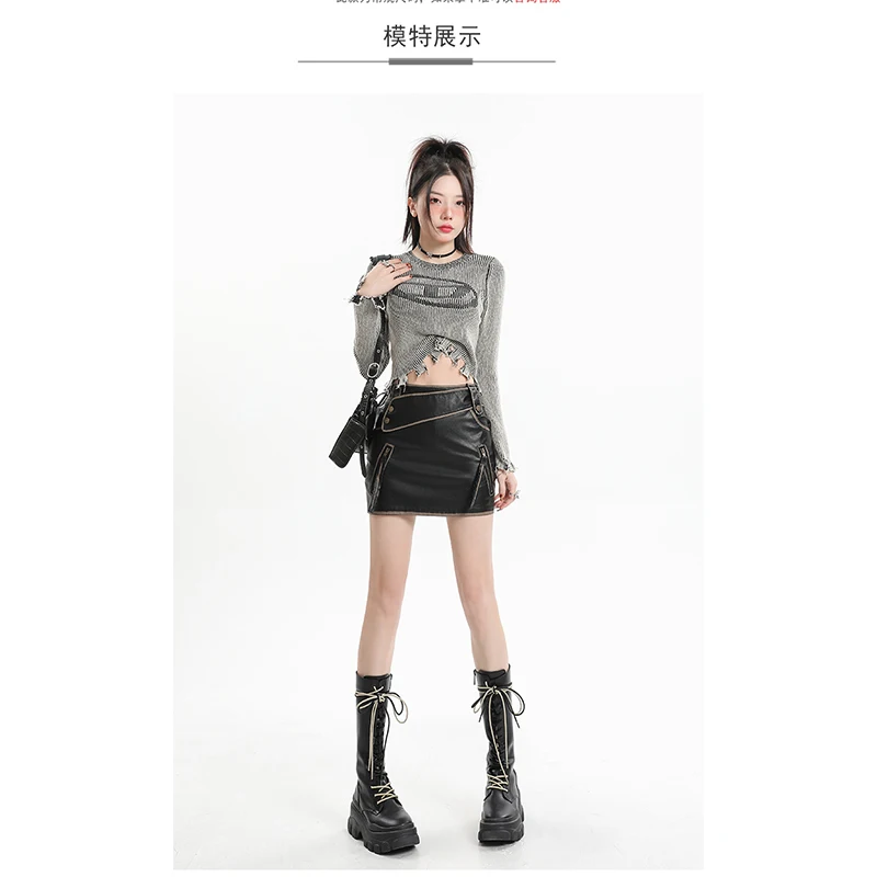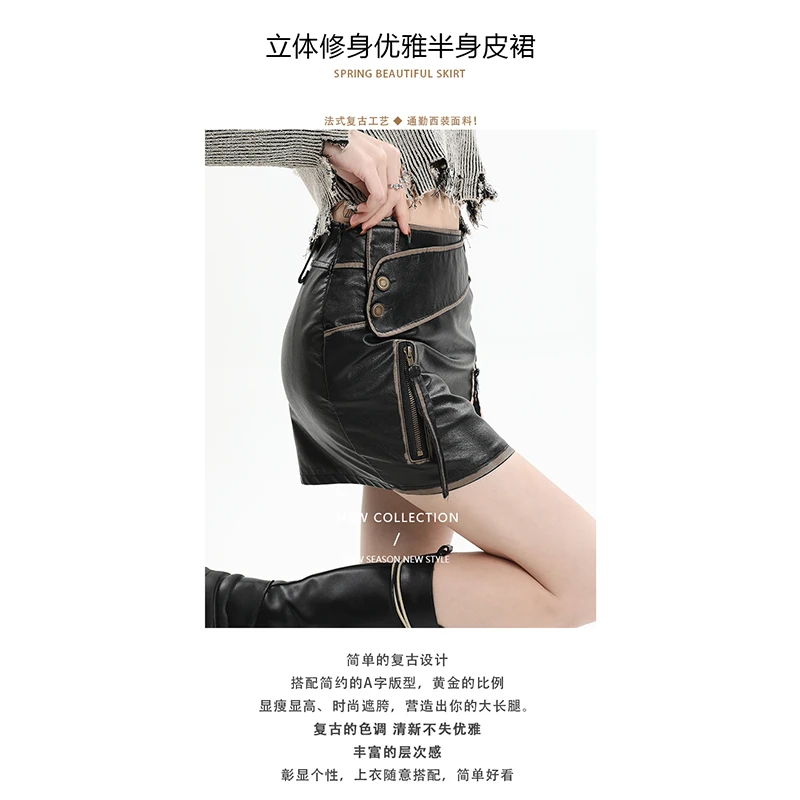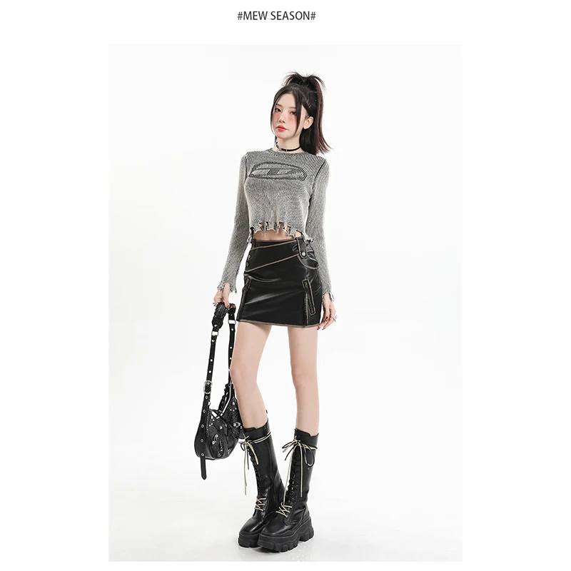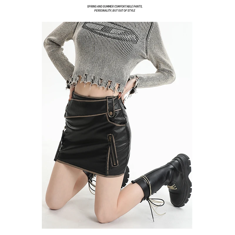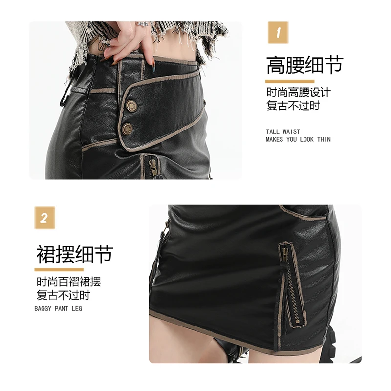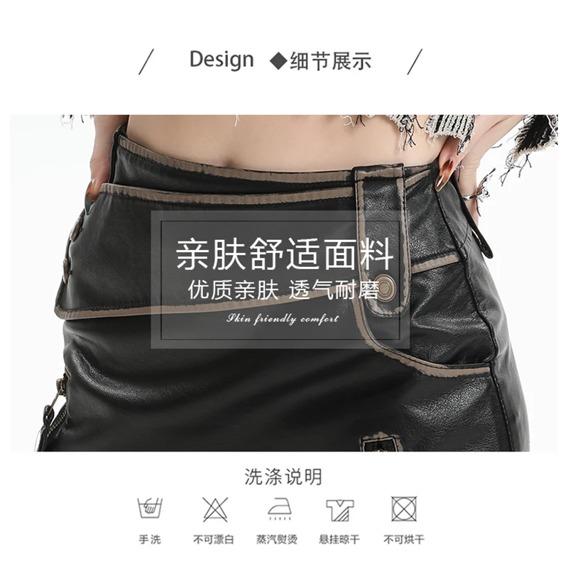 Women Black Gothic A-line Leather Skirt Vintage Y2k Skirt Harajuku Korean Fashion Mini Skirt 2000s Aesthetic Trashy Clothes 2024