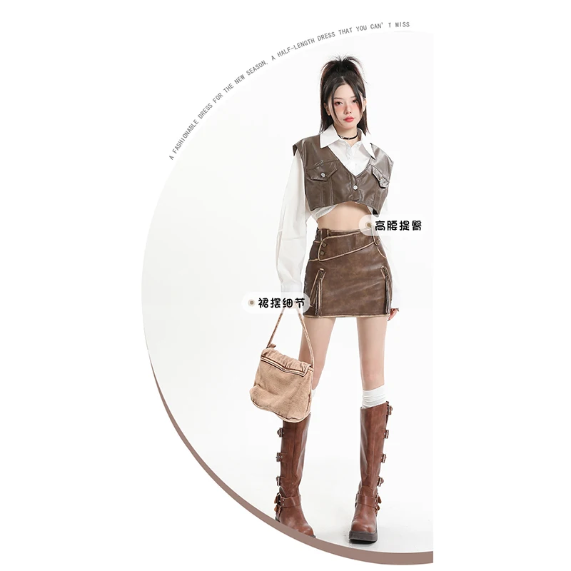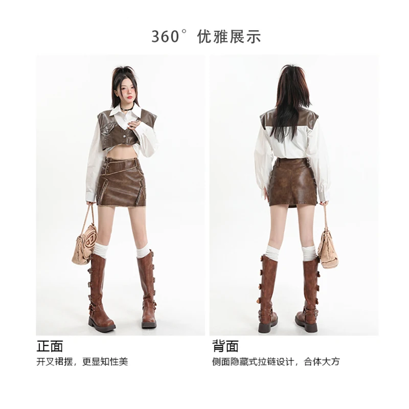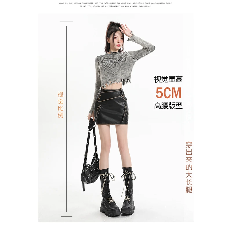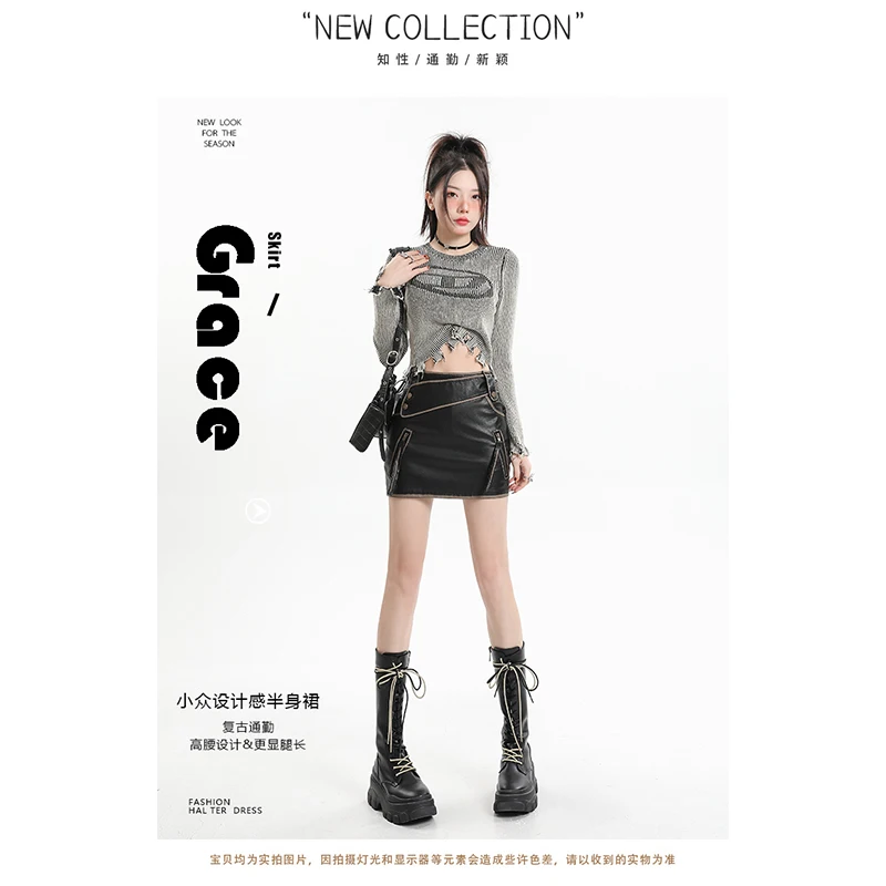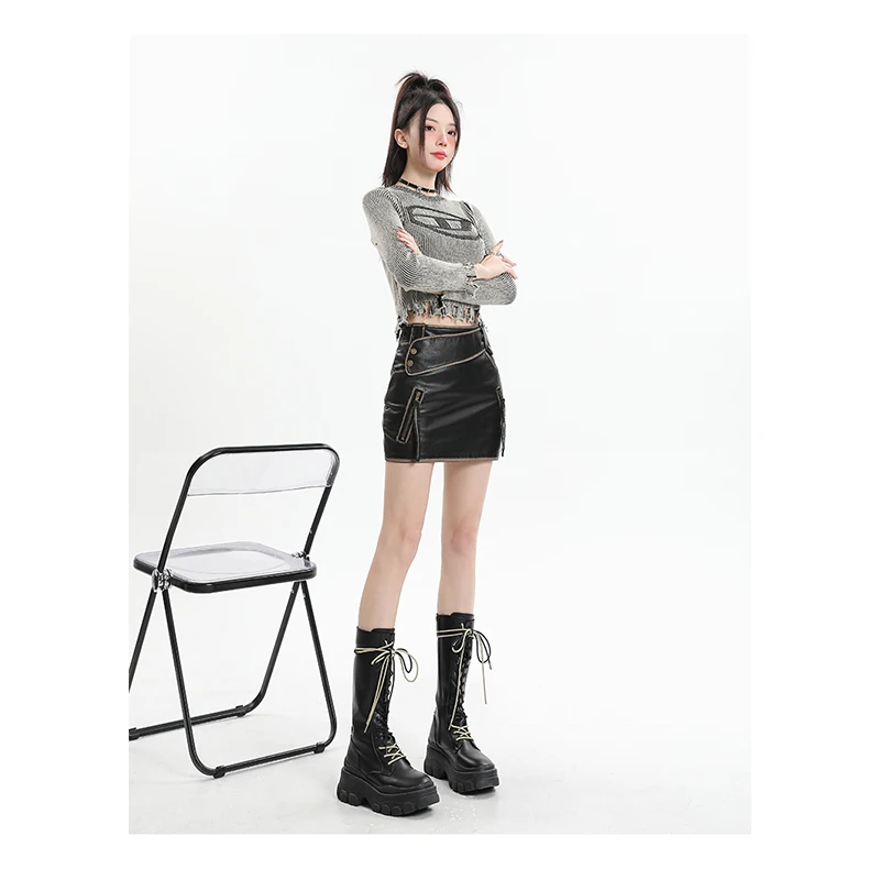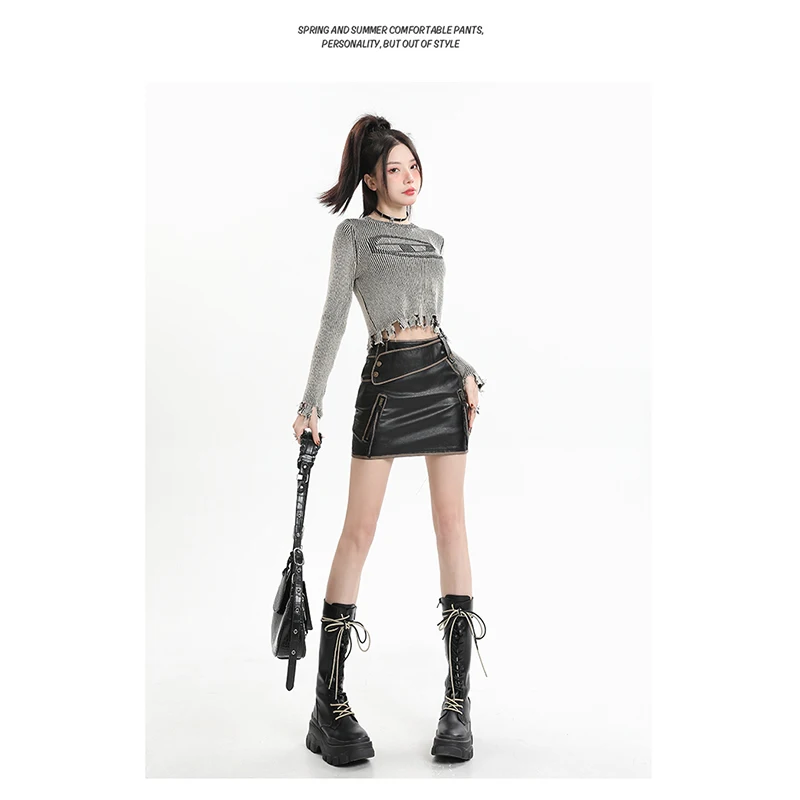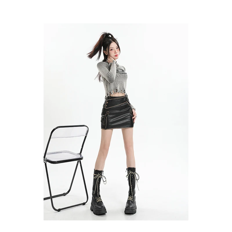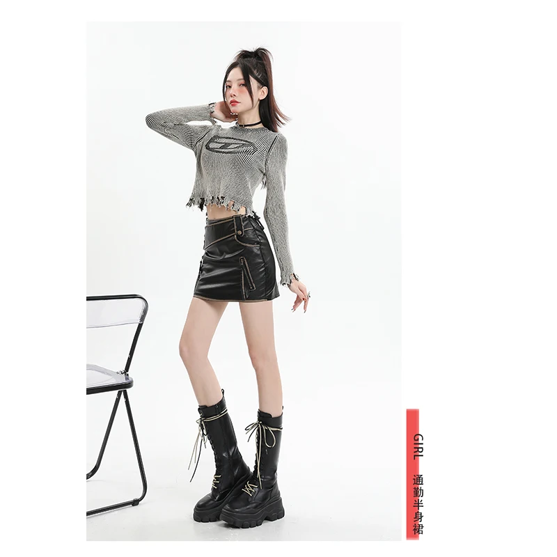 Women Black Gothic A-line Leather Skirt Vintage Y2k Skirt Harajuku Korean Fashion Mini Skirt 2000s Aesthetic Trashy Clothes 2024
