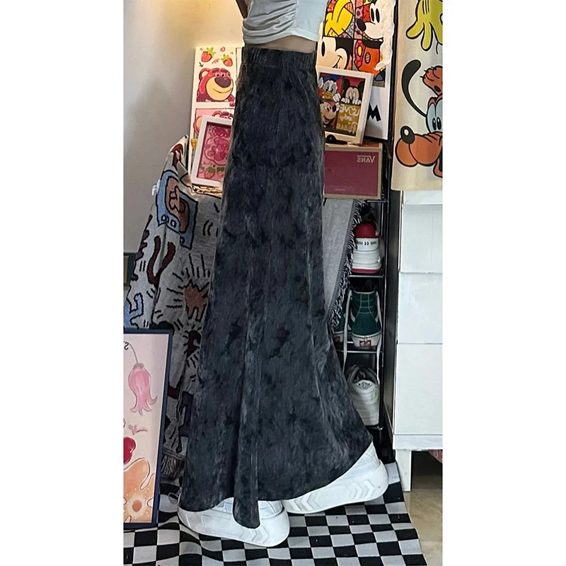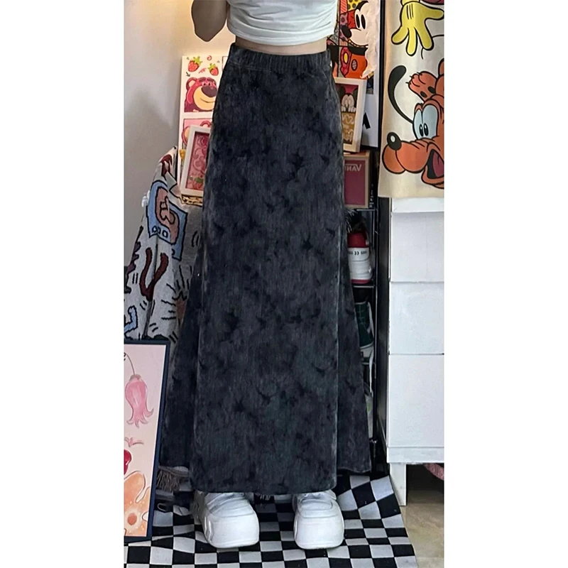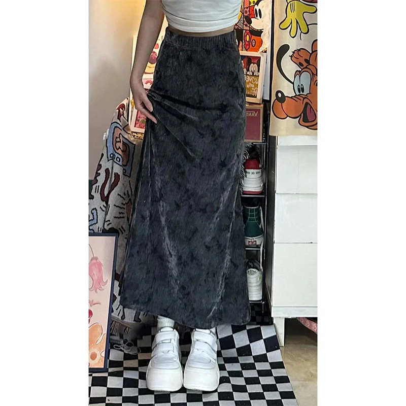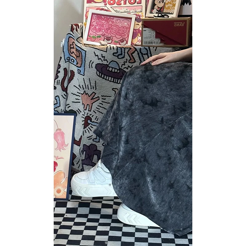 Women Black Gothic A-line Long Skirt Vintage Y2k Skirt Harajuku Korean Streetwear Tie-Dyed Skirts 2000s Goth Clothes Summer 2024