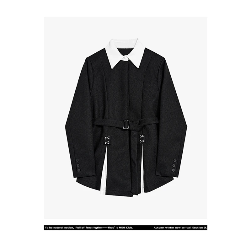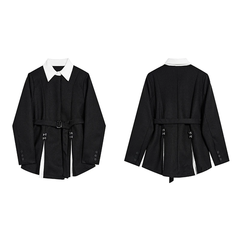 Women Black Gothic Blazer Elegant Vintage 90s Fashion Coat with Belt Y2k Suit Jacket Harajuku Long Sleeve Outwear 2000s Clothes