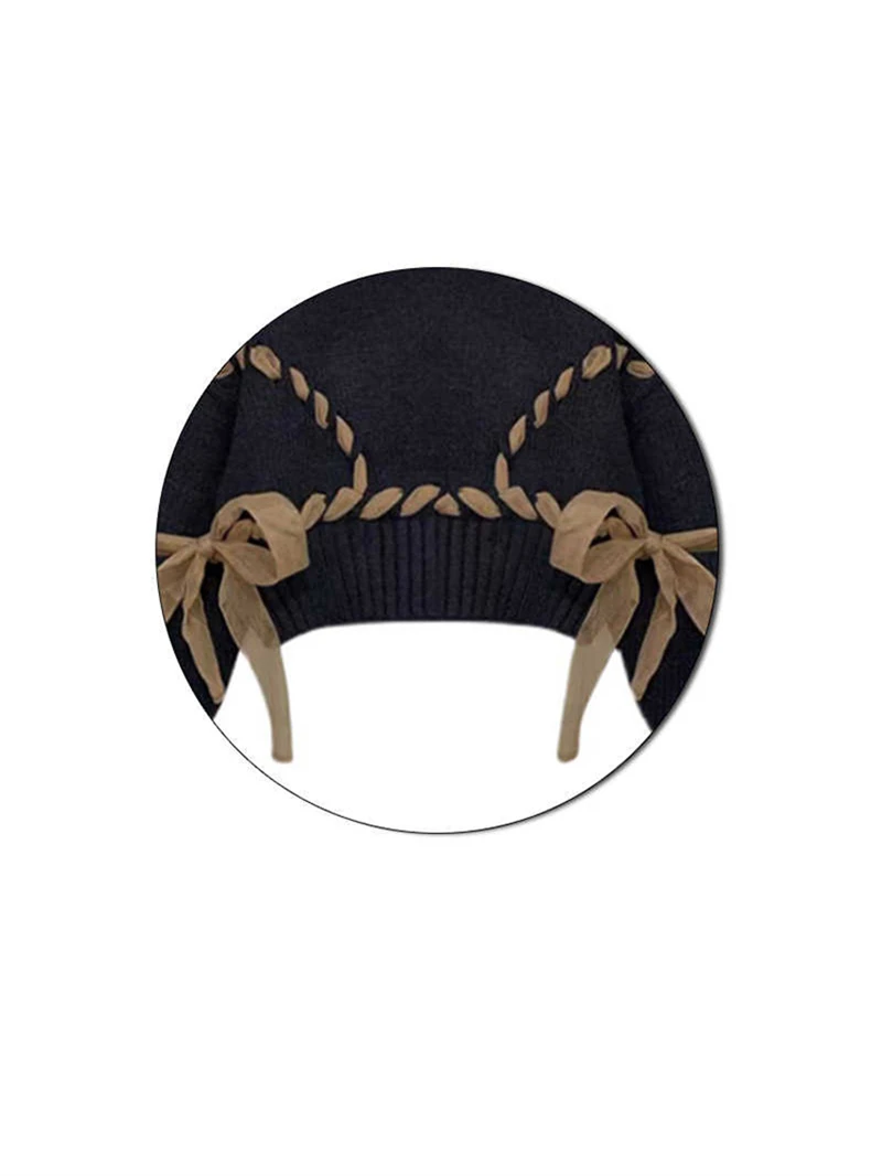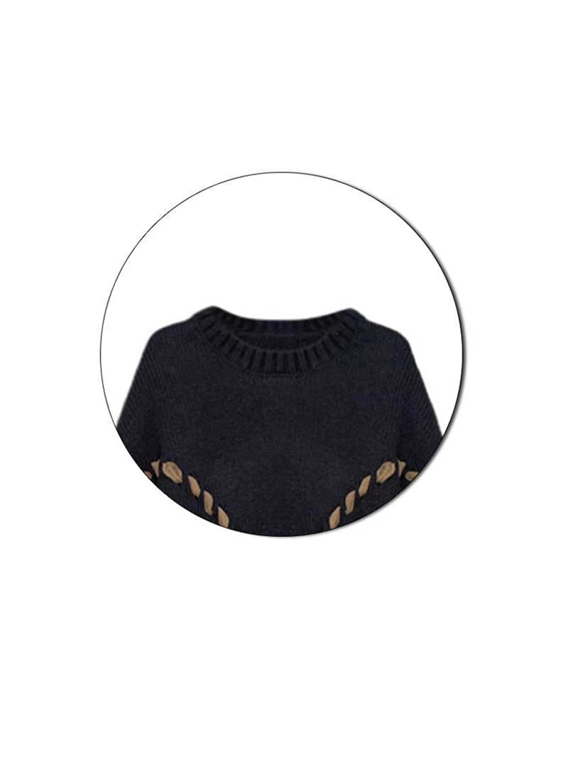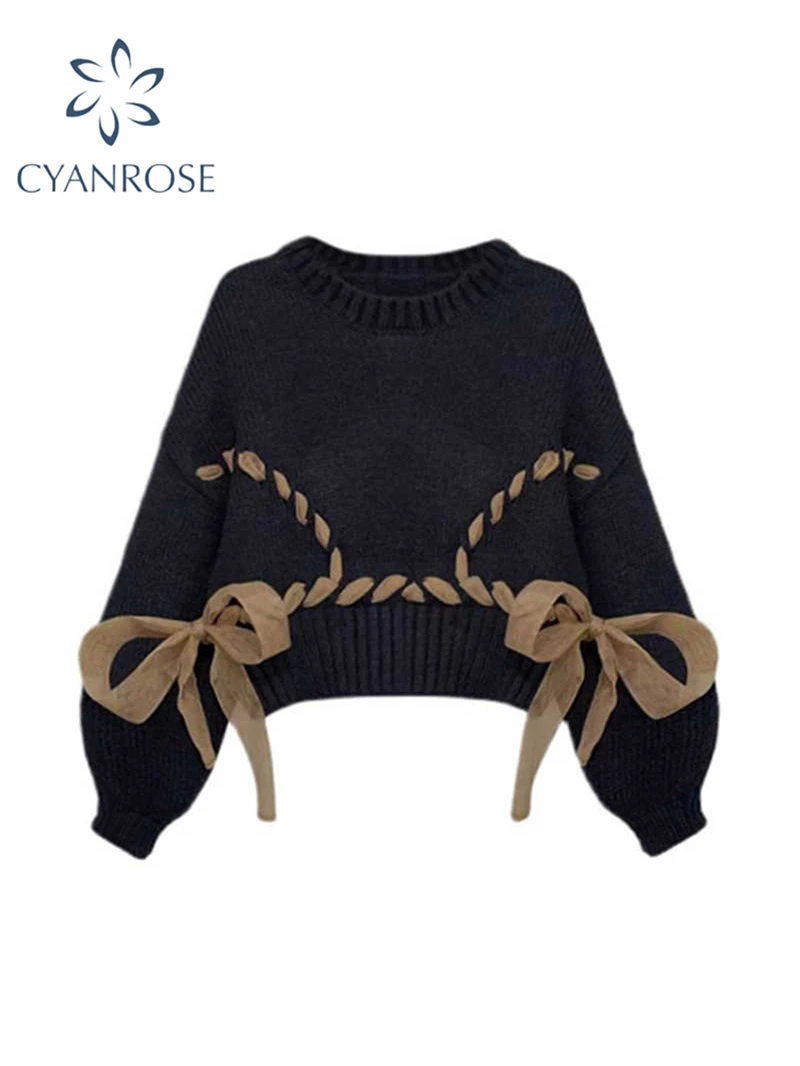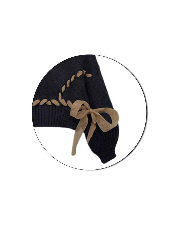 Women Black Gothic Pullover Sweater Harajuku Y2k Long Sleeves Lace-up Cashmere Knitted Sweaters Aesthetic Vintage 2000s Clothes