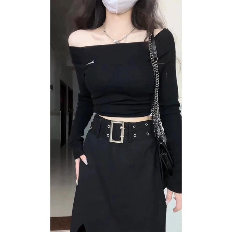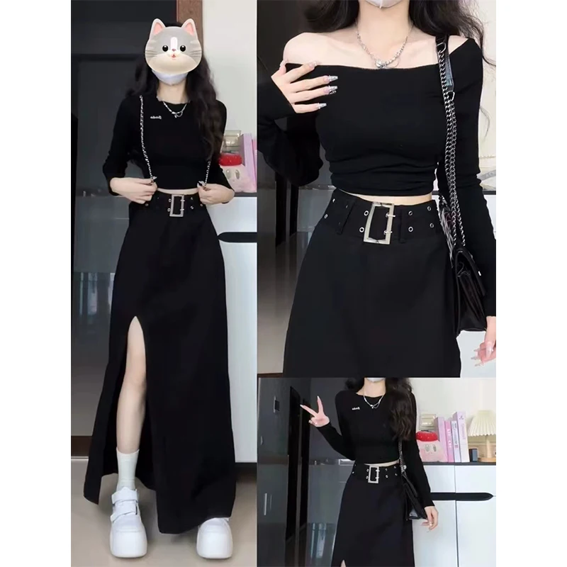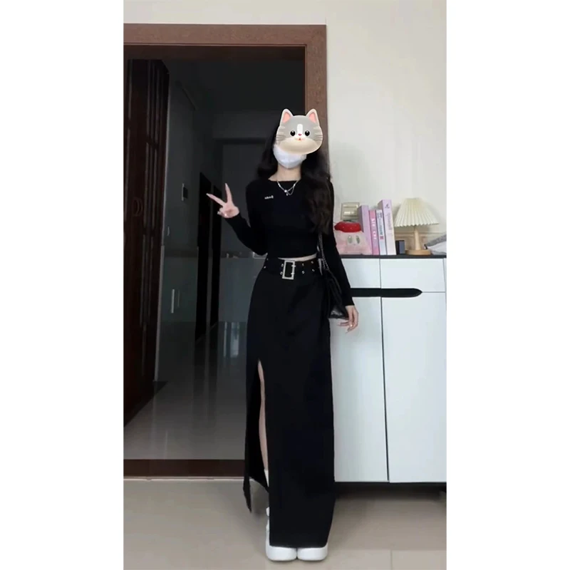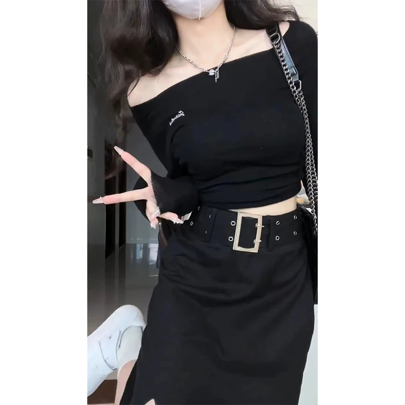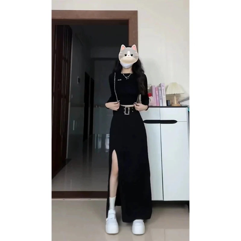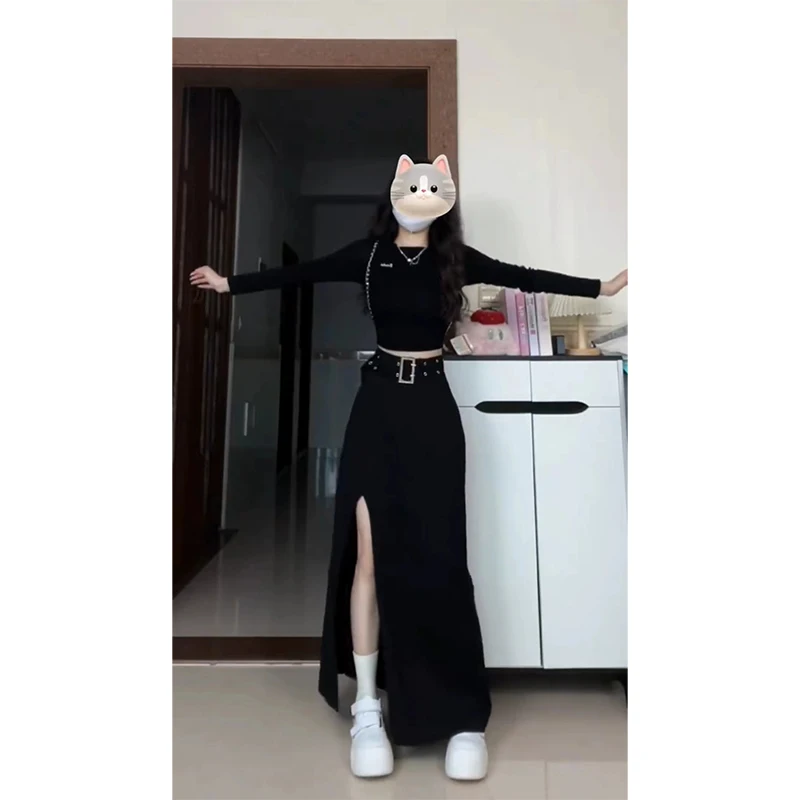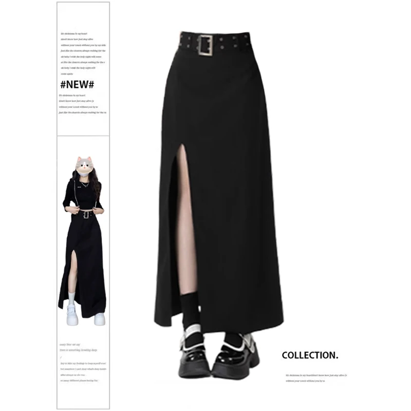 Women Black Gothic Skirt Vintage High Waist A-Line Skirt Emo 2000s Fashion Harajuku Streetwear Y2k Long Skirt 90s Girls Clothes