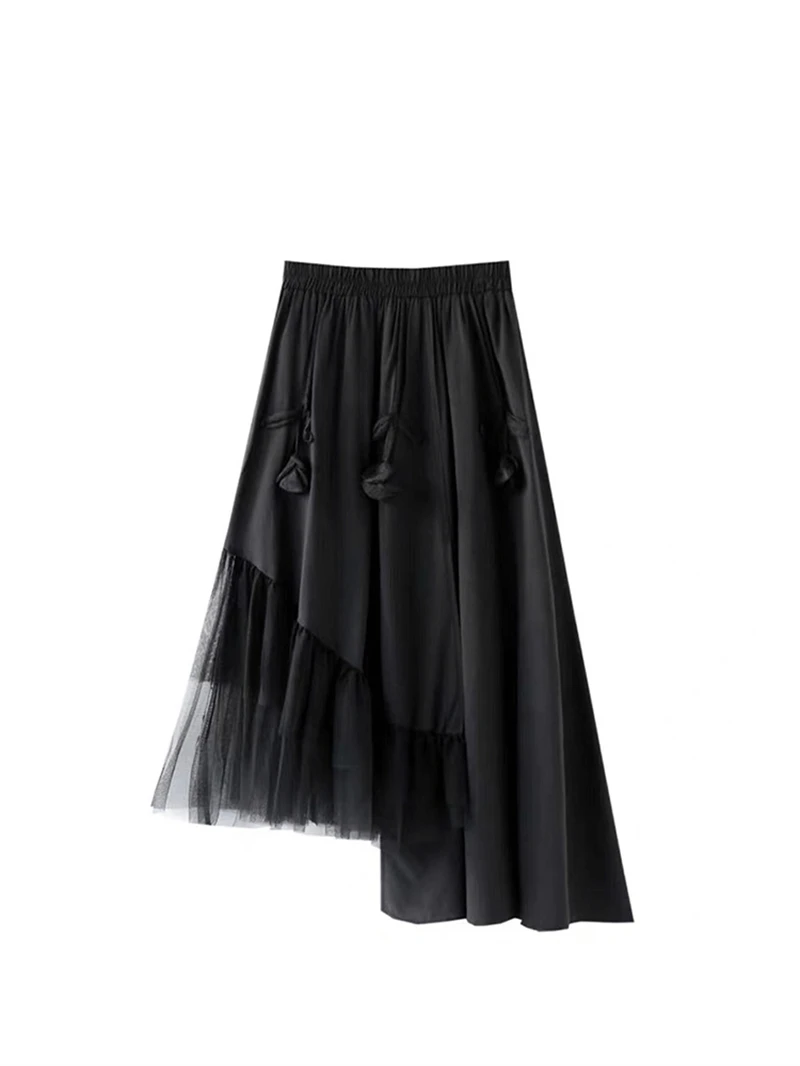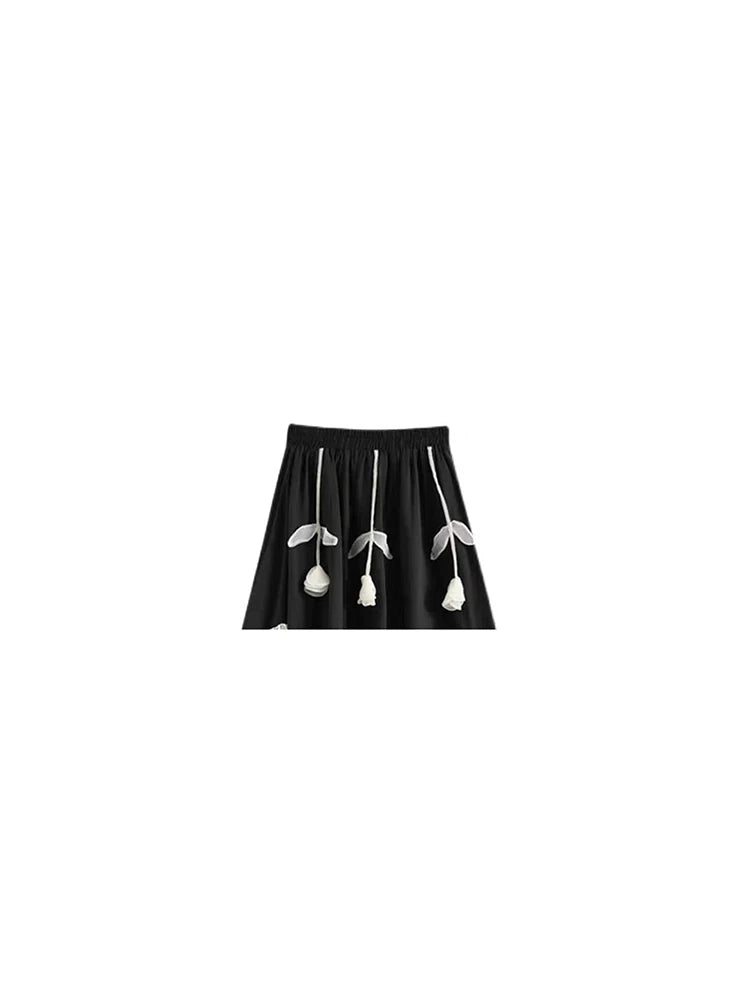 Women Black Gothic Y2k A-line Skirt Elegant Harajuku Patchwork Mesh Skirts Aesthetic Vintage 3D Floral Long Skirt 2000s Clothes