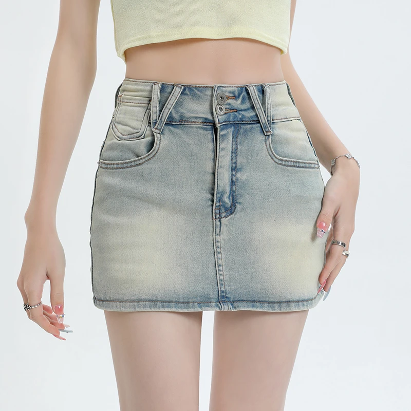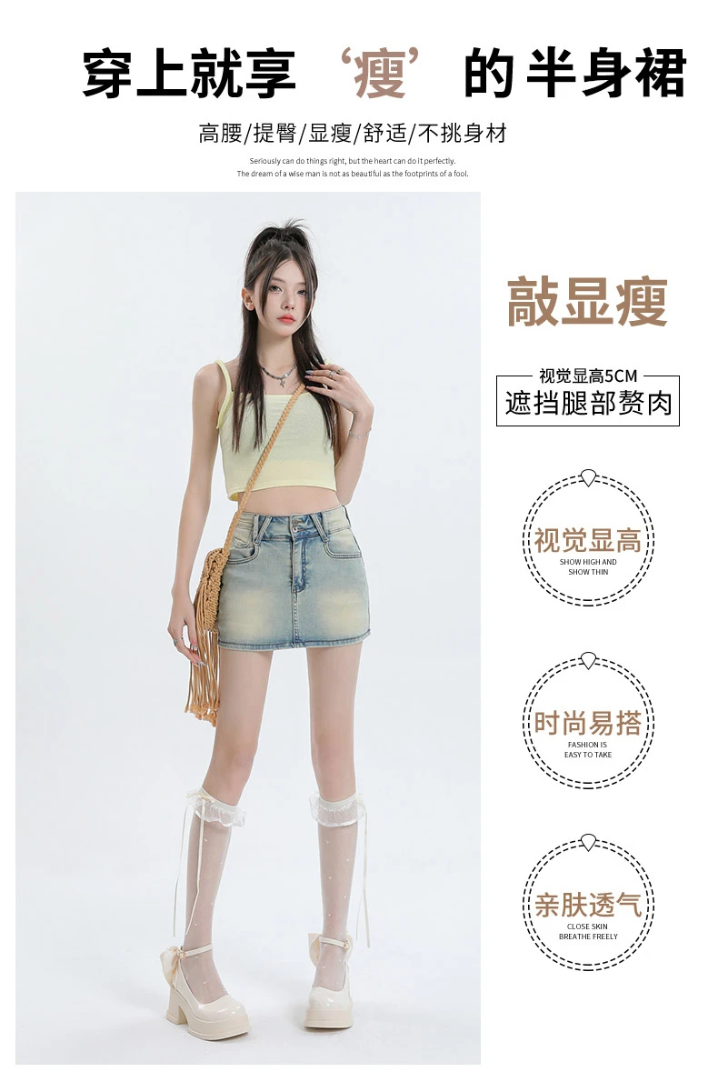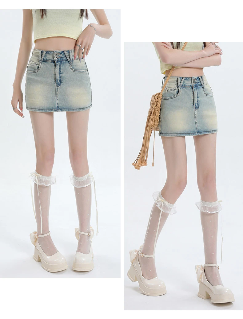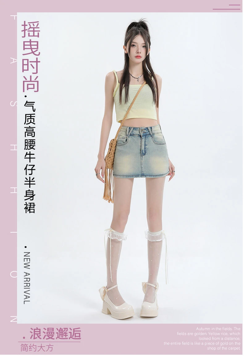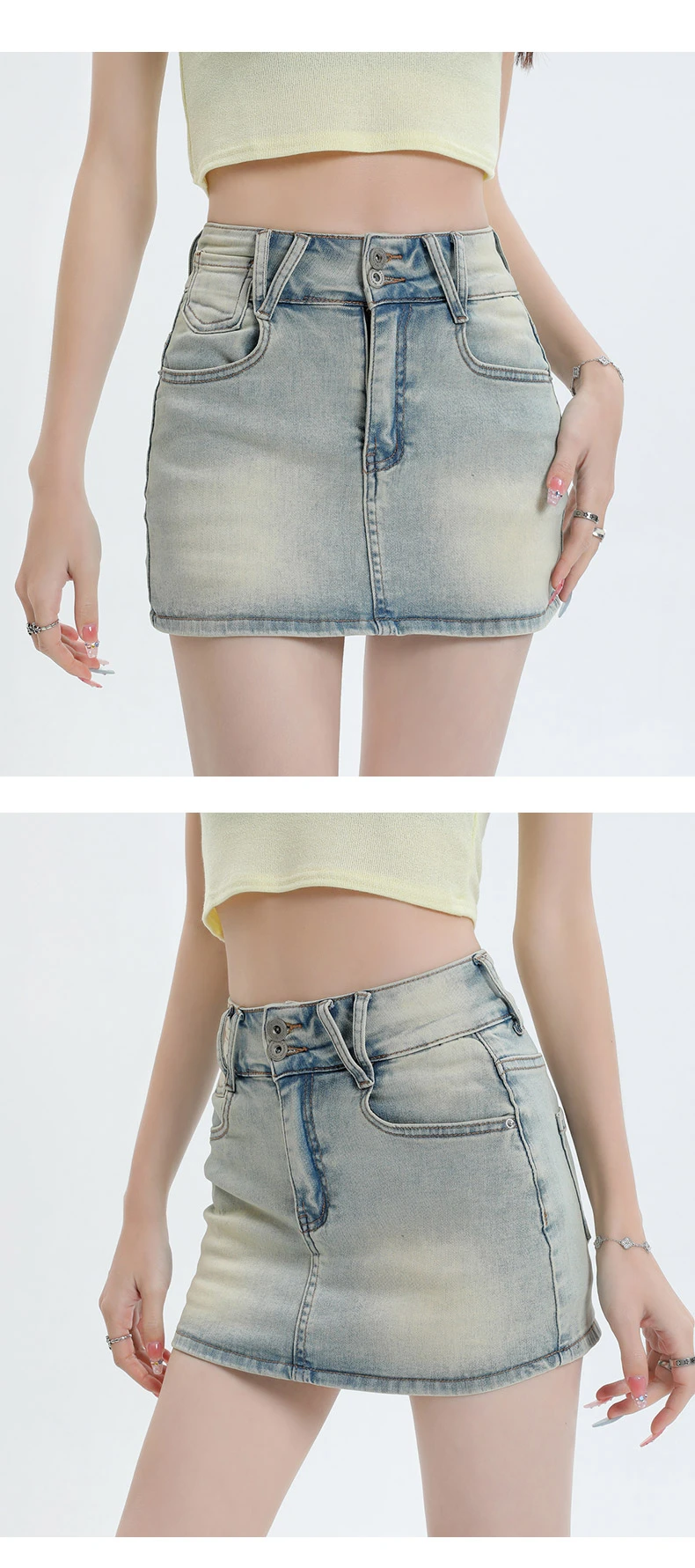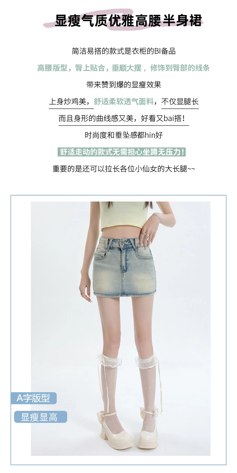 Women Blue A-line Denim Skirt Vintage 90s Aesthetic Y2k Mini Jean Skirt Harajuku Korean Cowboy Skirt 2000s Clothes Summer 2025
