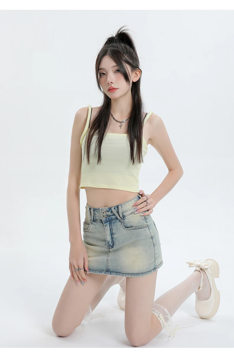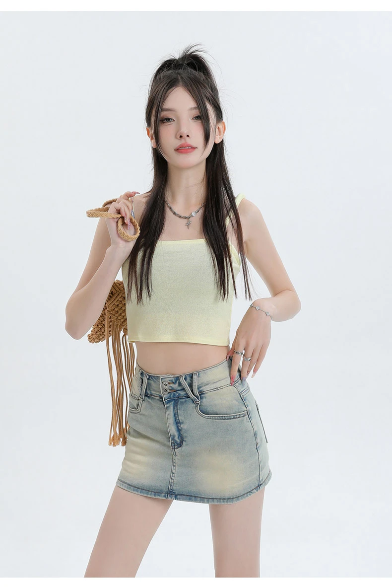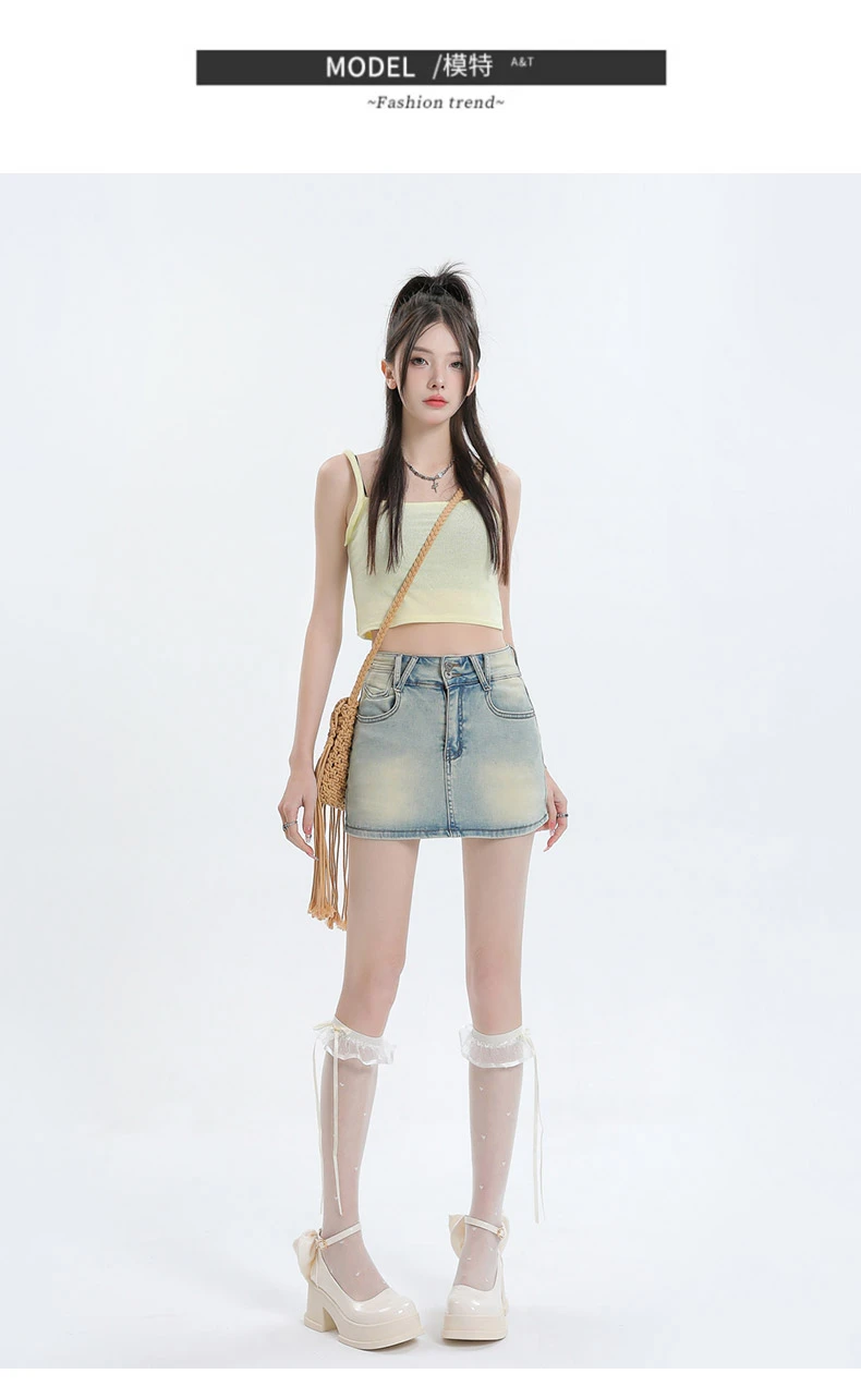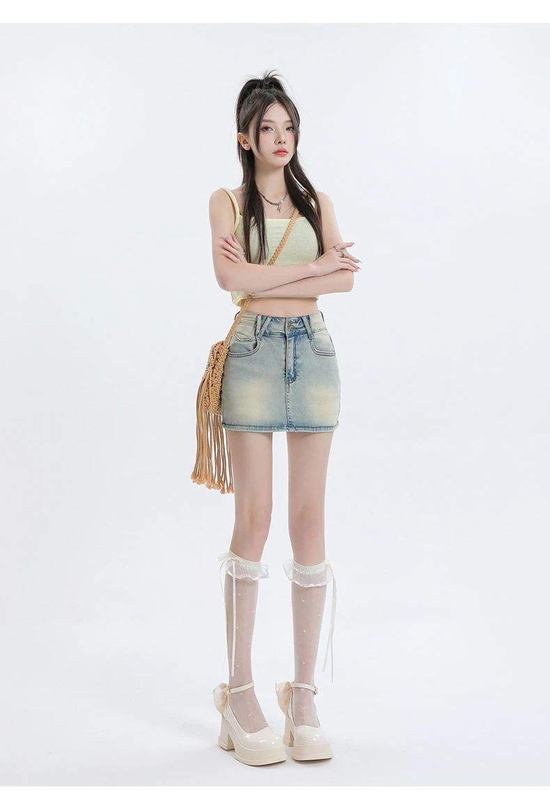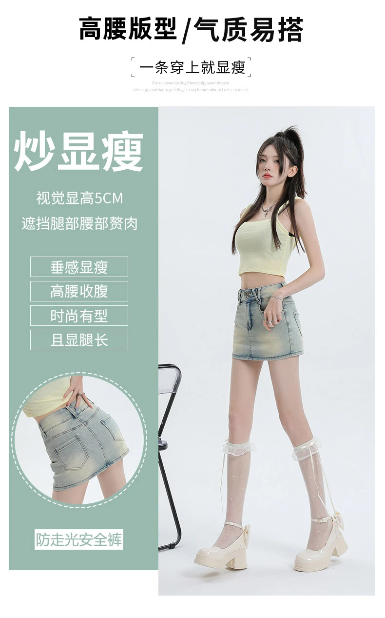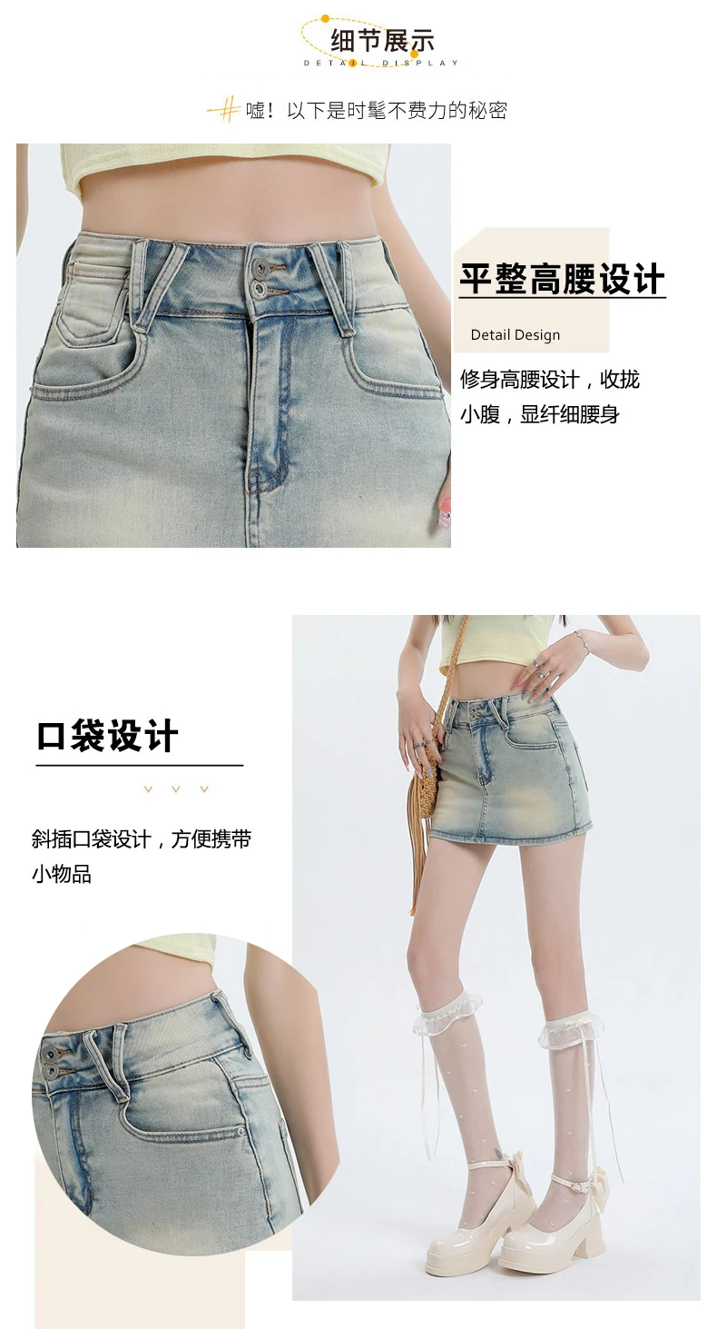 Women Blue A-line Denim Skirt Vintage 90s Aesthetic Y2k Mini Jean Skirt Harajuku Korean Cowboy Skirt 2000s Clothes Summer 2025