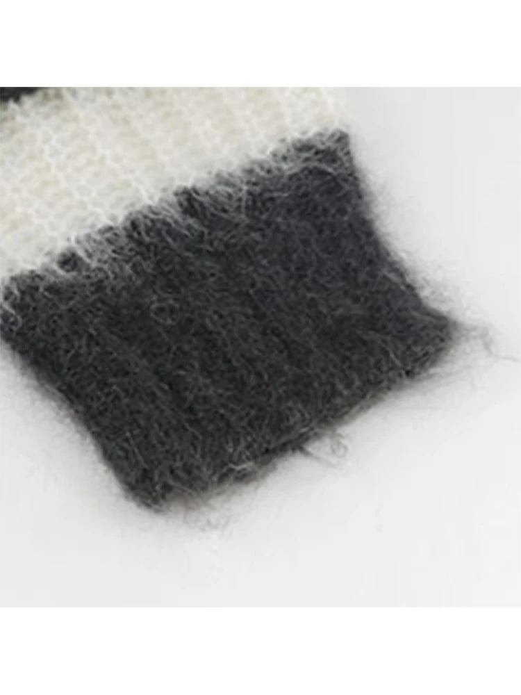 Women Dark Grey Striped Pullover Knit Sweater Harajuku Aesthetic Y2k Long Sleeves Sweaters Elegant Vintage 2000s Fashion Clothes