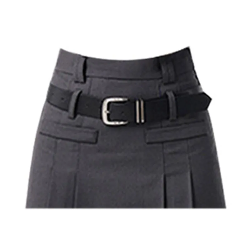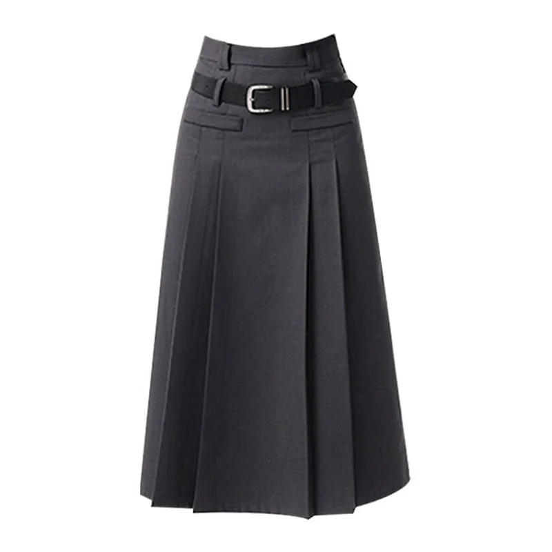 Women Grey Skirts Vintage High Waist Pleated Long Skirt Female 2022 Autumn Japanese Fashion A-Line Skirt College Style Harajuku