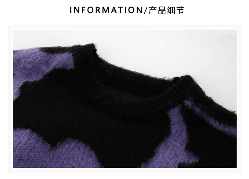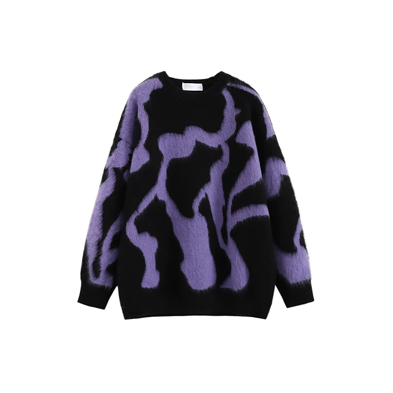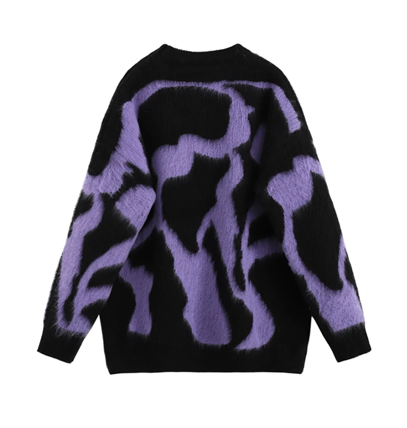 Women Purple Pullover Knitted Sweater Harajuku Aesthetic Y2k Large Size Long Sleeves Sweaters Fashion Vintage 2000s Clothes 2024