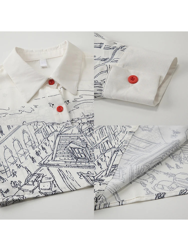Women Shirt and Blouse Y2k Vintage Korean Style Harajuku Casual Elegant Chic Fashion Loose Long Sleeve Print Polo Shirt Top 2023
