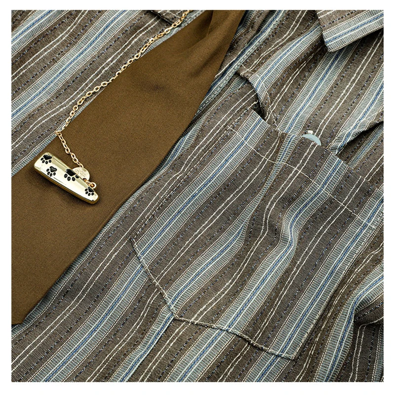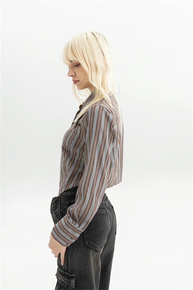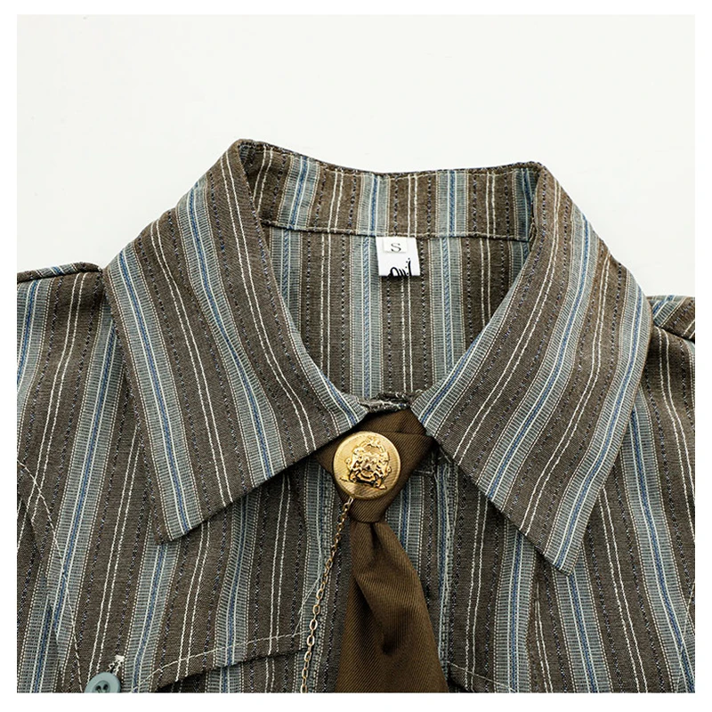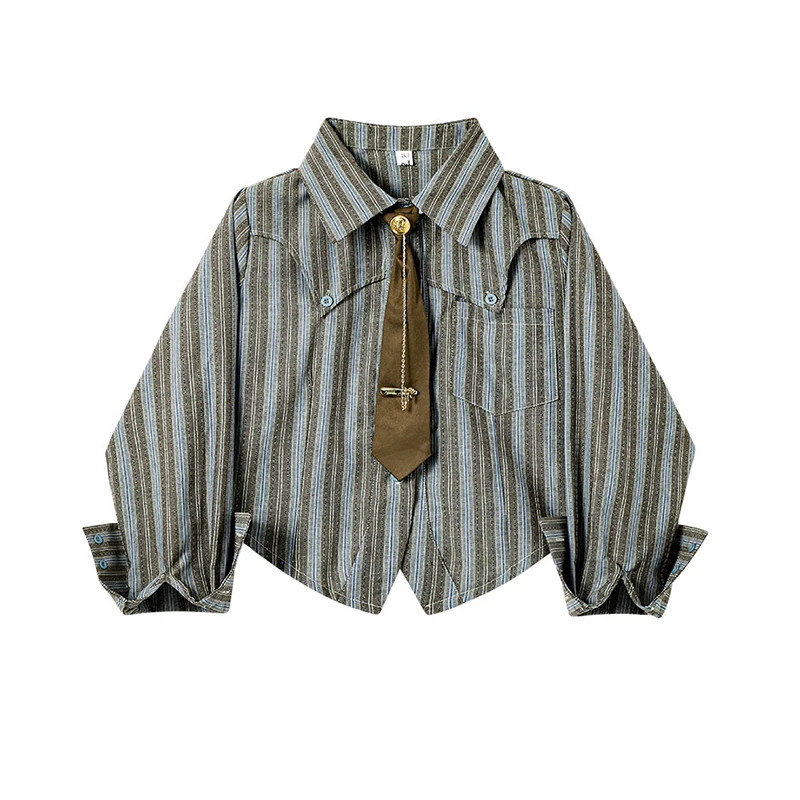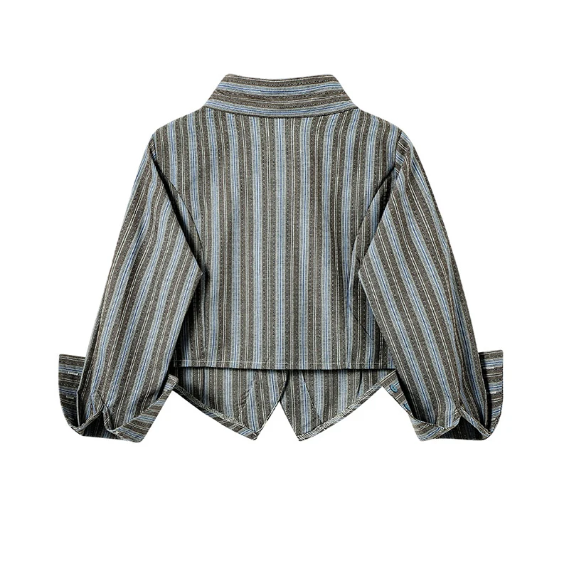 Women Striped Shirts Blouses Vintage Harajuku 90s Aesthetic Y2k 2000s Elegant Polo-Neck Long Sleeve Shirts 2000s Clothes Autumn