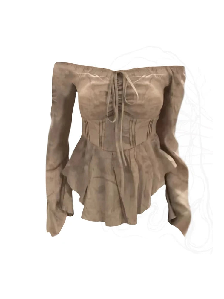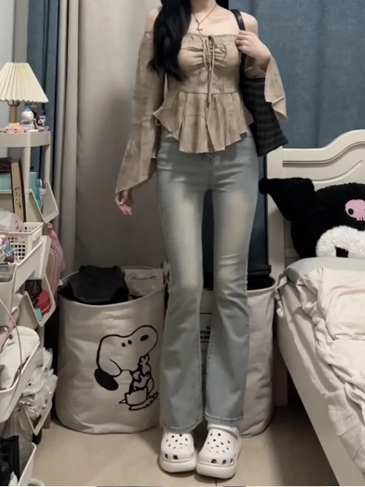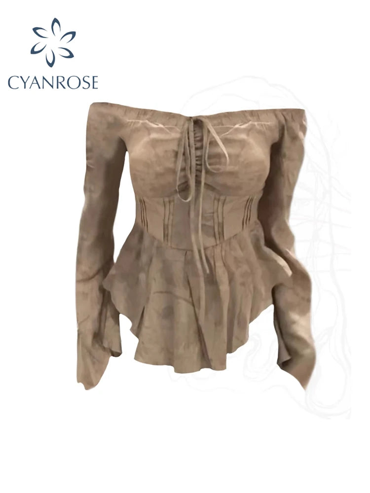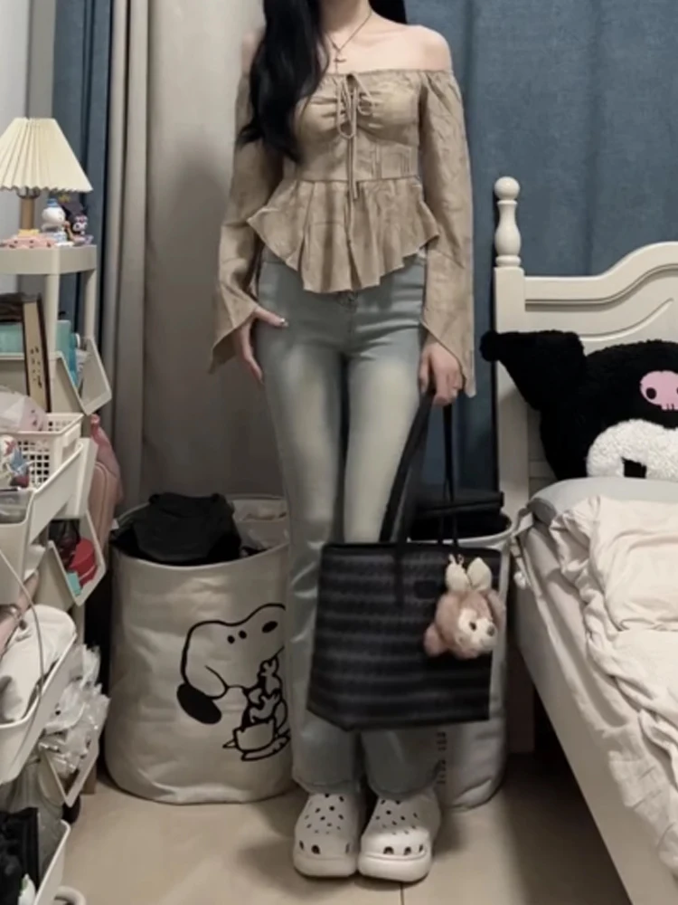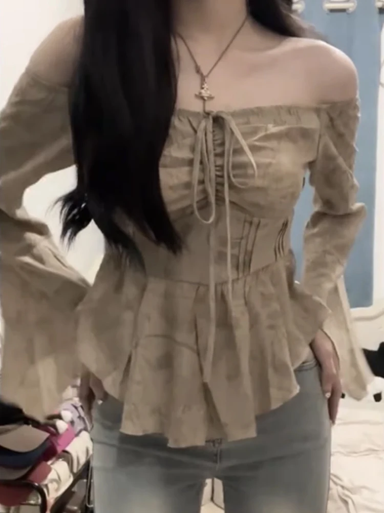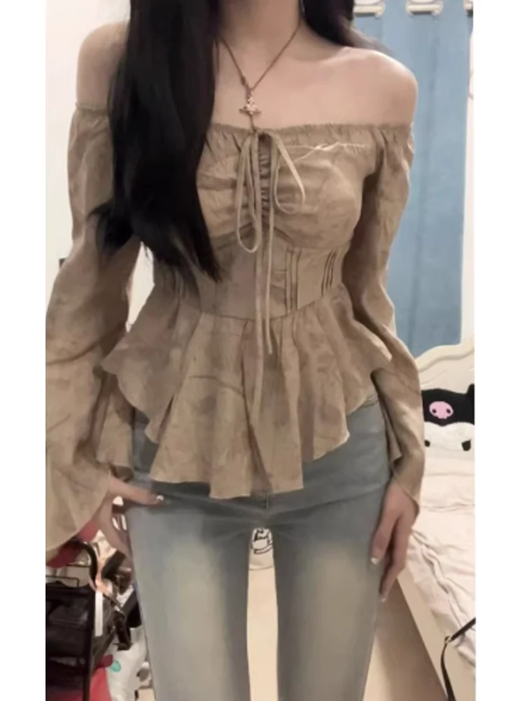 Women T-shirt Harajuku Korean Y2k Tee Top 90s Aesthetic Streetwear Vintage Long Sleeve Slash Neck T-shirt 2000s Fashion Clothes