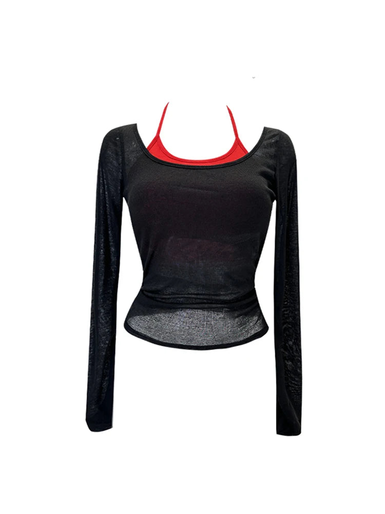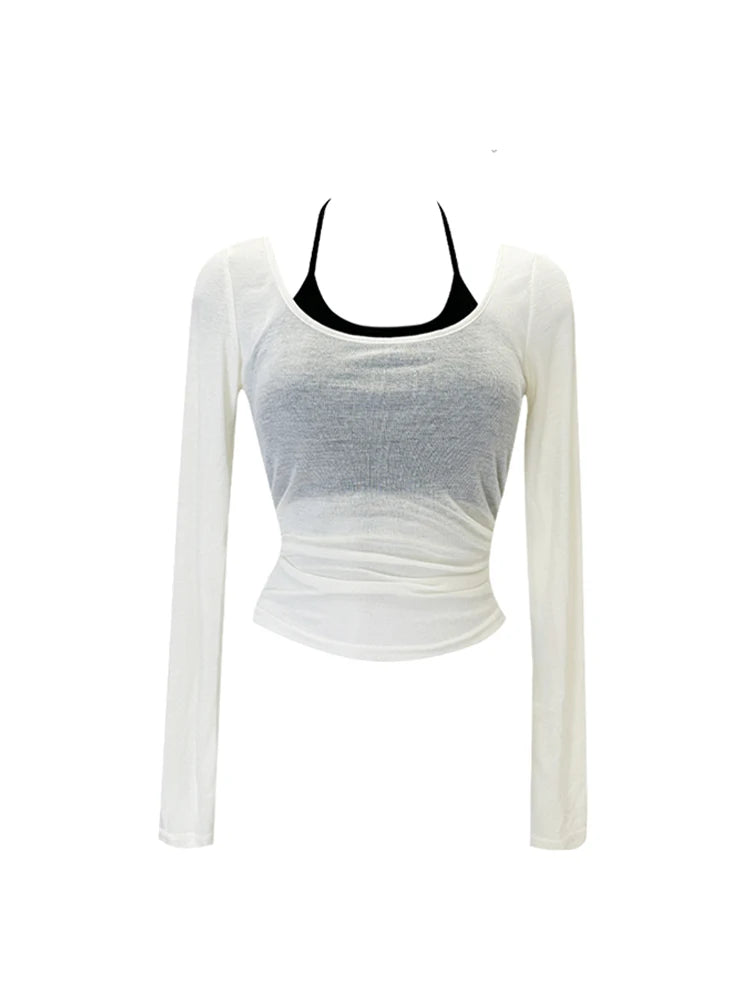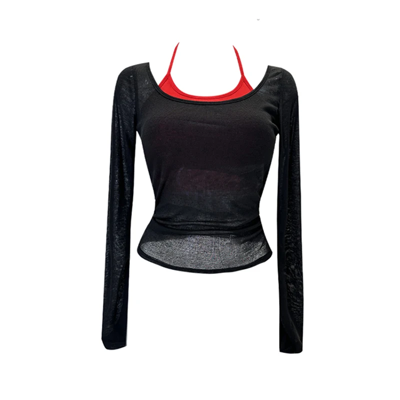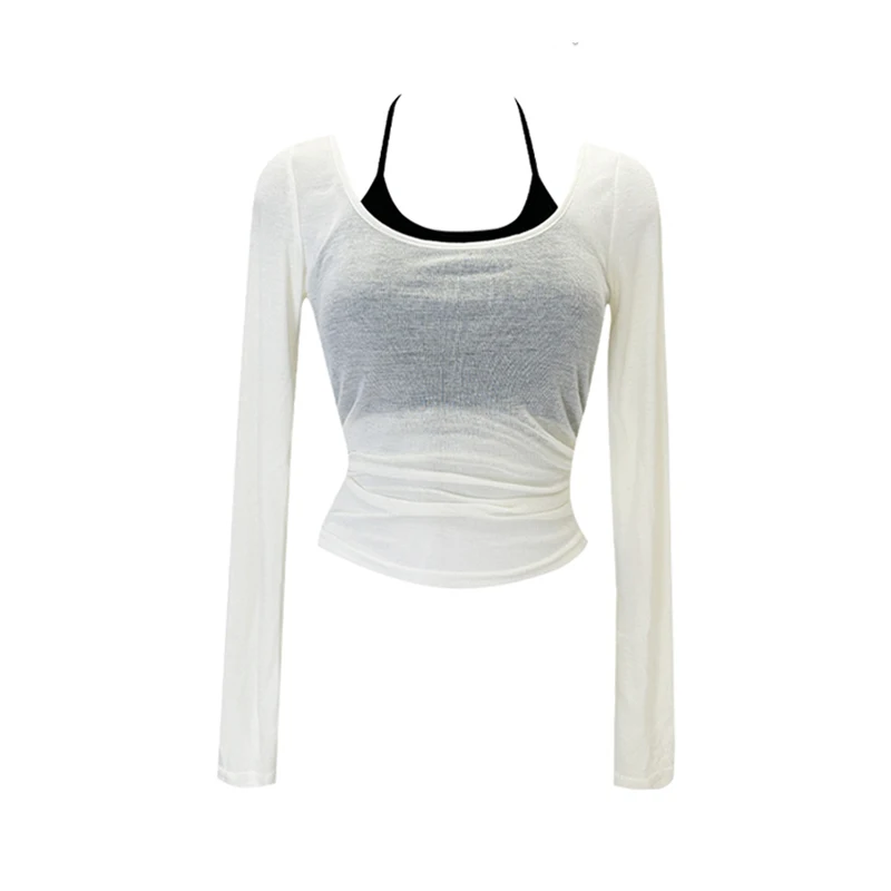 Women's Apricot T-shirt Harajuku Korean Y2k Tee Top 2000s 90s Aesthetic Fashion Vintage Long Sleeves T-shirt Autumn 2023 Clothes