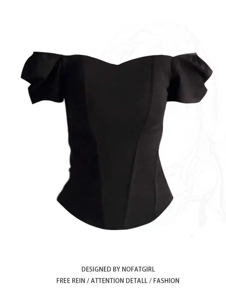 Women's Black Shirts and Blouses Y2k Aesthetic Streetwear Vintage Korean 2000s Elegant Short Sleeve Square Collar Shirt Clothes