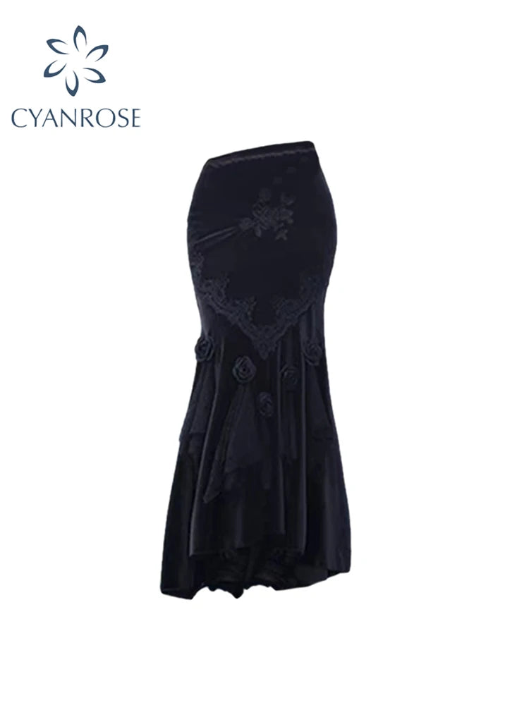 Women's Clothing Black Gothic A-line Skirt Vintage Aesthetic Streetwear Y2k Long Skirt Harajuku Korean Skirt 2000s Emo Clothes
