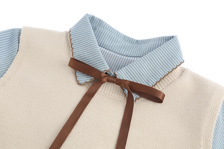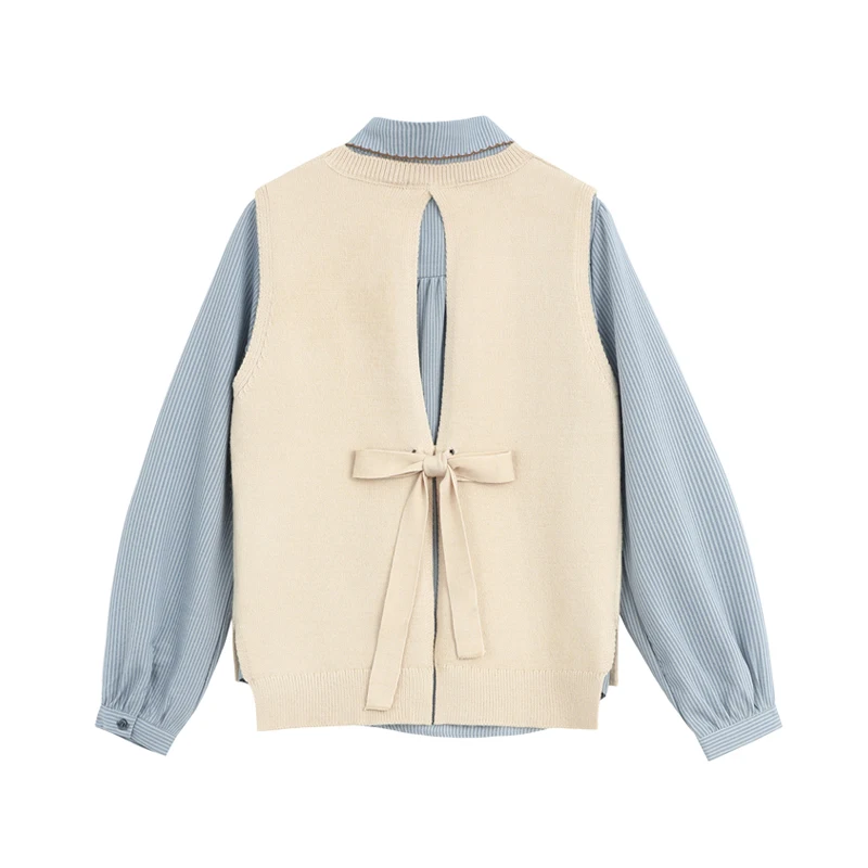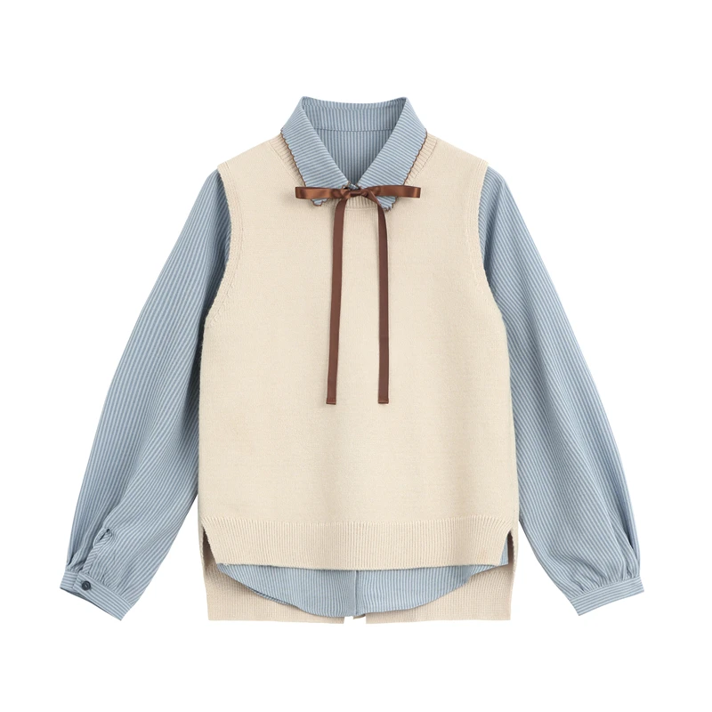 Preppy Bow Blouse & Vest Set Autumn Two-Piece