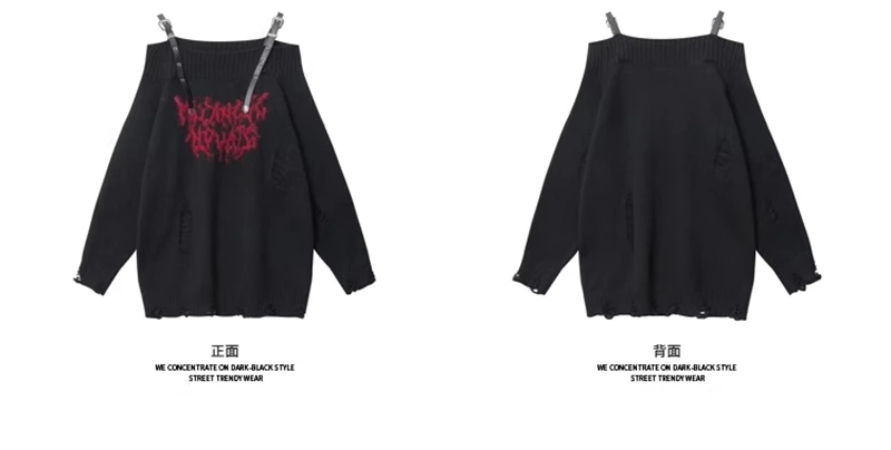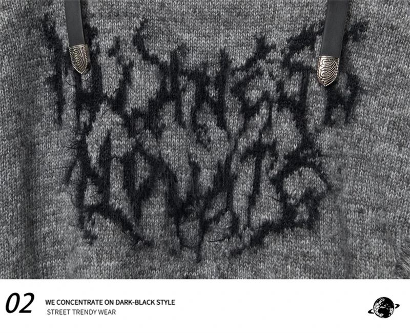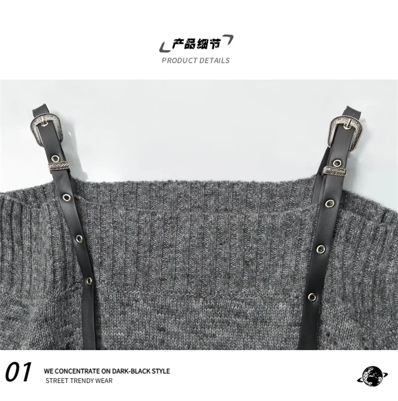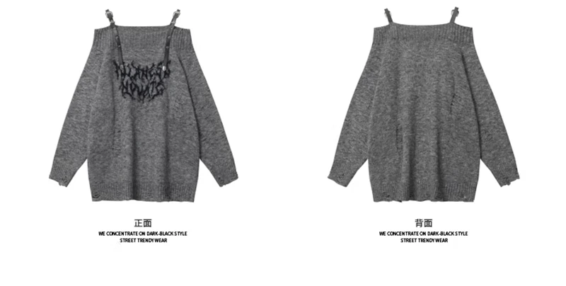 Women's Grey Pullover Knitted Sweater Harajuku 90s Aesthetic Y2k Long Sleeves Sweaters Jumper Fashion Vintage 2000s Clothes 2024
