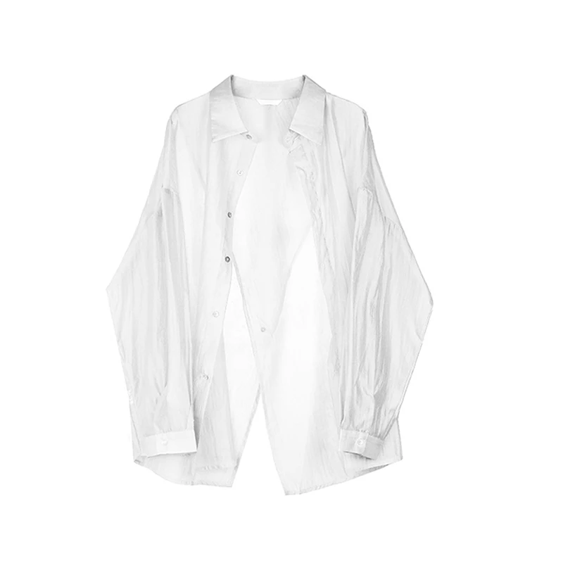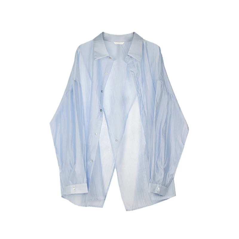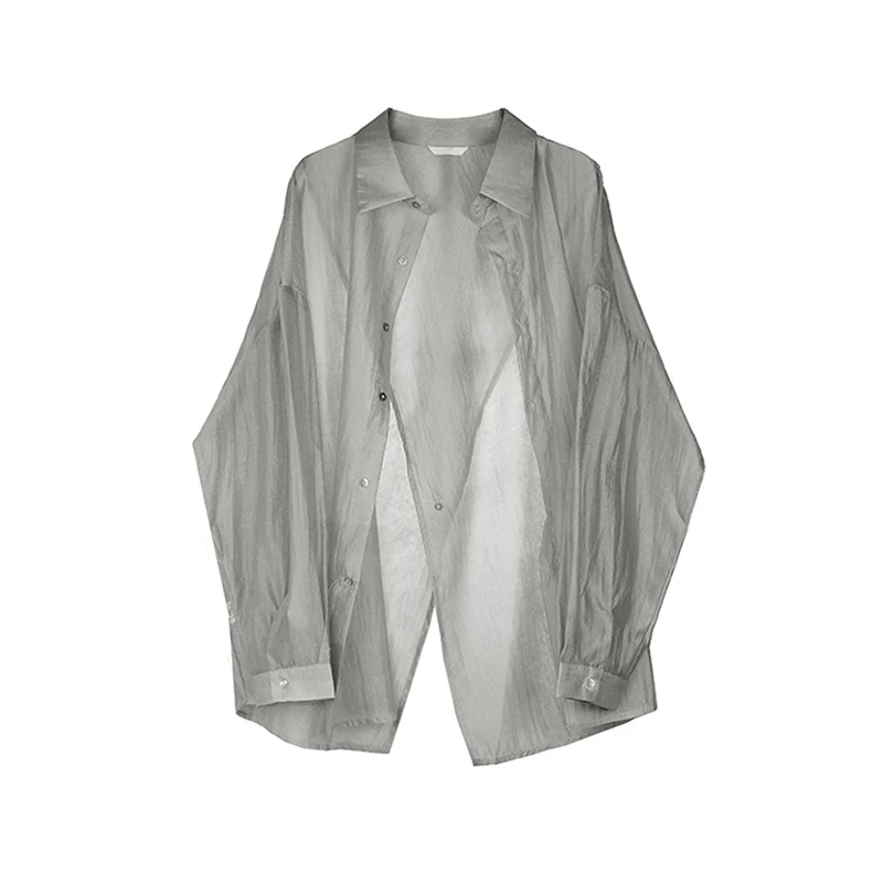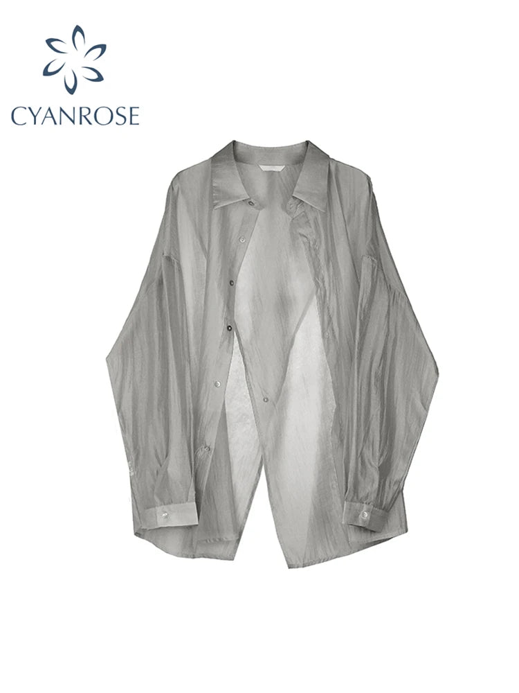 Women's Grey Shirts and Blouses Y2k Vintage Korean Streetwear Harajuku 2000s Elegant Long Sleeve Polo-Neck Shirt Clothes Summer