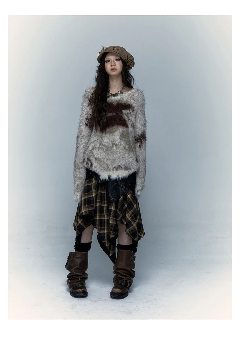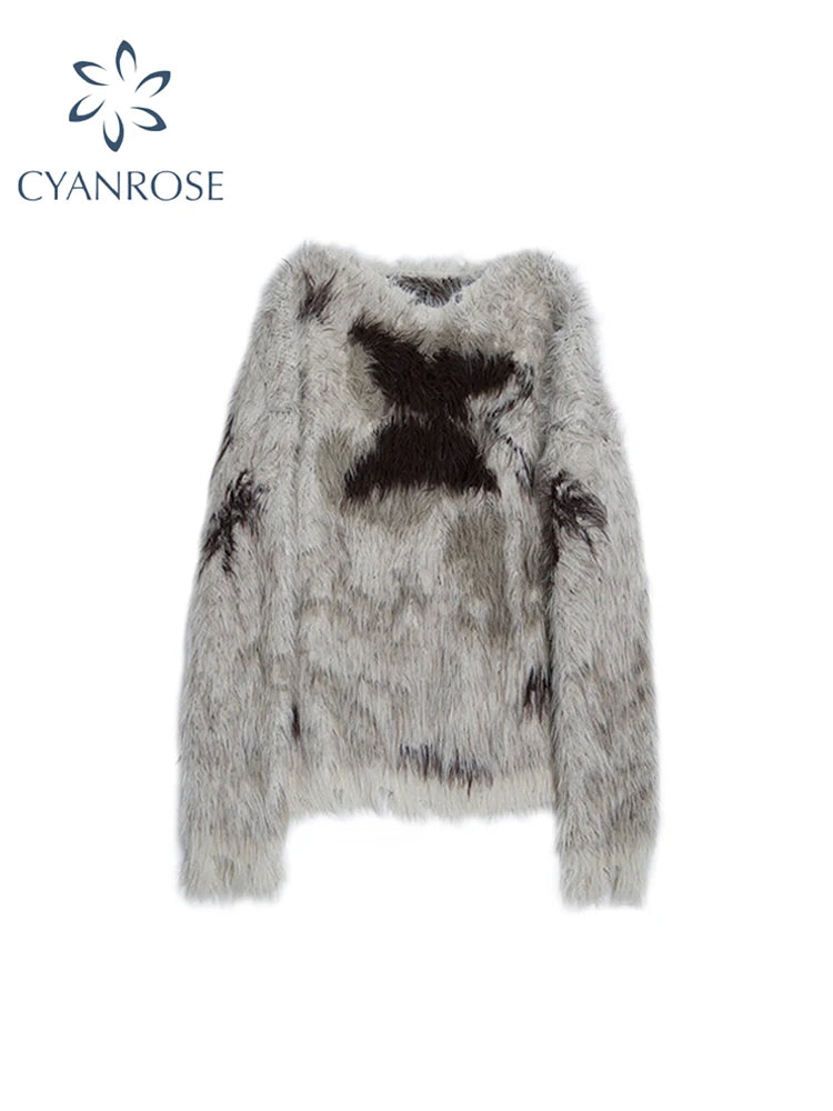 Women's Khaki Mohair Pullover Knit Sweater Harajuku Y2k Long Sleeves O-Neck Sweater Vintage 90s 2000s Aesthetic Fashion Clothes