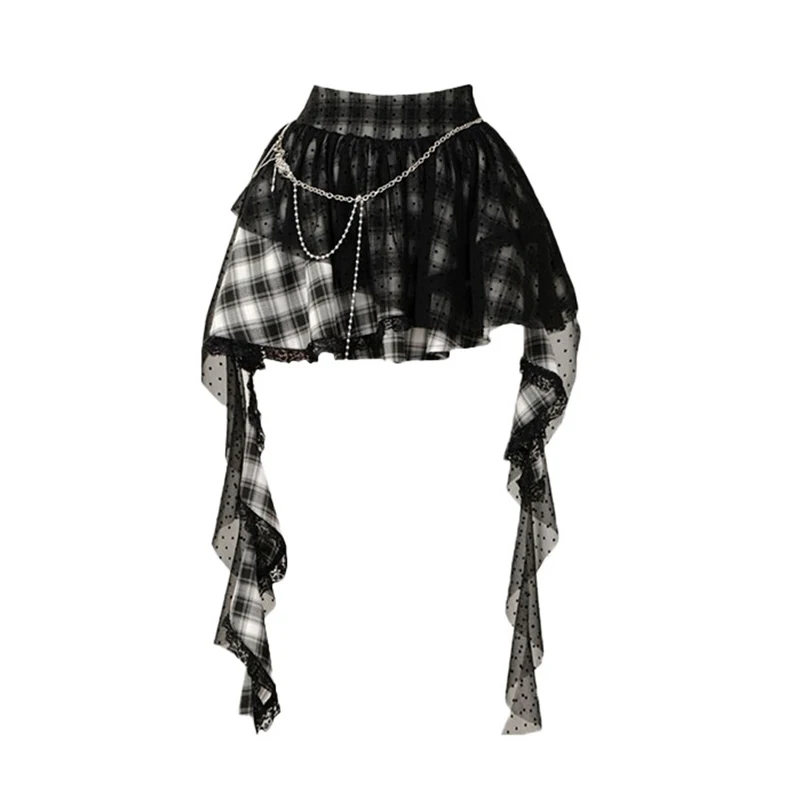Women's Patchwork Gothic A-line Plaid Skirt Aesthetic Vintage Y2k Punk Skirts Harajuku Korean Mini Emo Skirt 2000s Clothes 2024