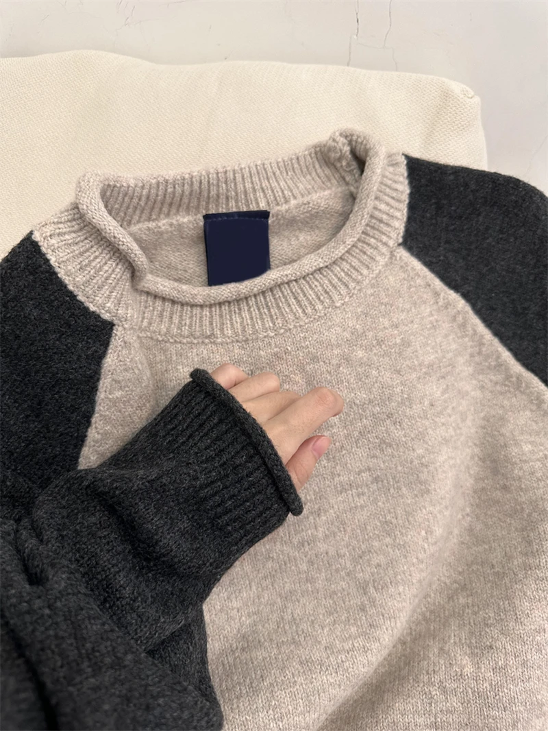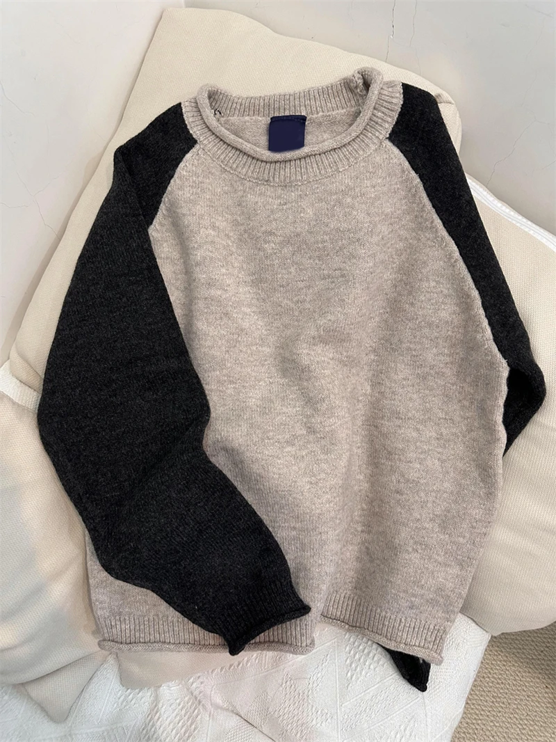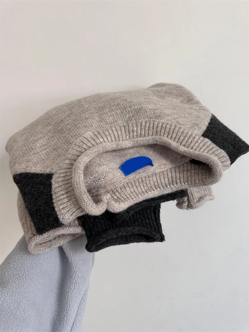 Women's Patchwork Pullover Sweater Harajuku Long Sleeves Two-tone Sweaters Jumper Vintage Y2k 2000s Clothes Fashion Winter 2024