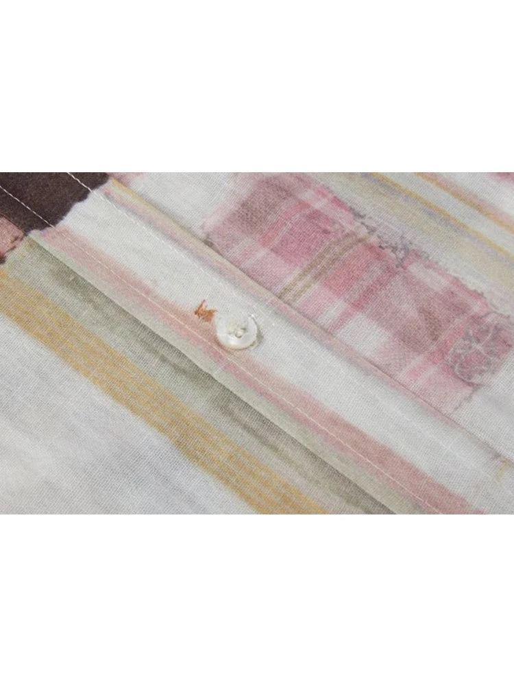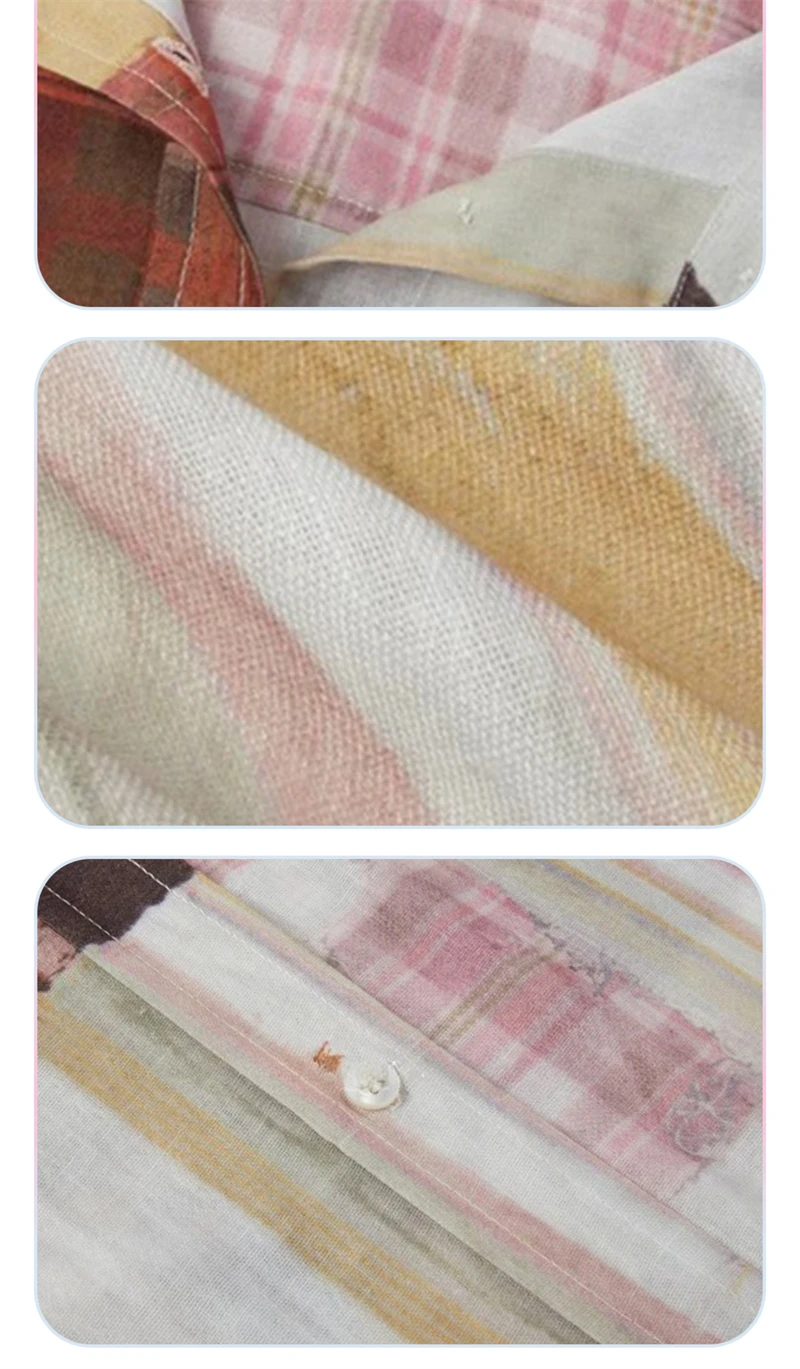 Women's Pink Plaid Patchwork Shirts Blouses Vintage Harajuku 90s Y2k Elegant Long Sleeve Shirt Top 2000s Streetwear Clothes 2024