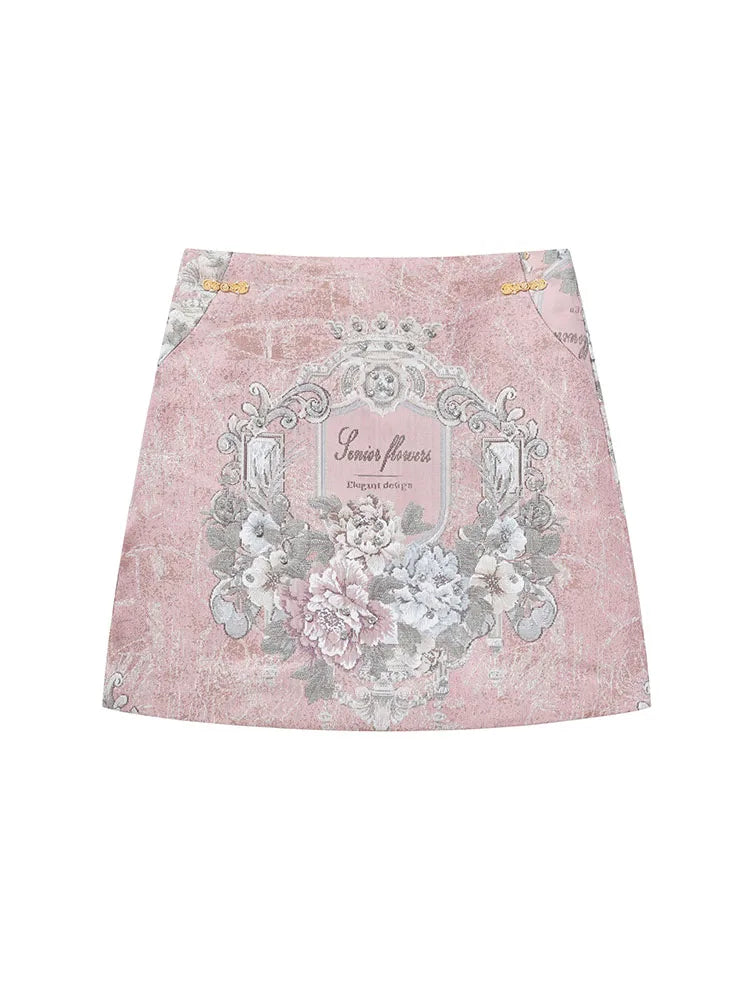 Women's Pink Print Skirt Vintage Y2k A-line Skirt Harajuku Streetwear Ladies Mini Skirts 2000s Aesthetic Fashion Clothes Summer