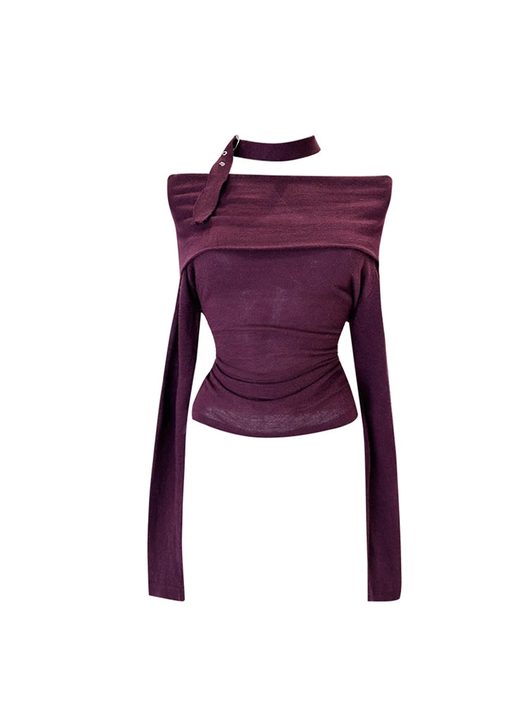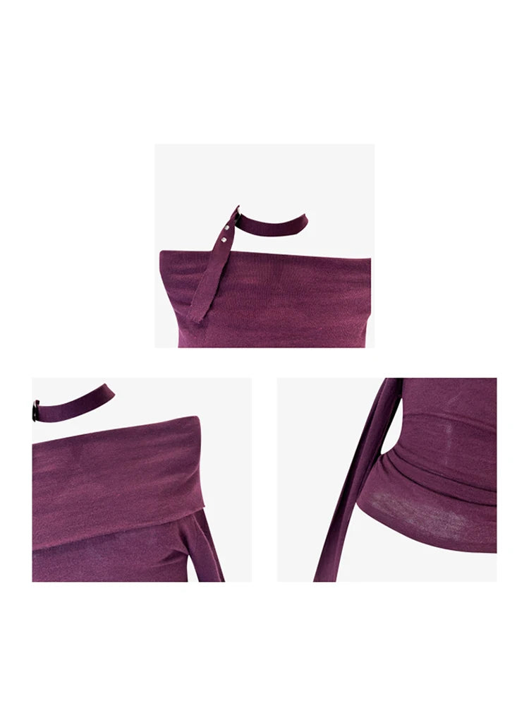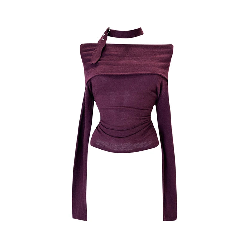 Women's Slash Neck T-shirt Korean Y2k 90s Tee Top Harajuku 2000s Vintage Streetwear Aesthetic Purple Long Sleeve T-shirt Clothes