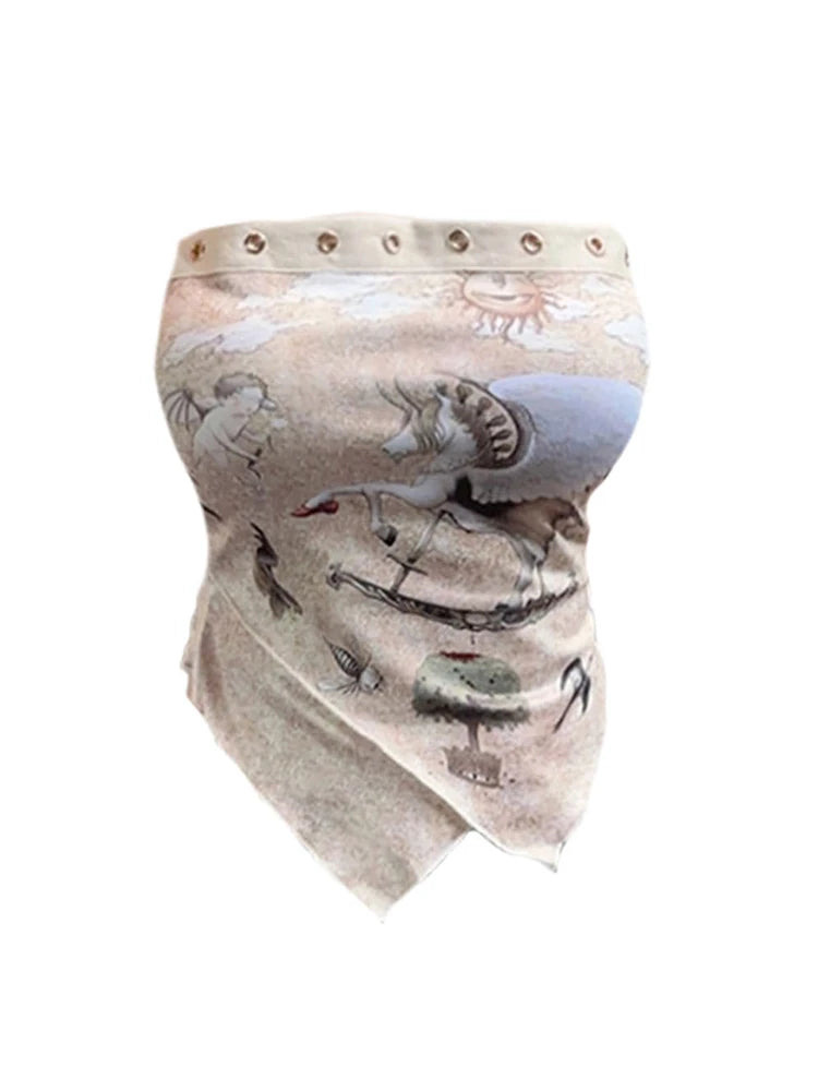 Women's Strapless Crop Top Vintage Y2k Summer Graphic Print Camisole Fashion Streetwear Female Sexy Off Shoulder Tank Top Vest