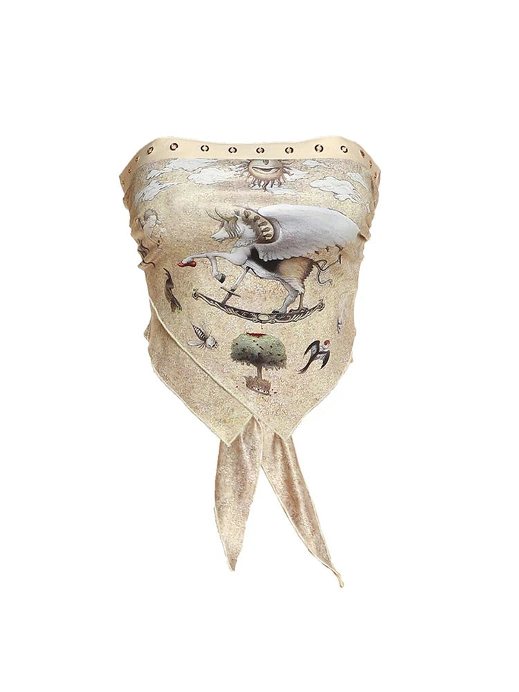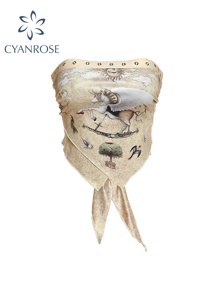 Women's Summer Graphic Print Vest Top Y2k Sexy Sleeveless Camisole Strapless T-shirt Korean With Open Shoulders Tank Top Clothes