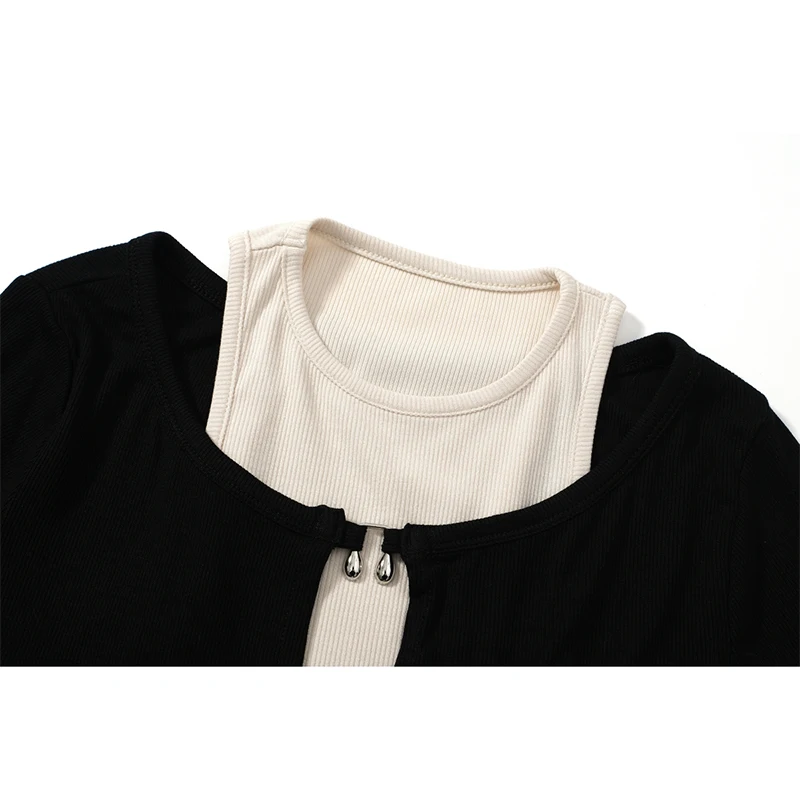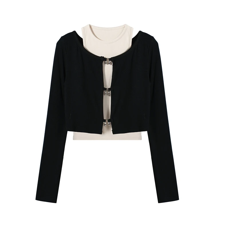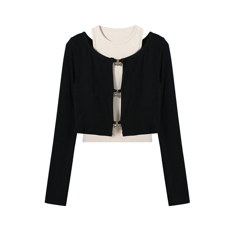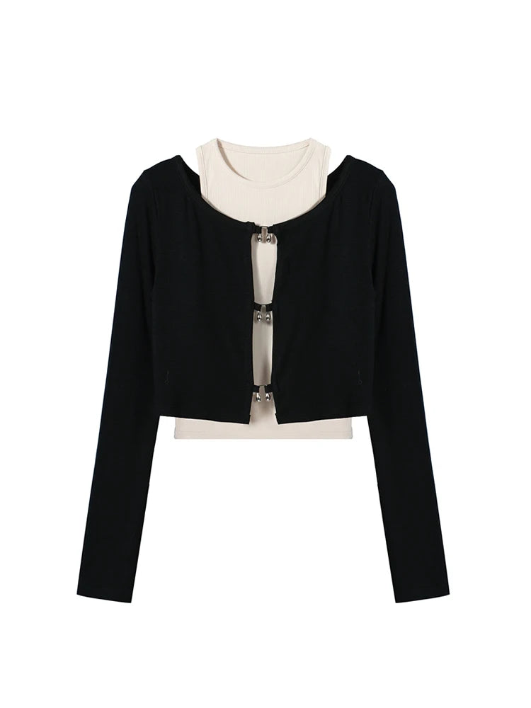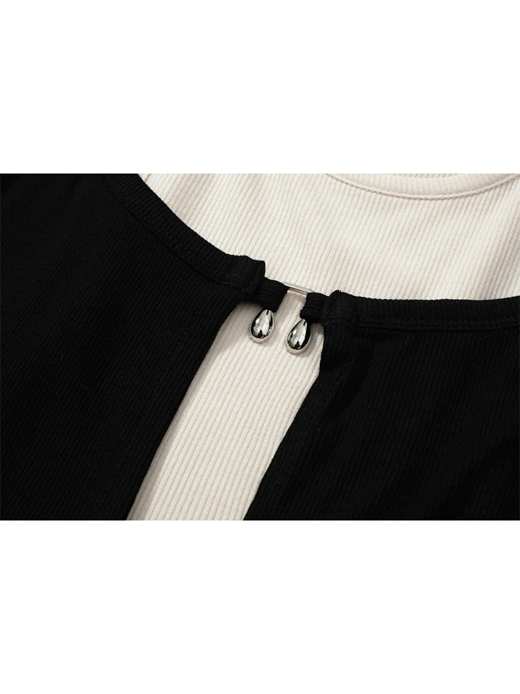Women's T-shirt Harajuku Patchwork Crop Tops Retro Korean Y2k Black Clothes Vintage Streetwear 2023 Summer Long Sleeve Tee Top